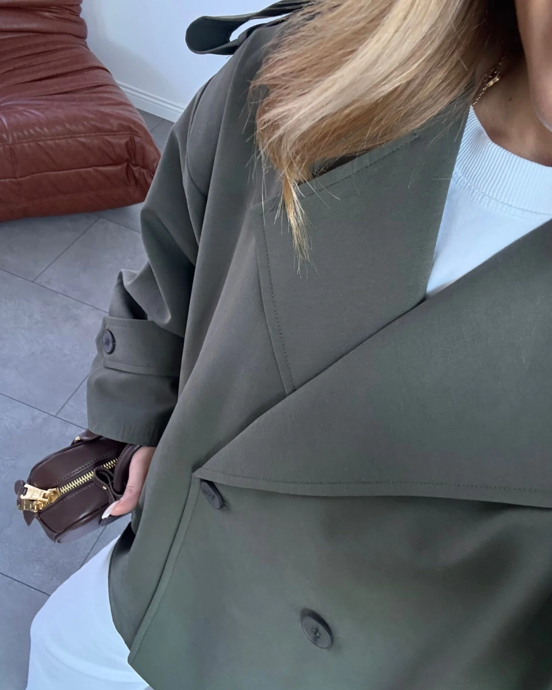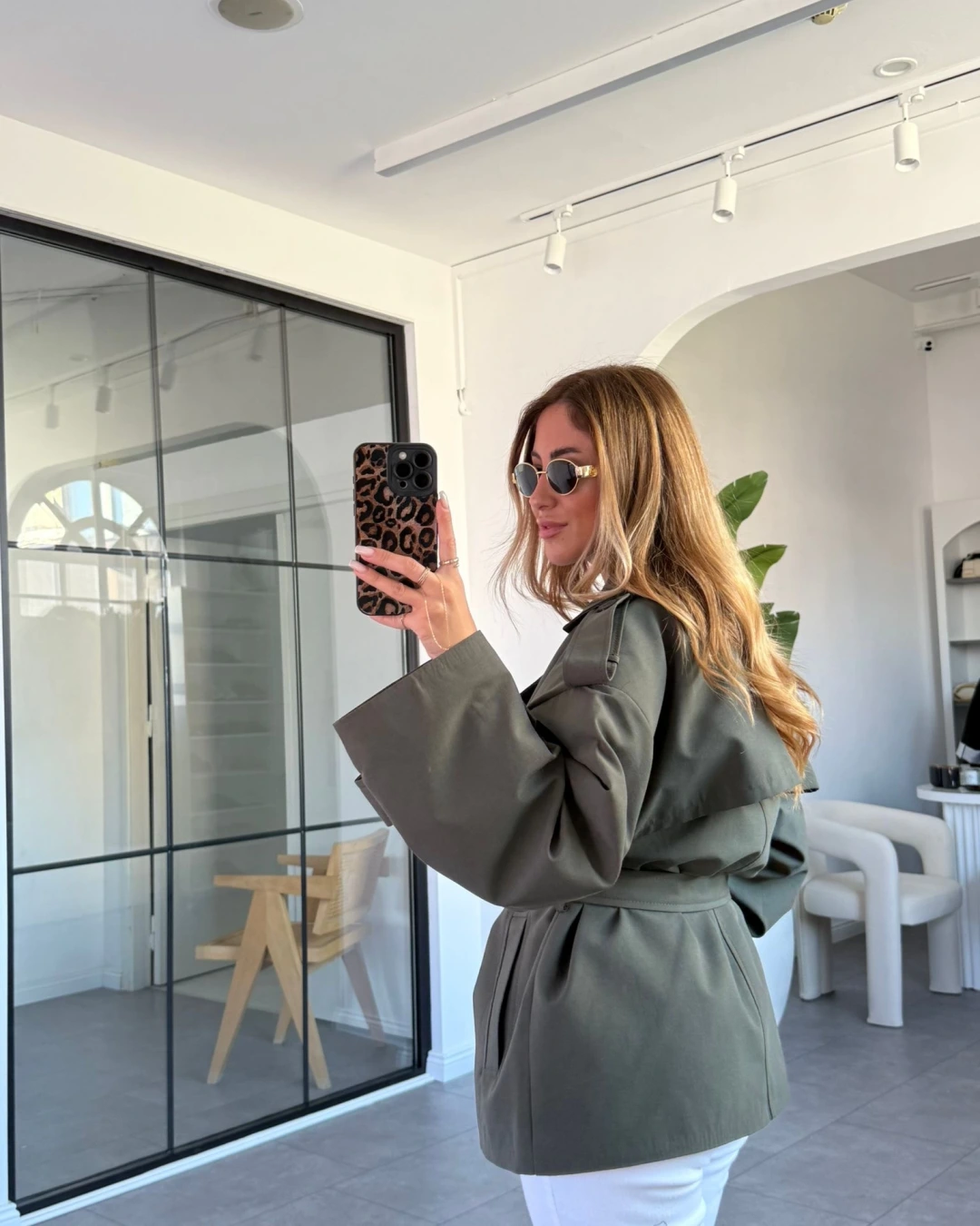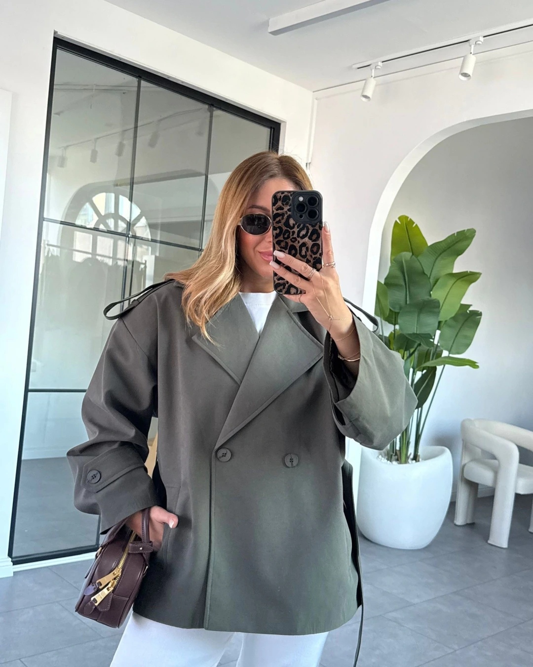HAKİ OMUZ VATKALI KISA TRENÇKOT