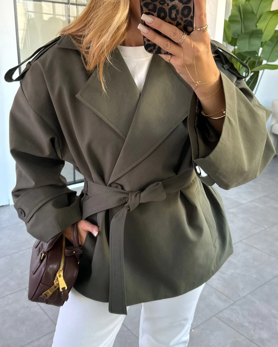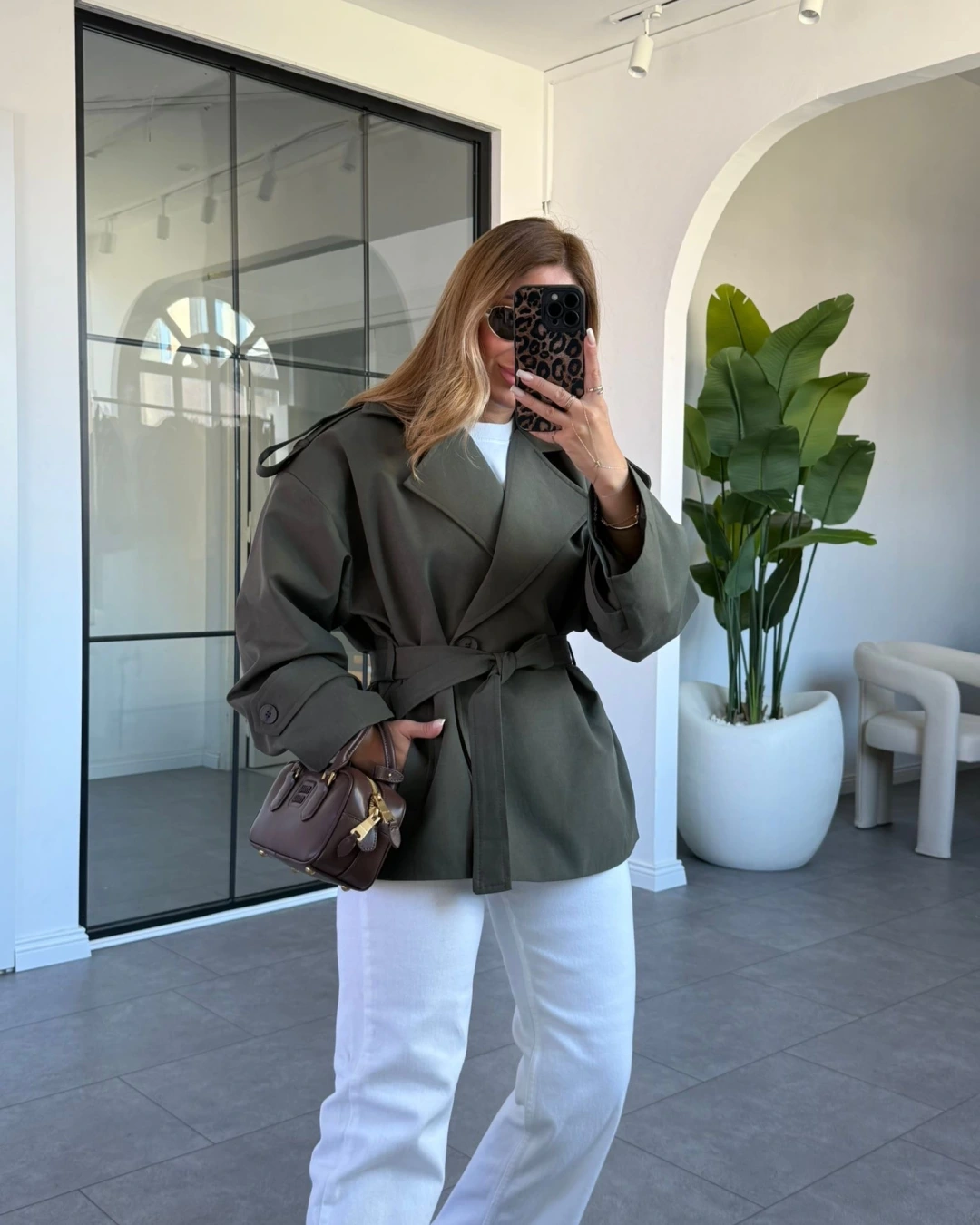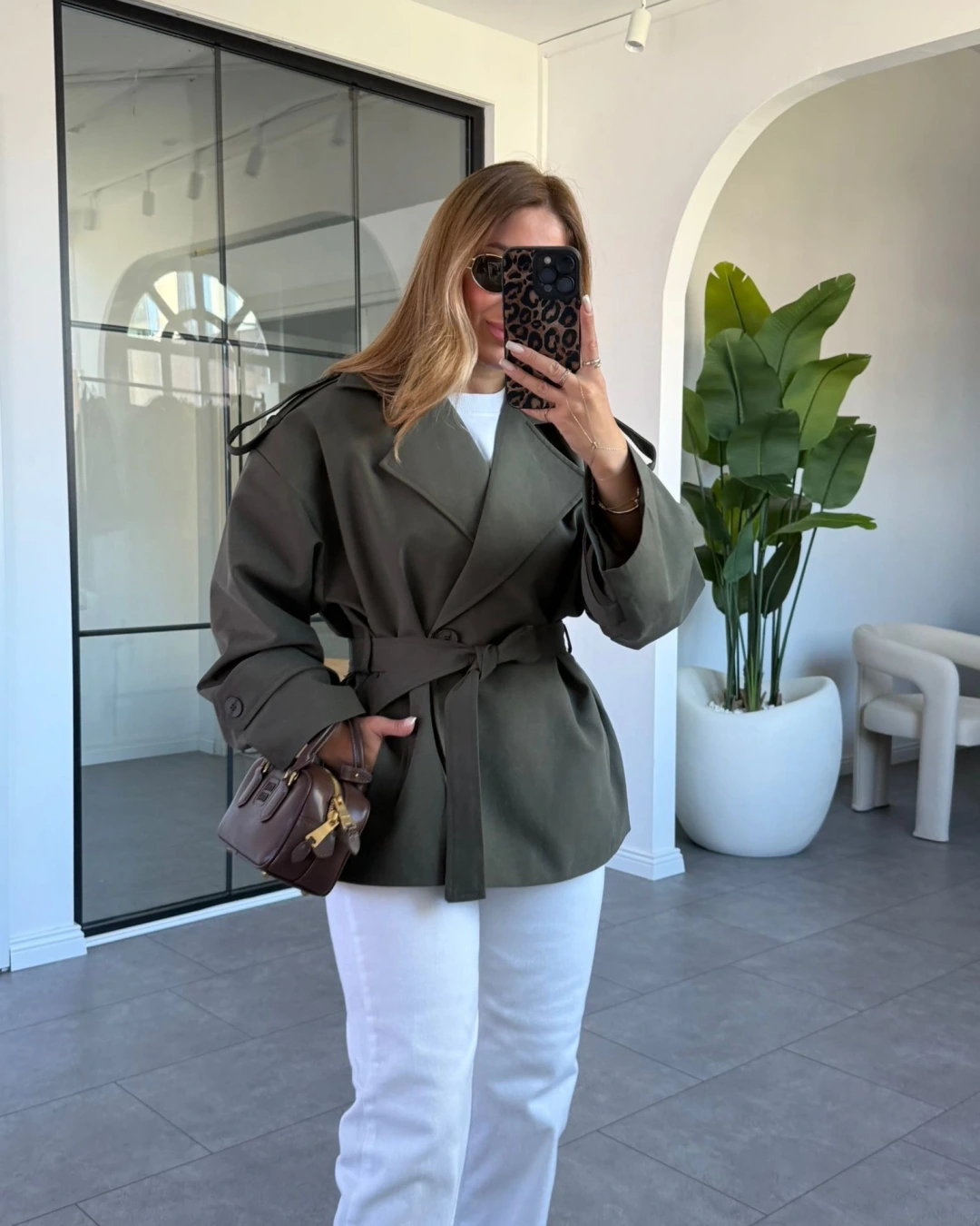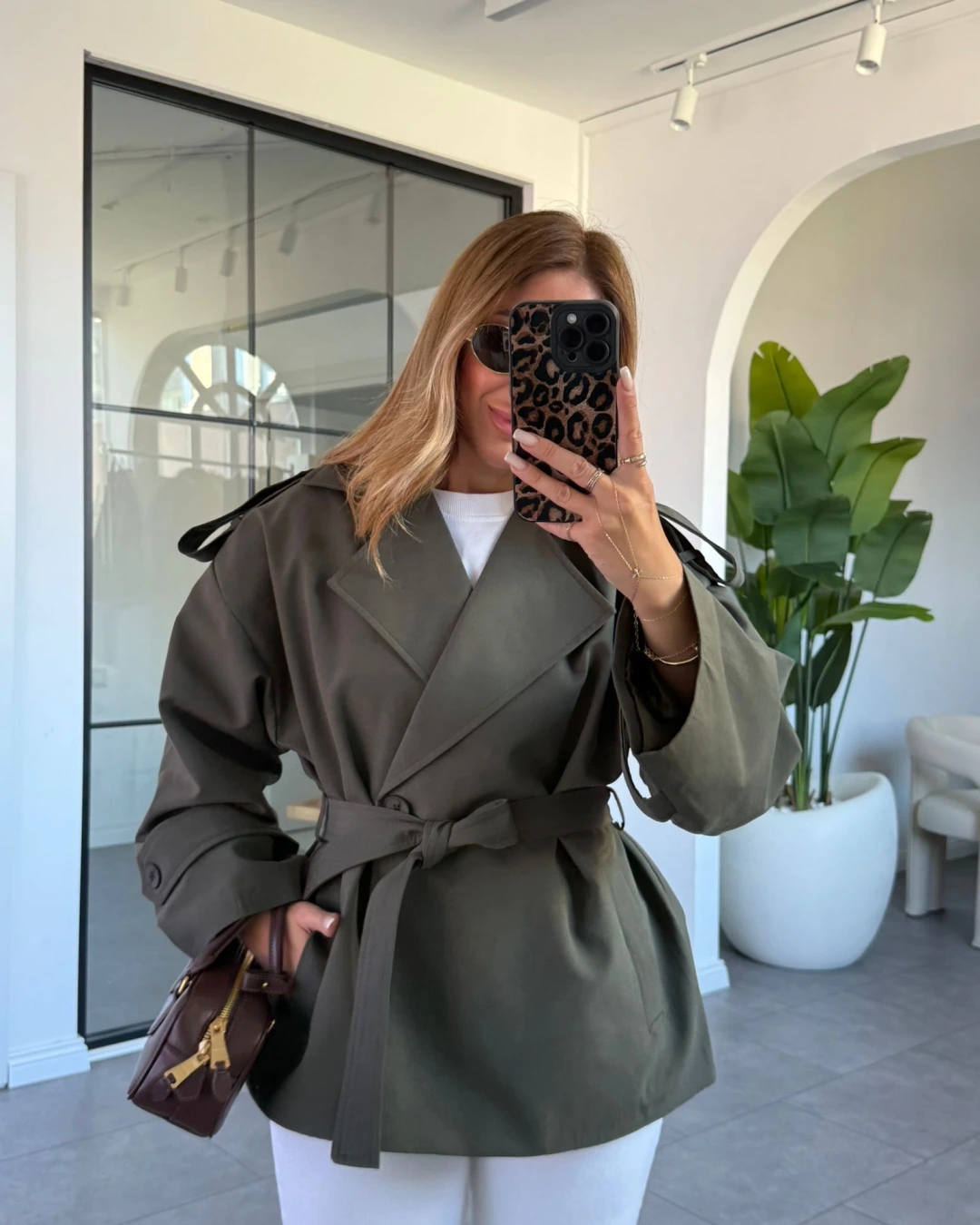 HAKİ OMUZ VATKALI KISA TRENÇKOT