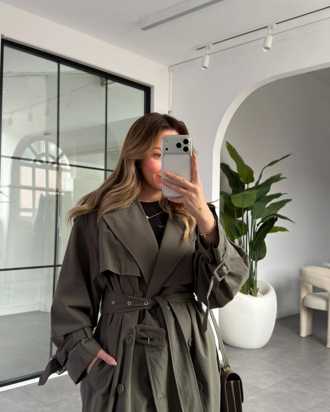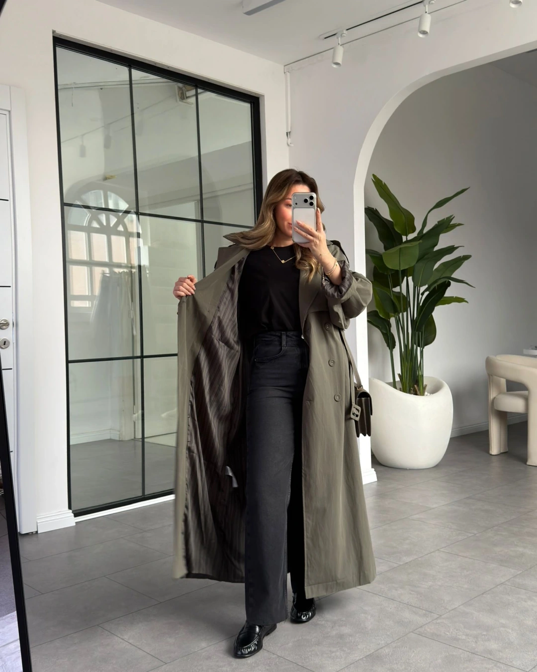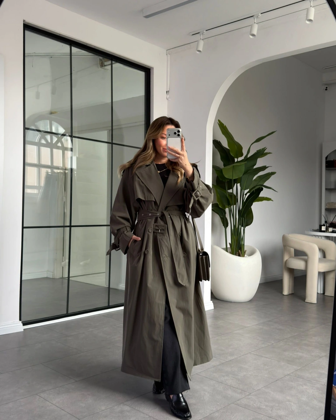 HAKİ OVERSİZE İÇ ASTARI ÇİZGİLİ TRENÇKOT