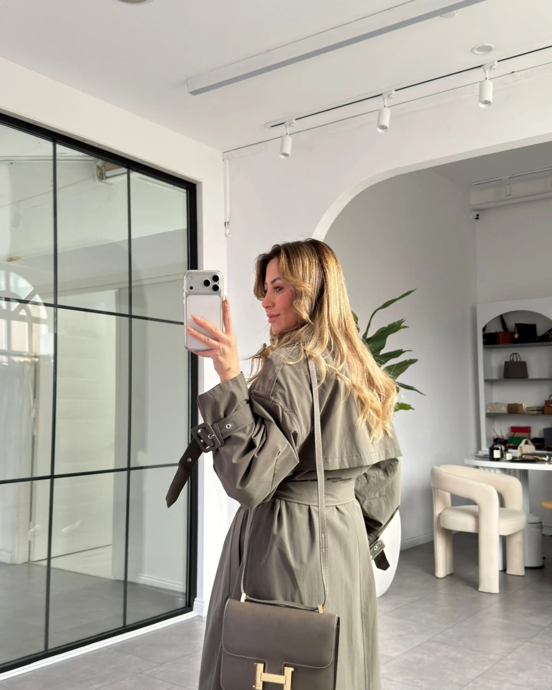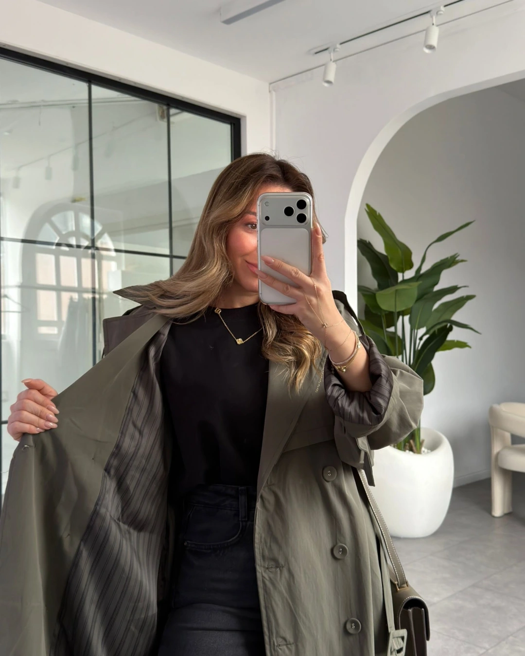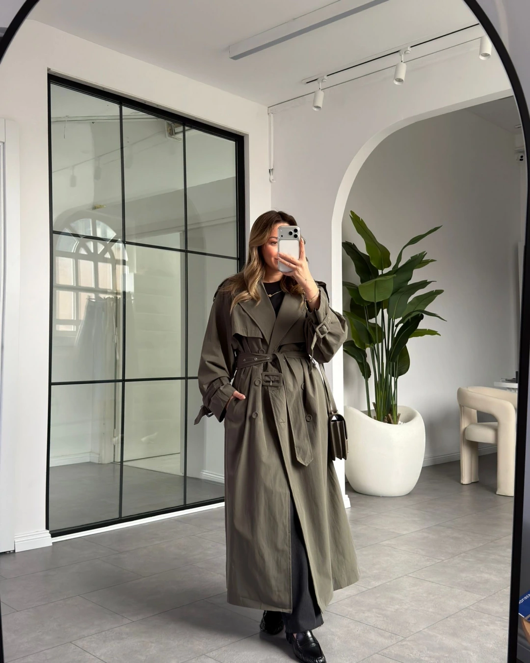 HAKİ OVERSİZE İÇ ASTARI ÇİZGİLİ TRENÇKOT