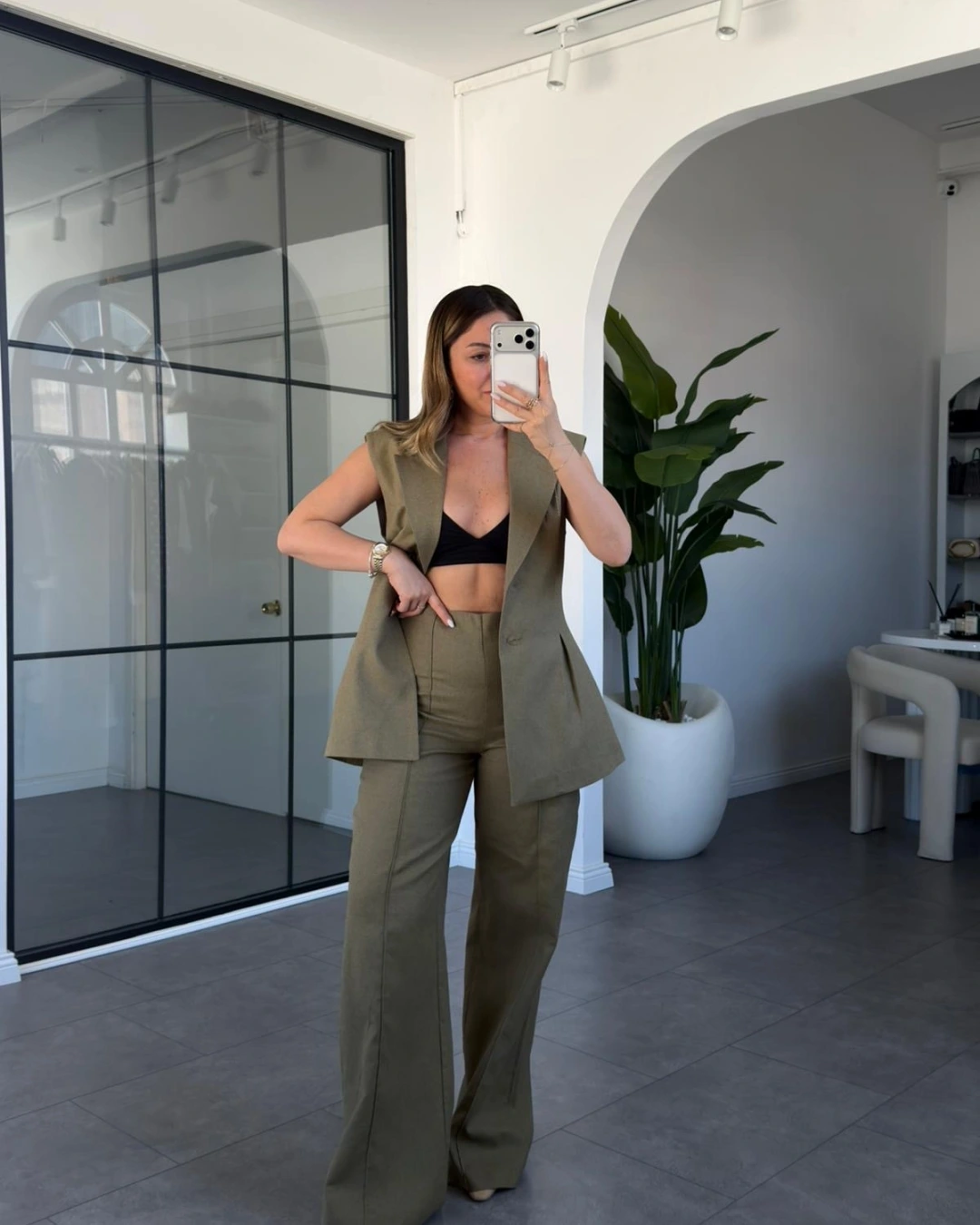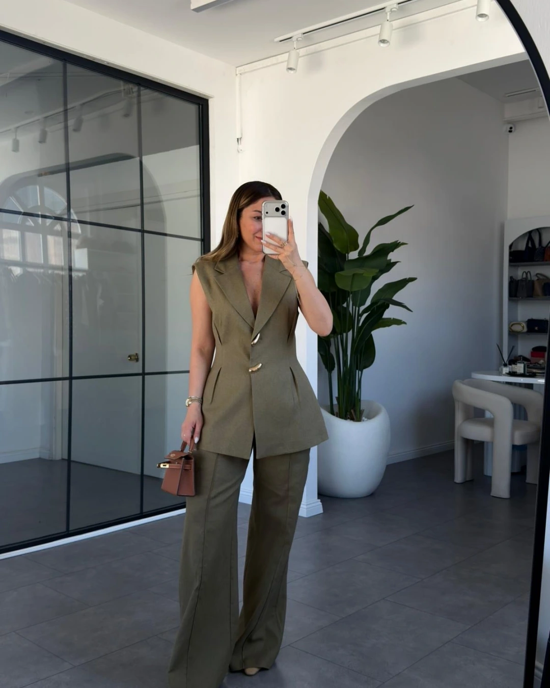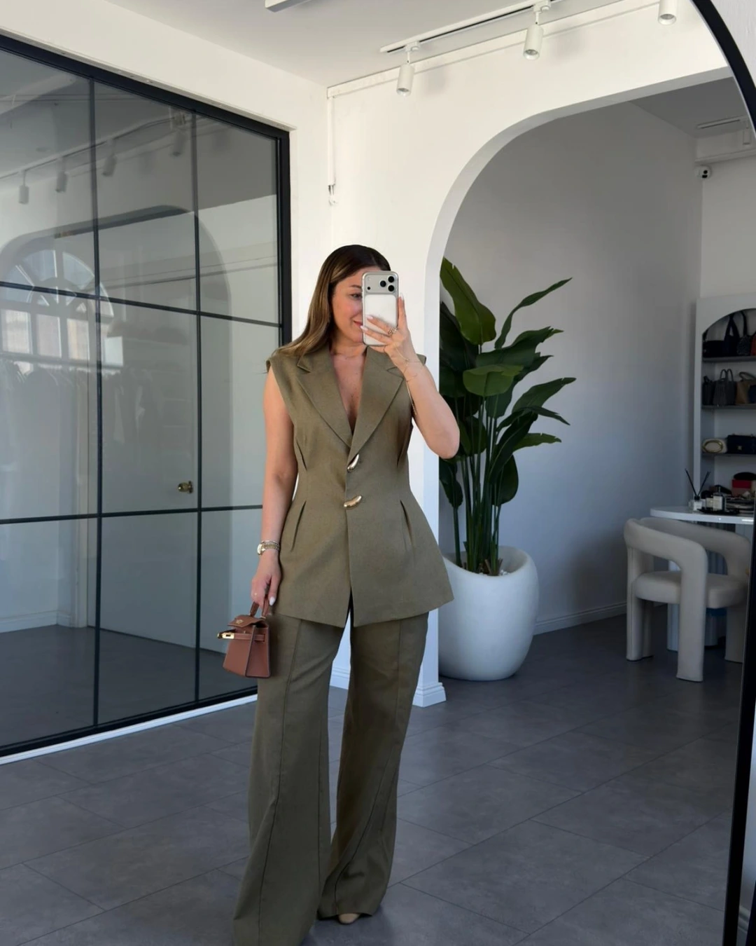 HAKİ PİLELİ KETEN YELEK PANTOLON TAKIM 9298