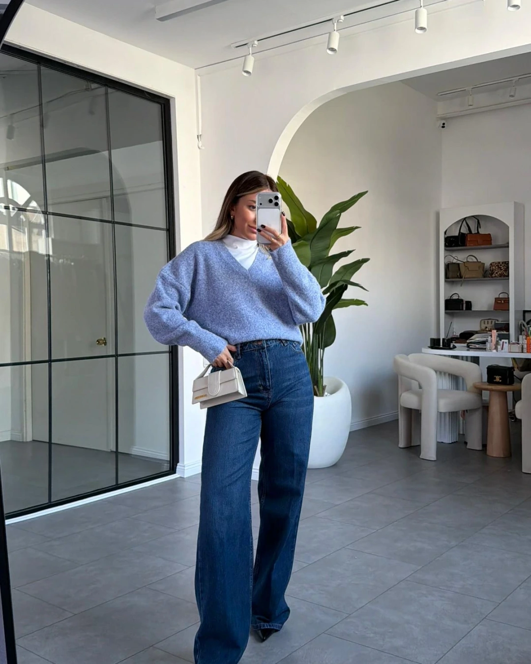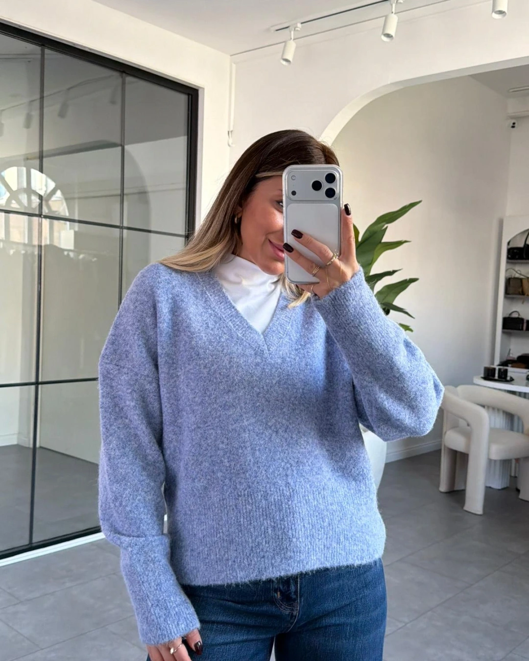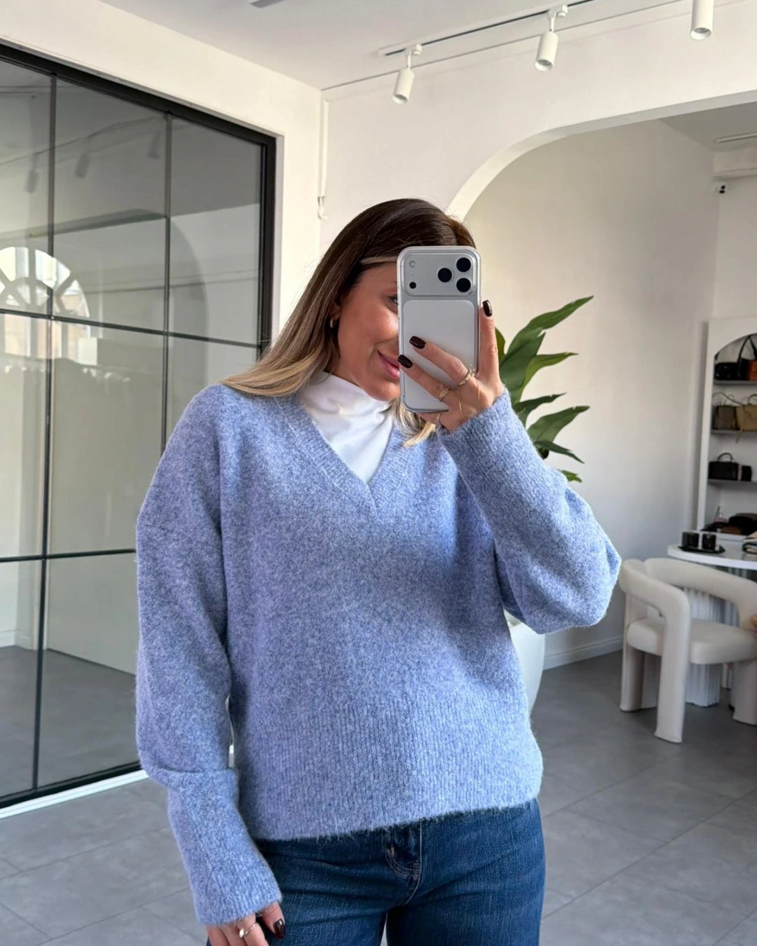 İNDİGO MELANJ DİLVİN V YAKA YUMUŞAK DOKULU KAZAK