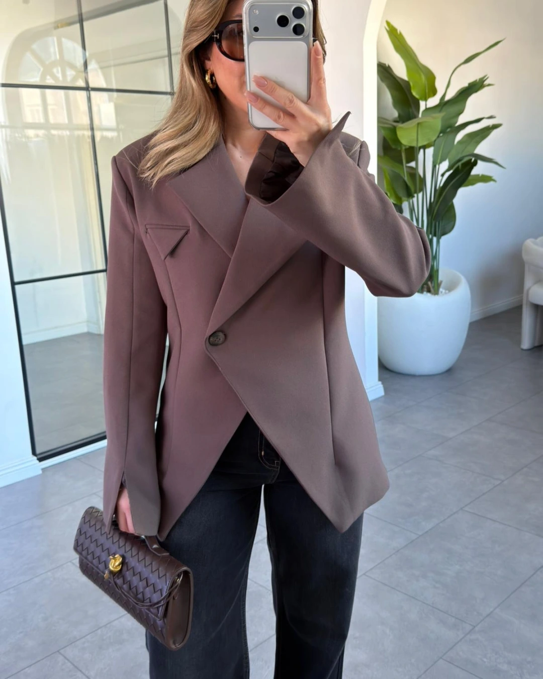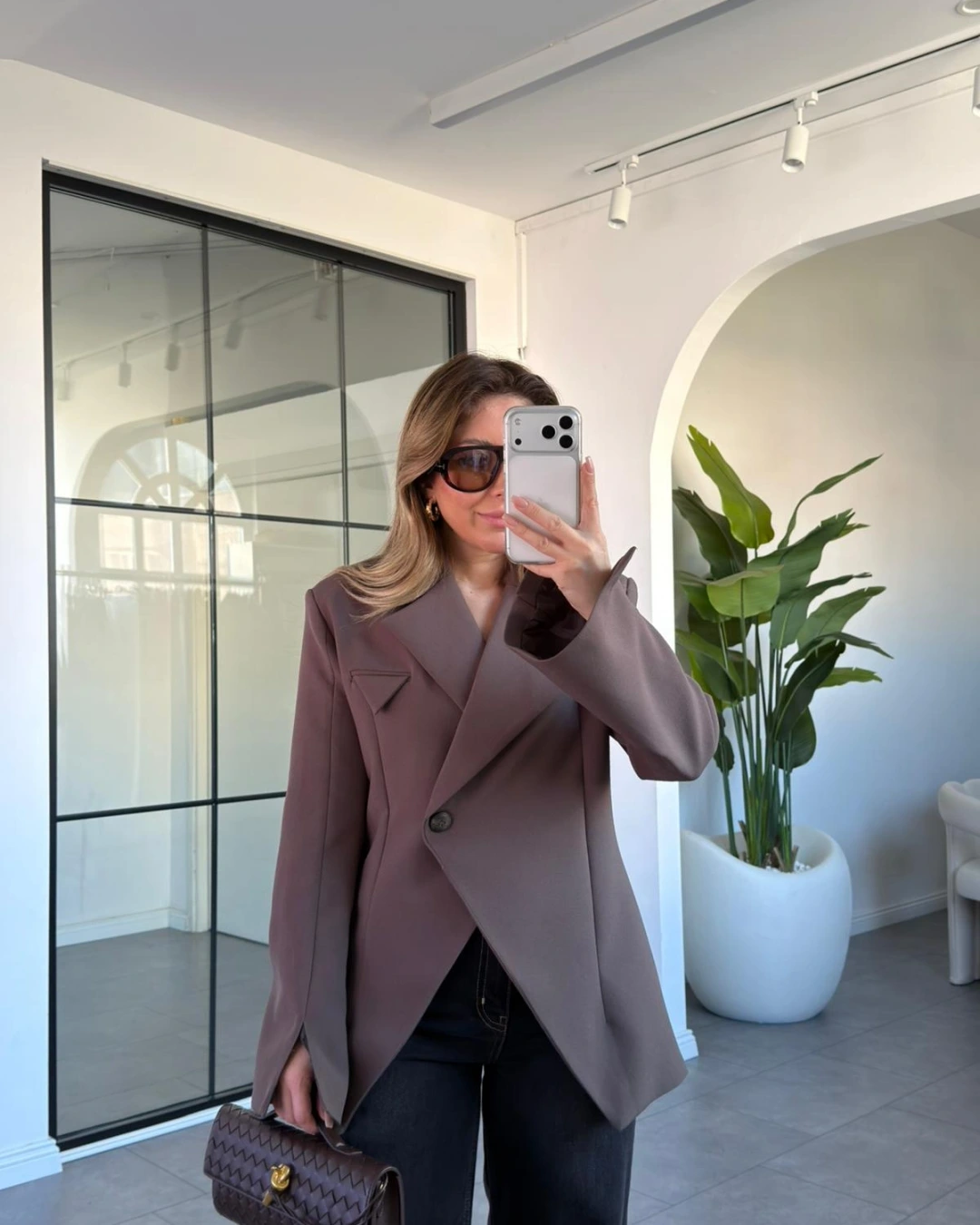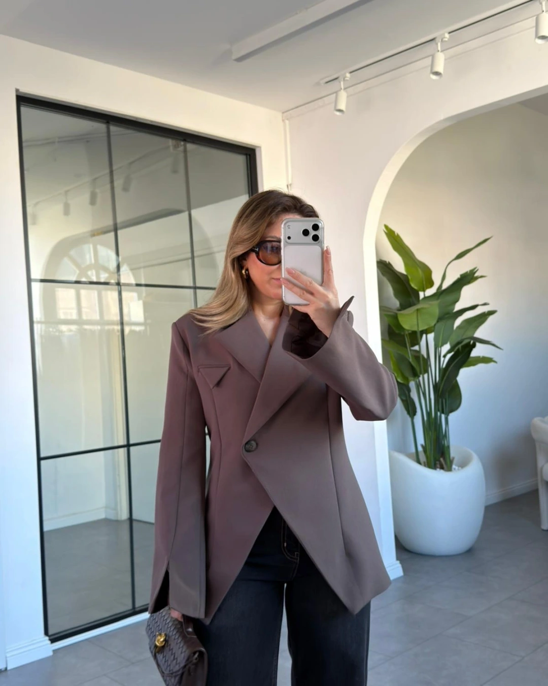 KAHVE ASİMETRİK ATLAS CEKET 9703