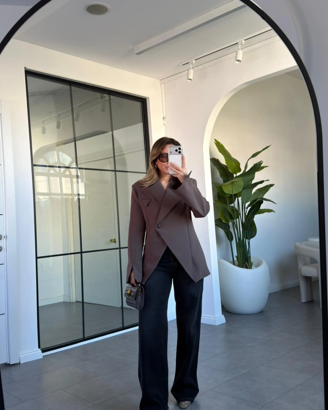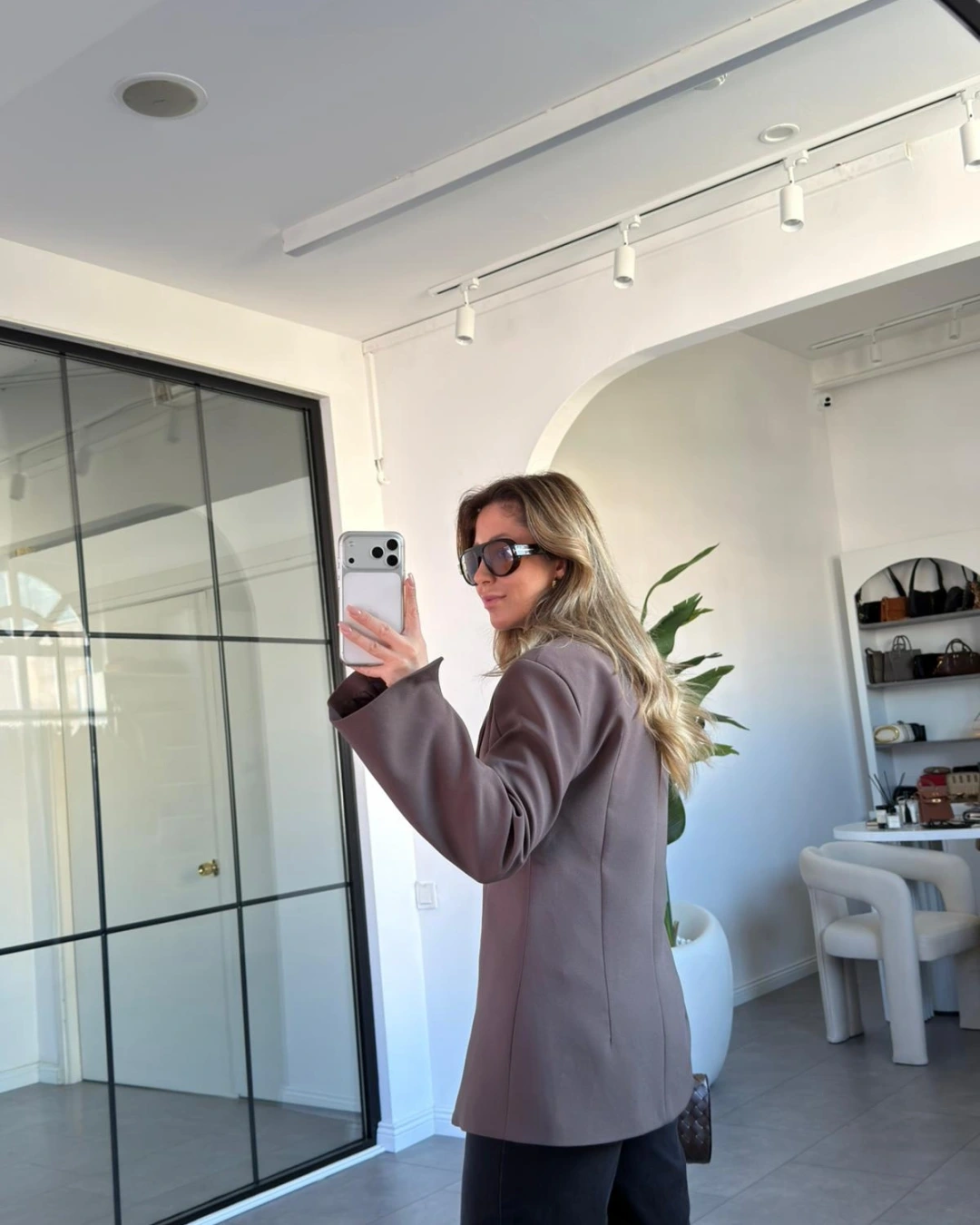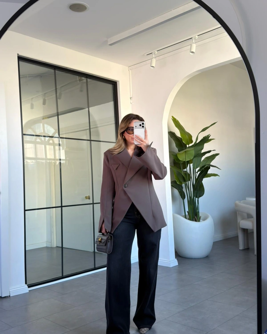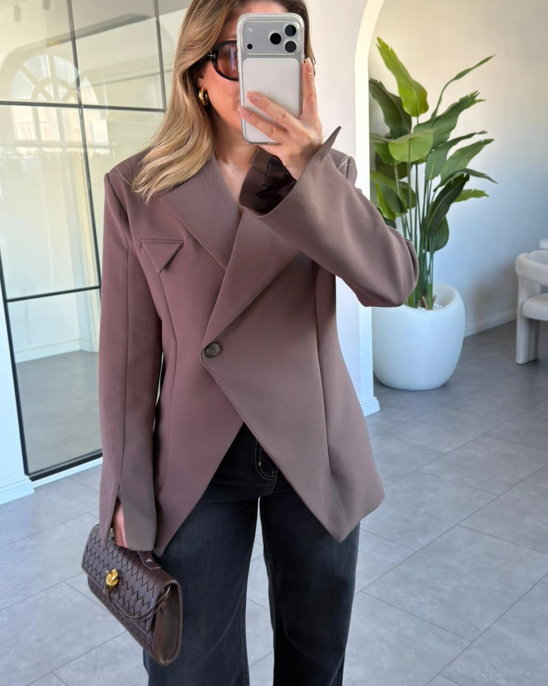 KAHVE ASİMETRİK ATLAS CEKET 9703