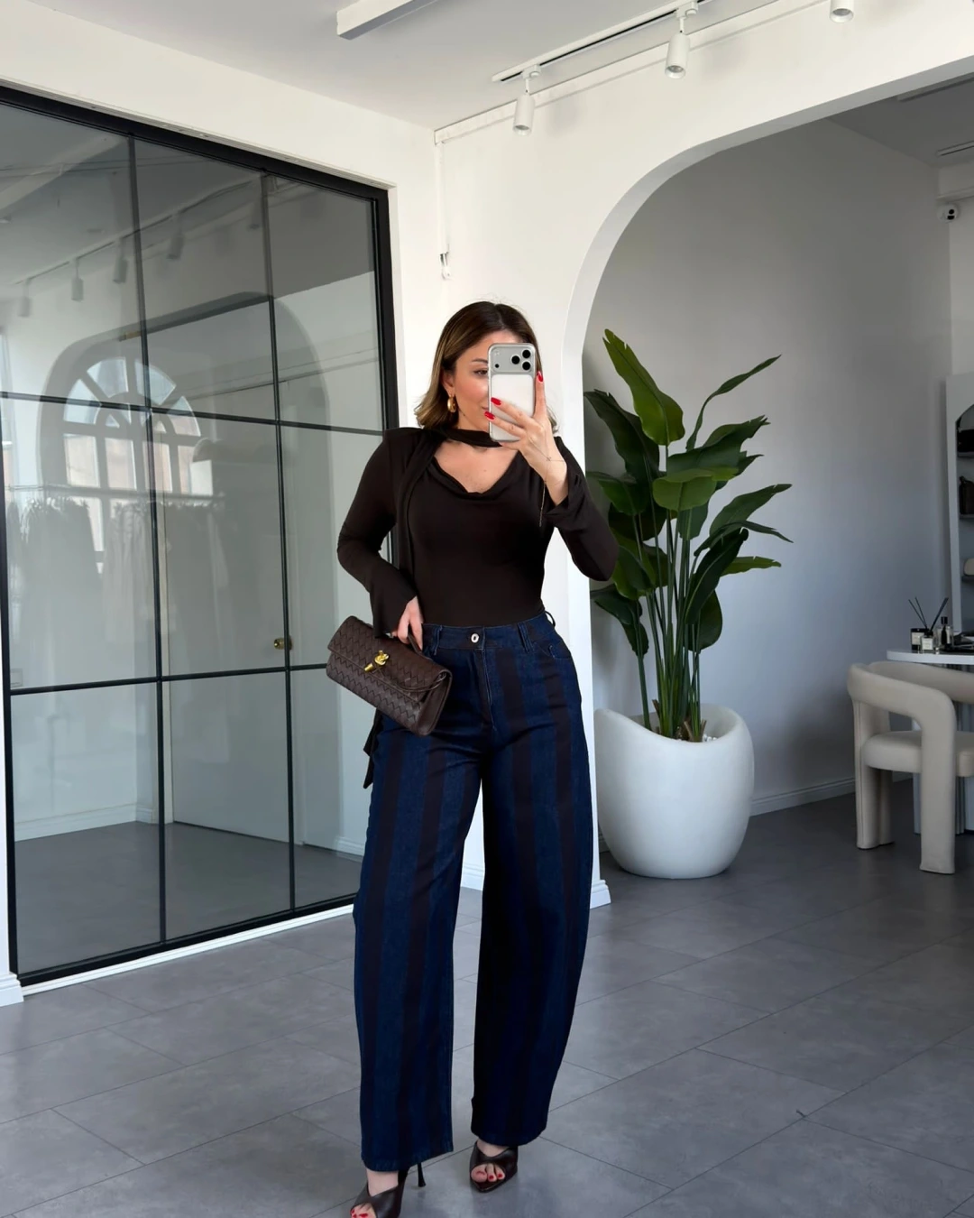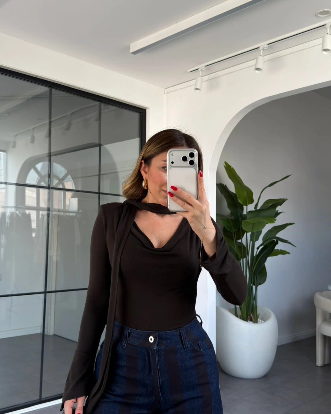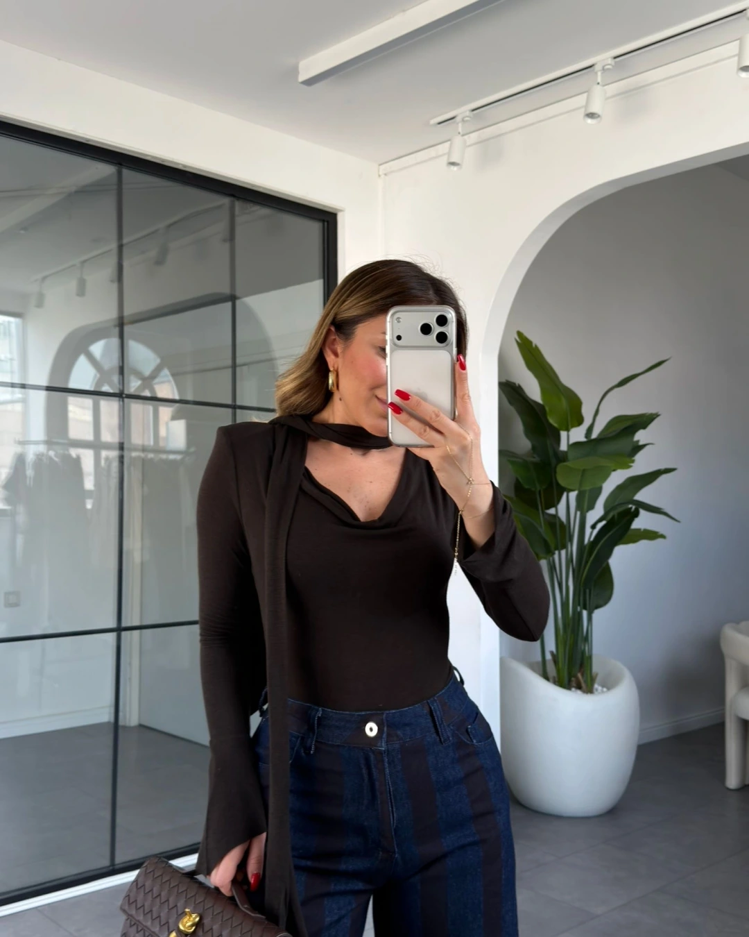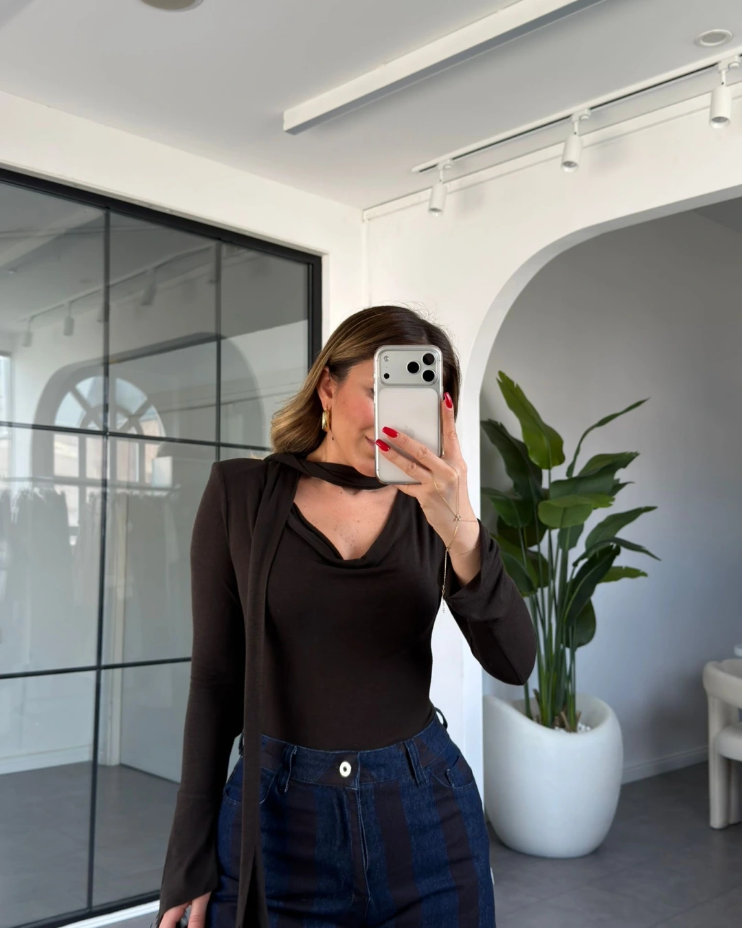 KAHVE ATKILI DEGAJE YAKA BLUZ 18209