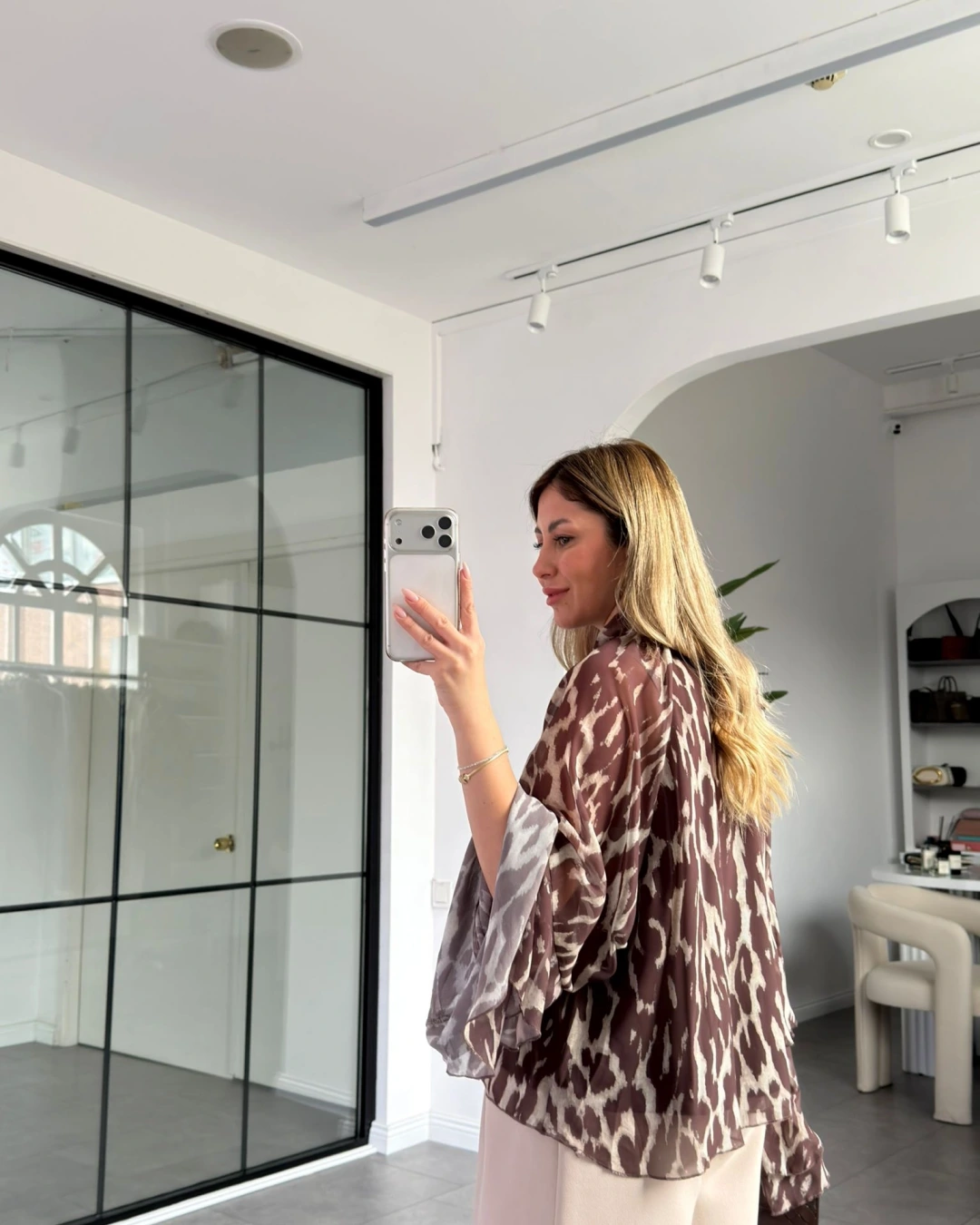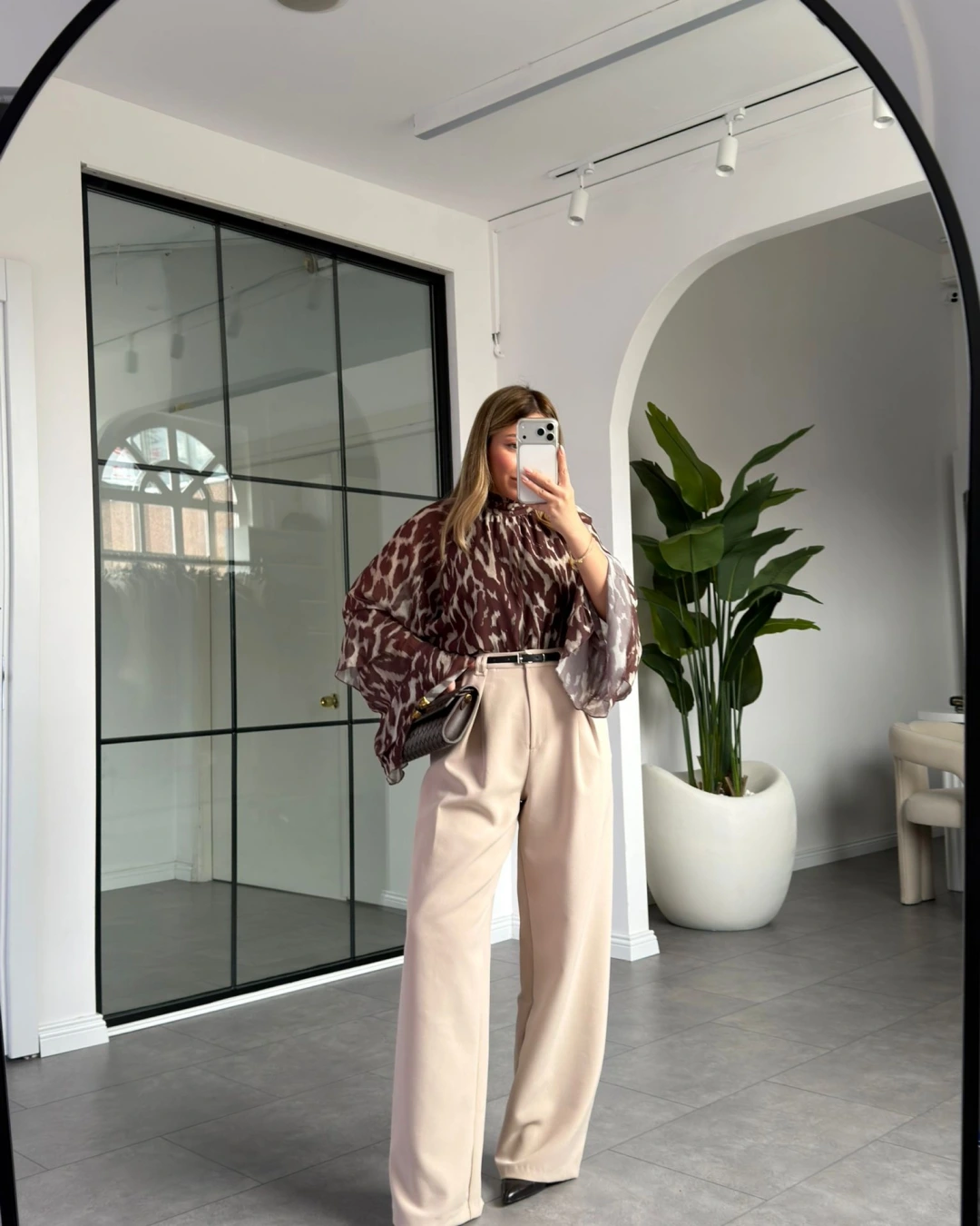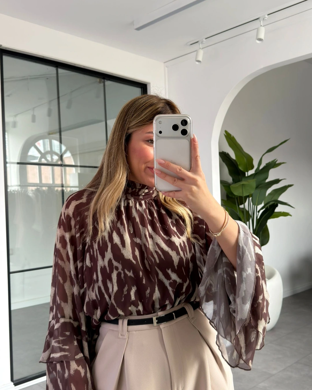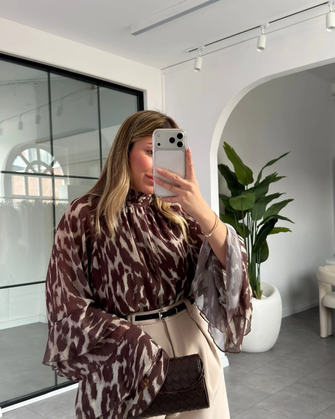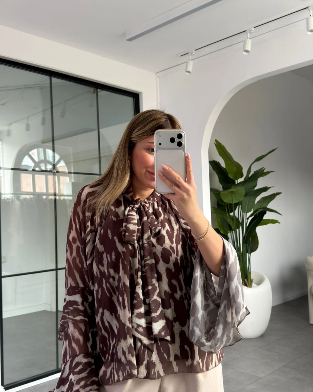 KAHVE BAĞLAMALI ŞİFON BLUZ