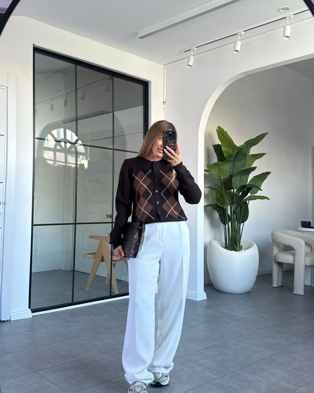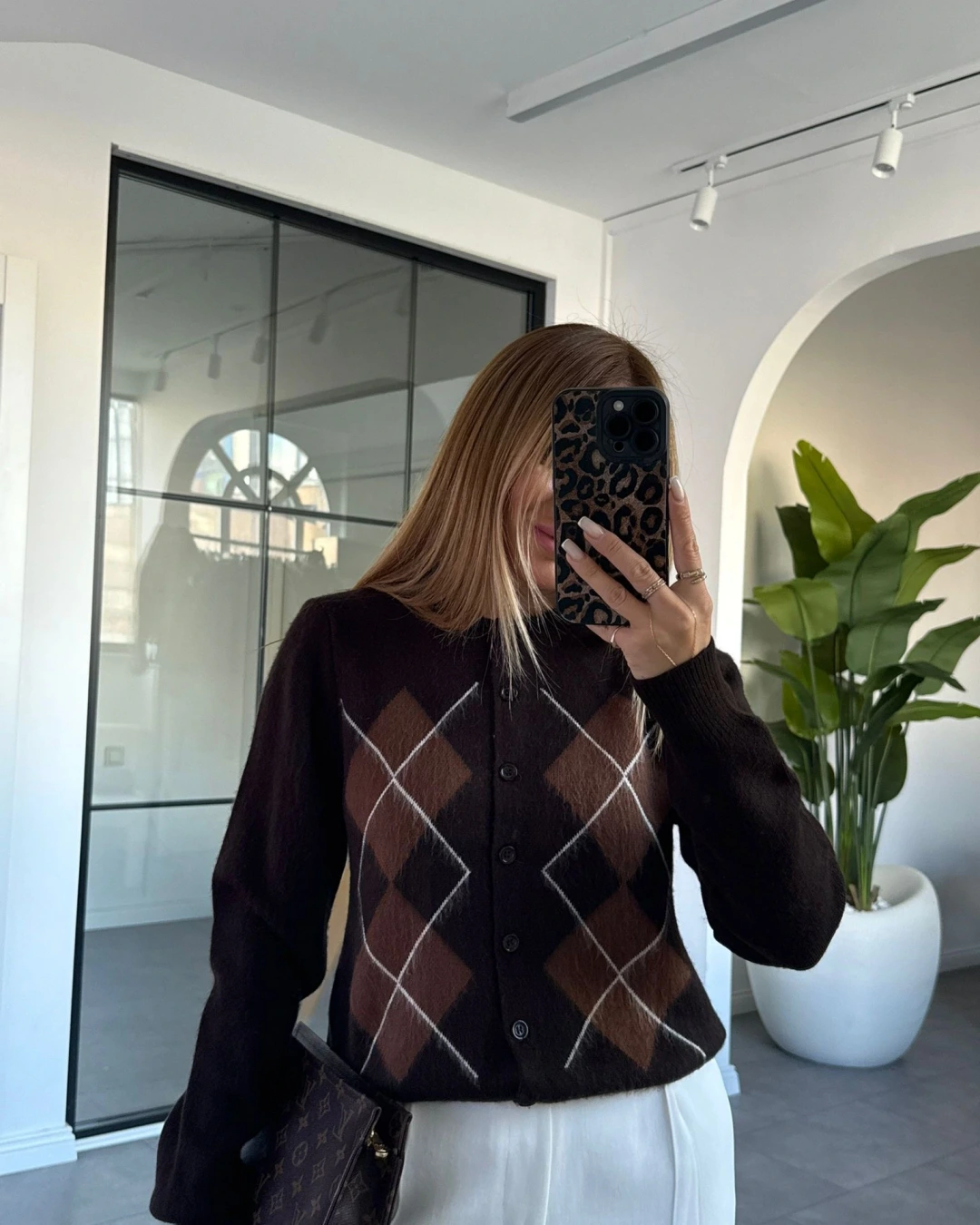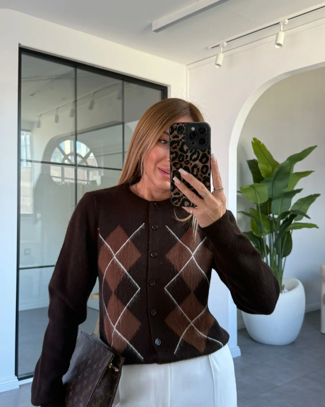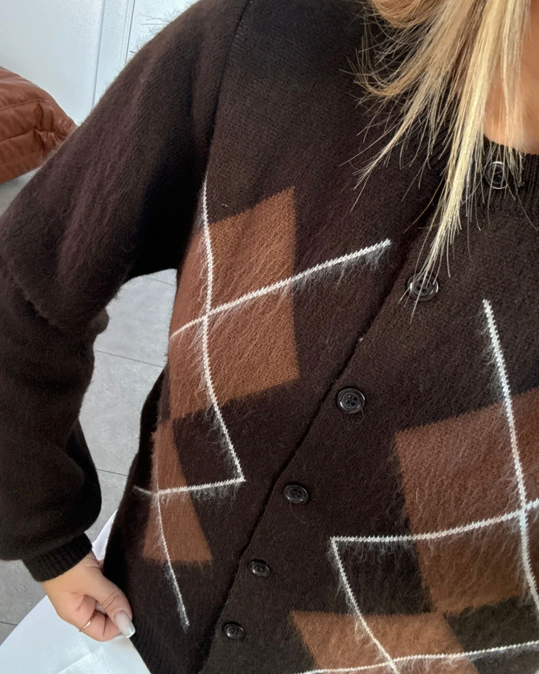 KAHVE BAKLAVA DESEN TRİKO HIRKA