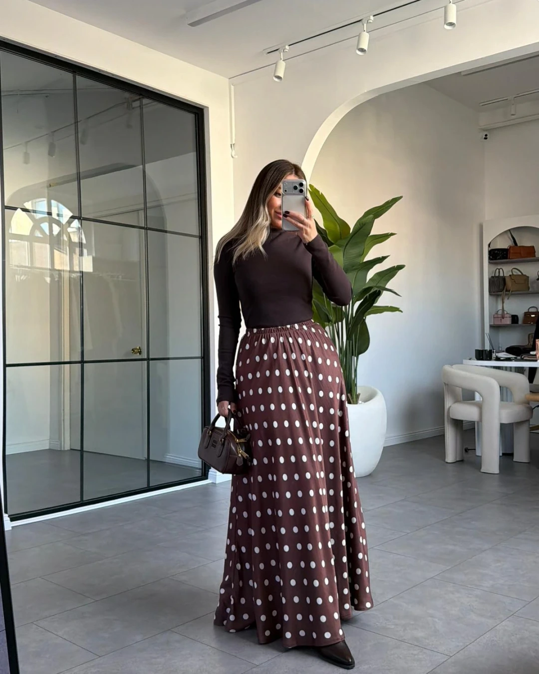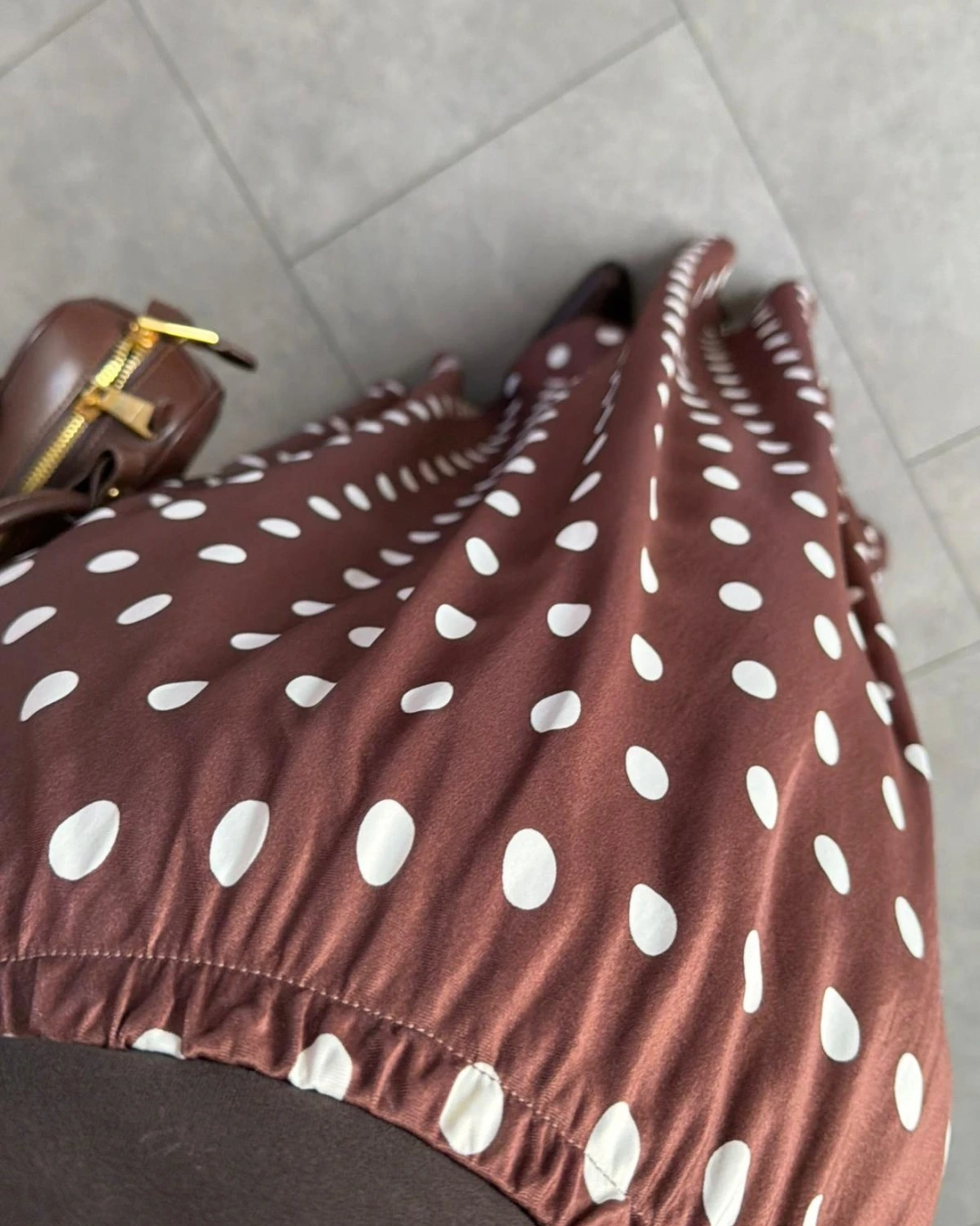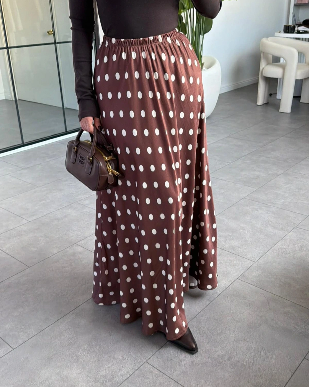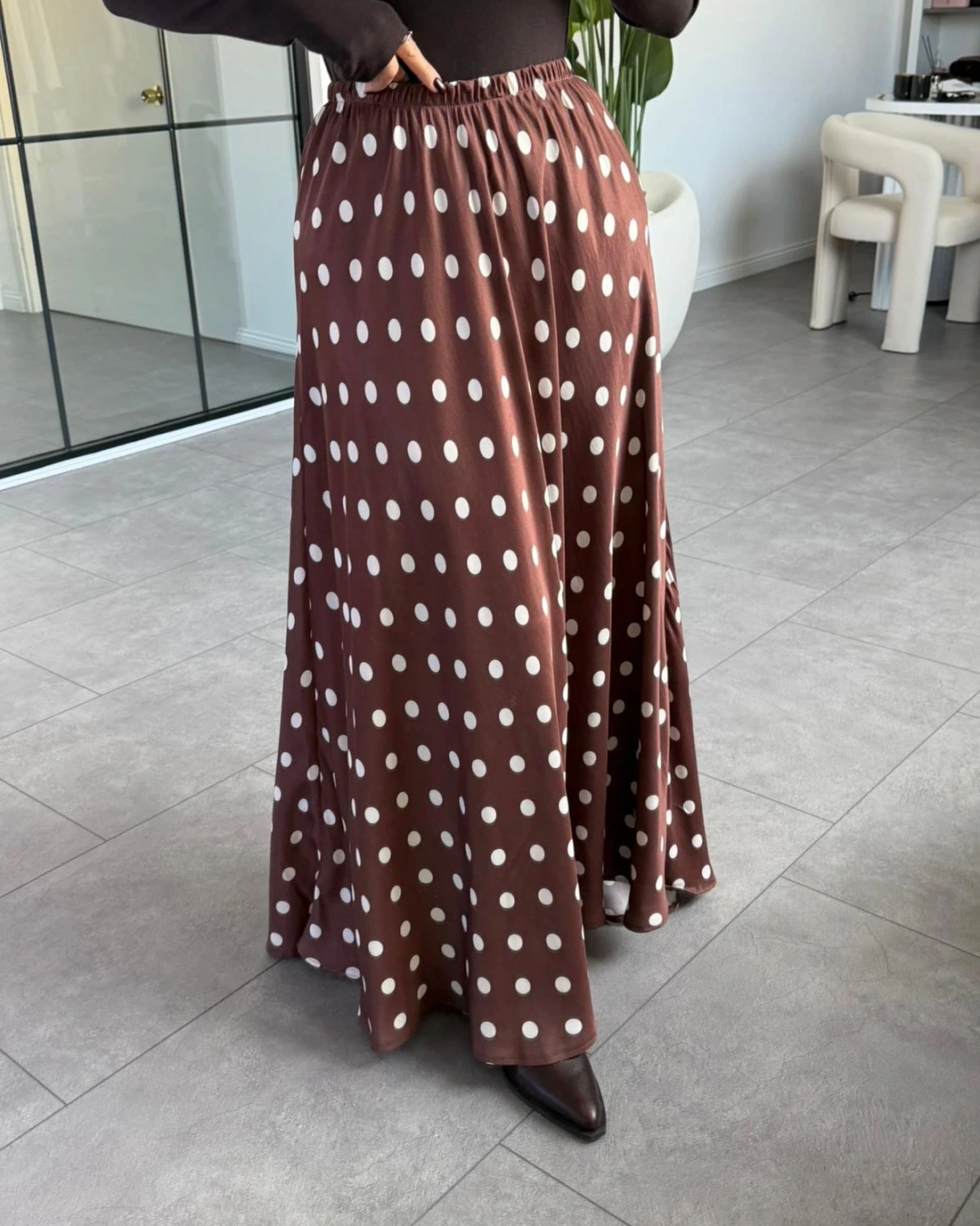 KAHVE BEJ PUANTİYELİ SATEN ETEK