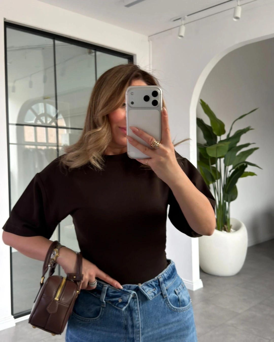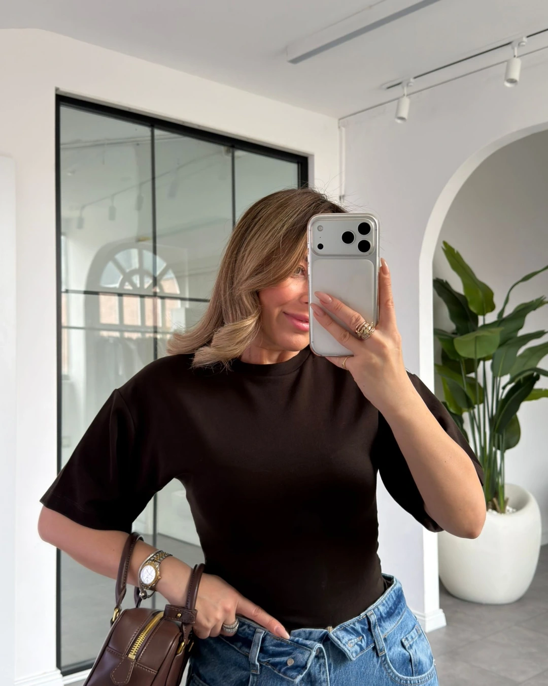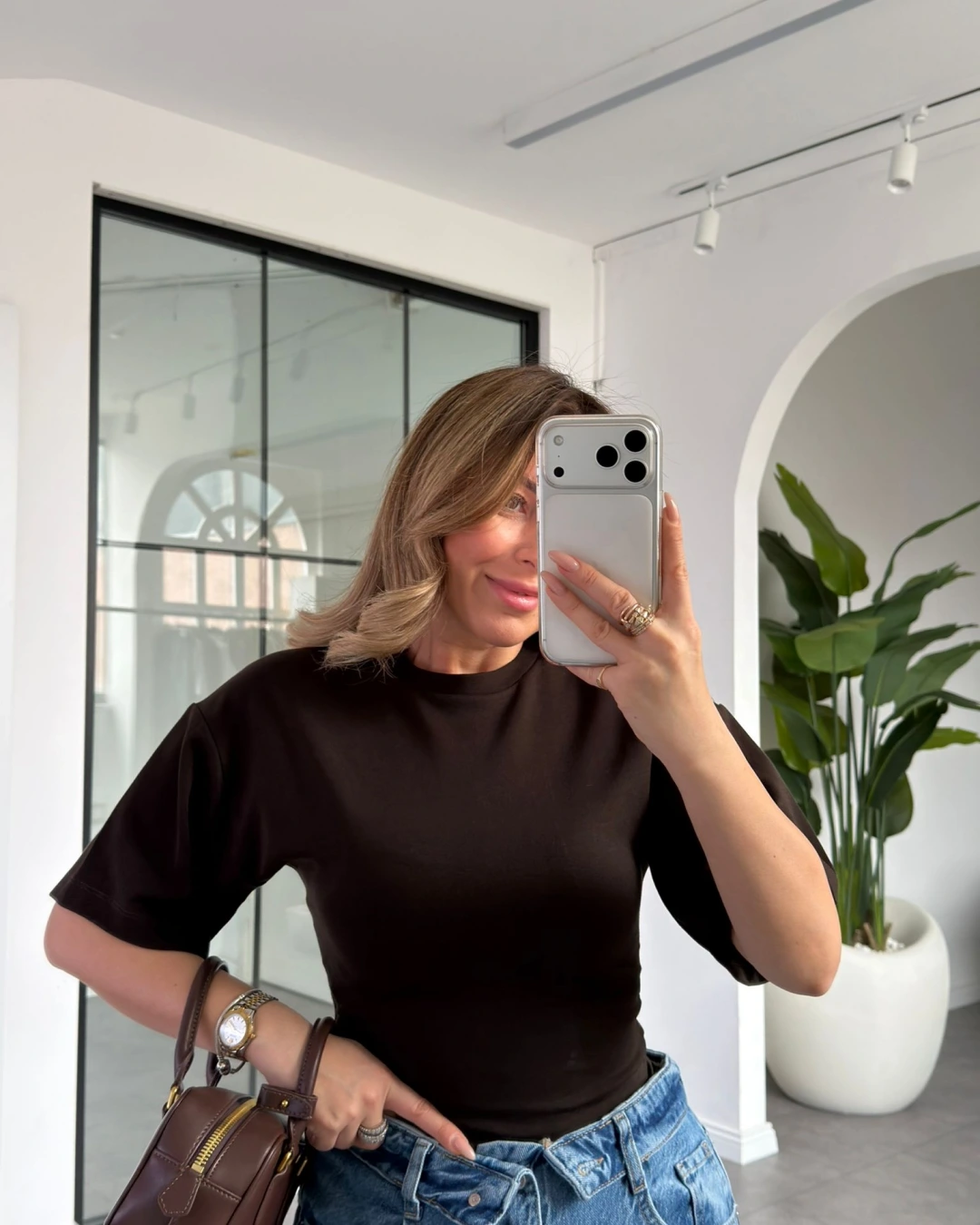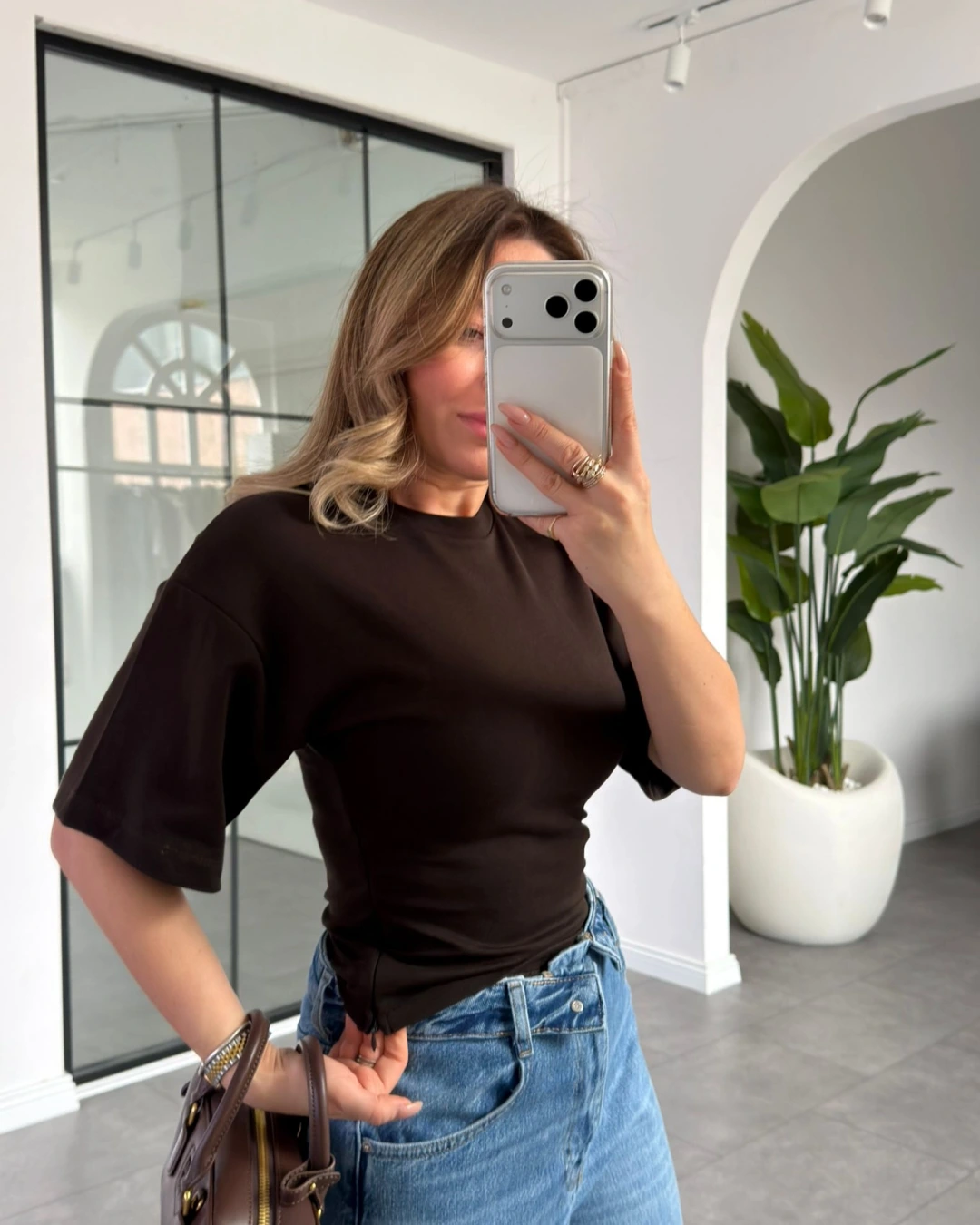KAHVE BELDEN FERMUAR DETAYLI T-SHIRT 1003