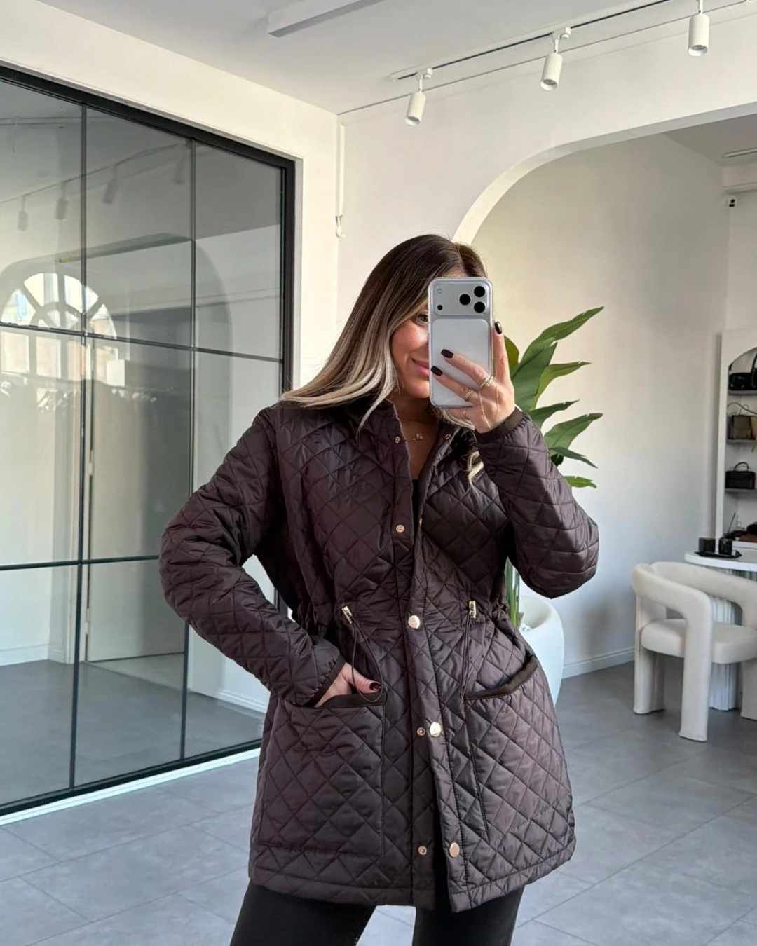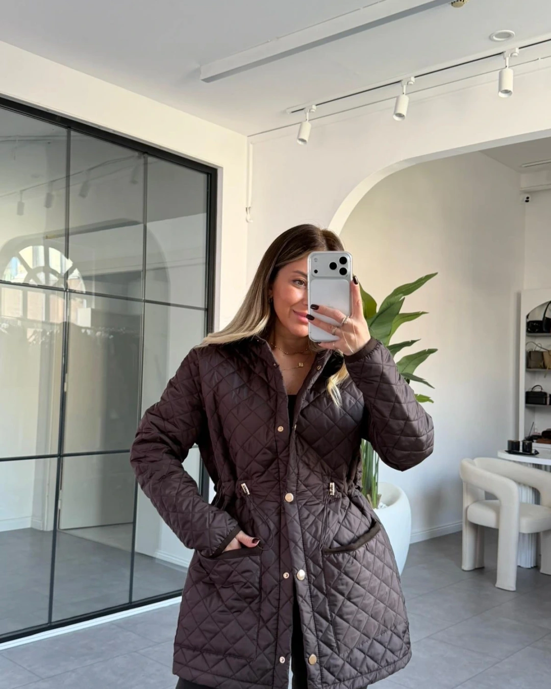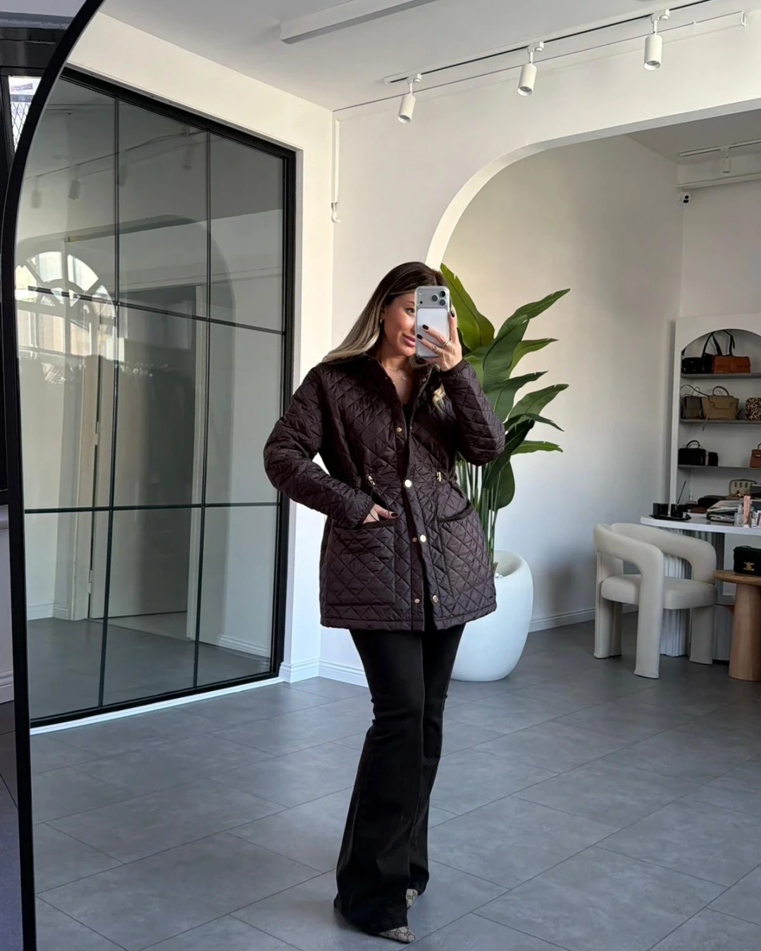 KAHVE BELİ BÜZGÜLÜ KAPİTONE MONT