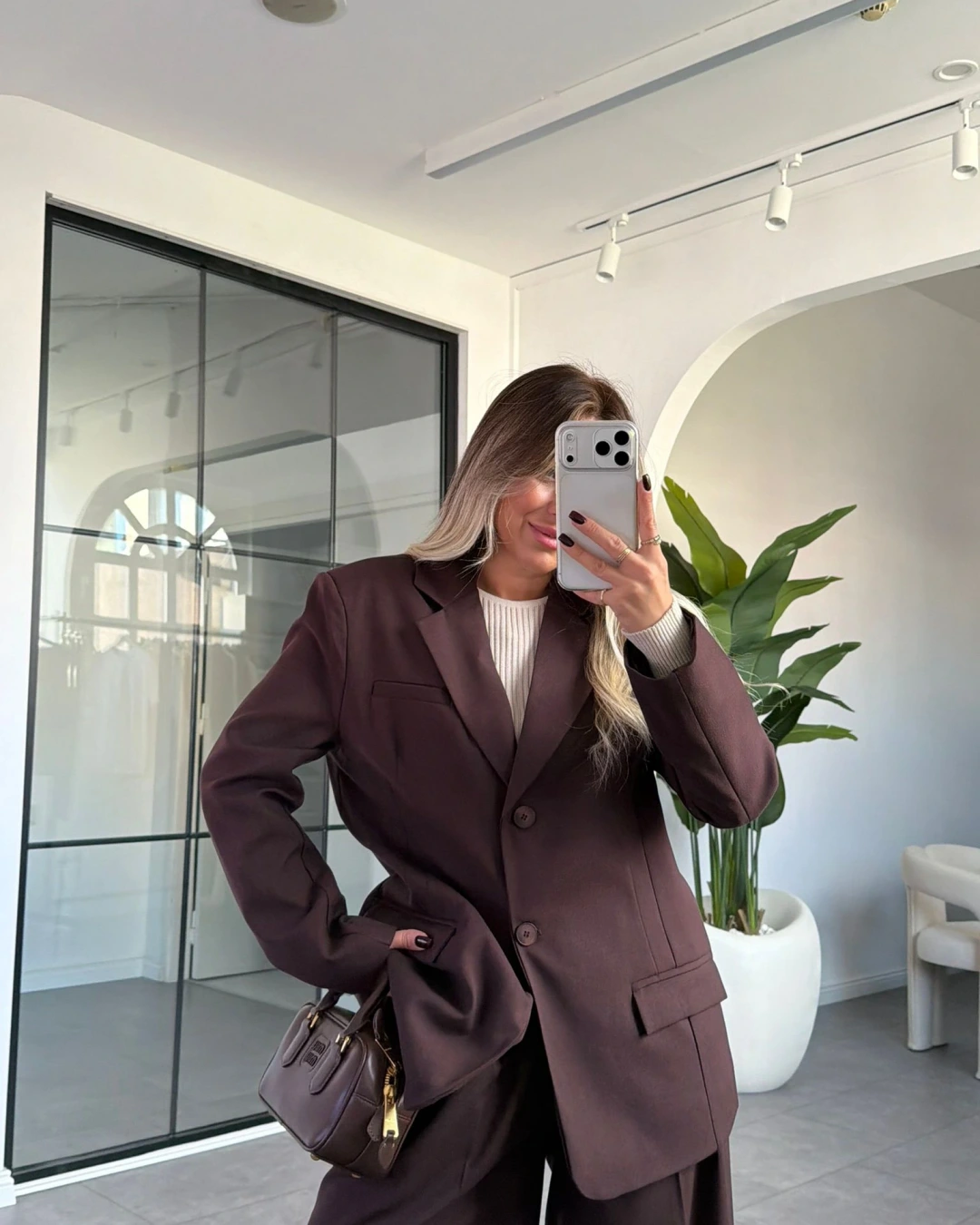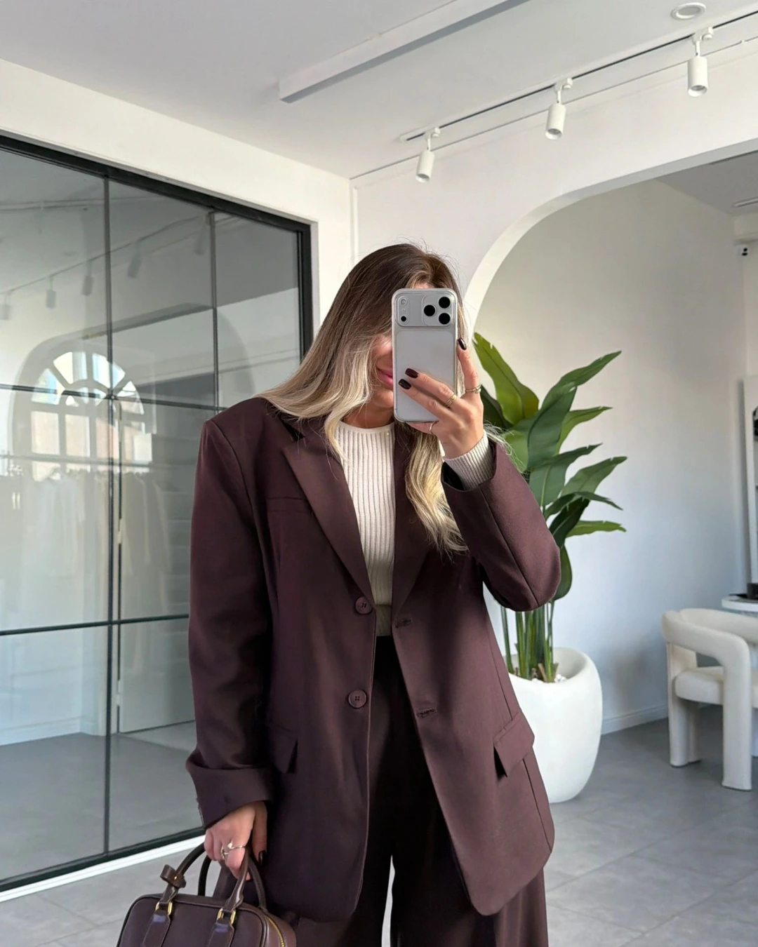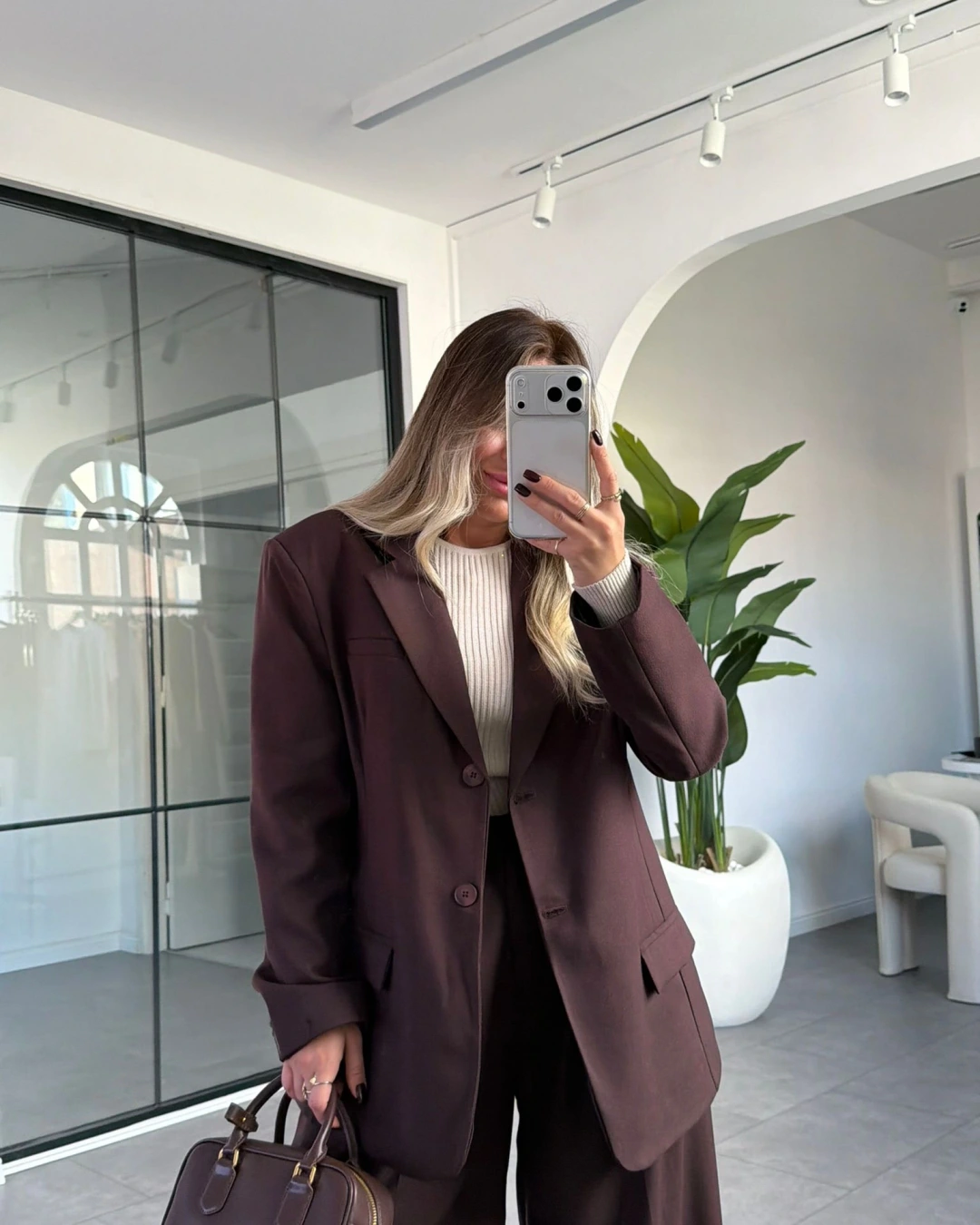 KAHVE ÇİFT CEPLİ KRUVAZE YAKA CEKET