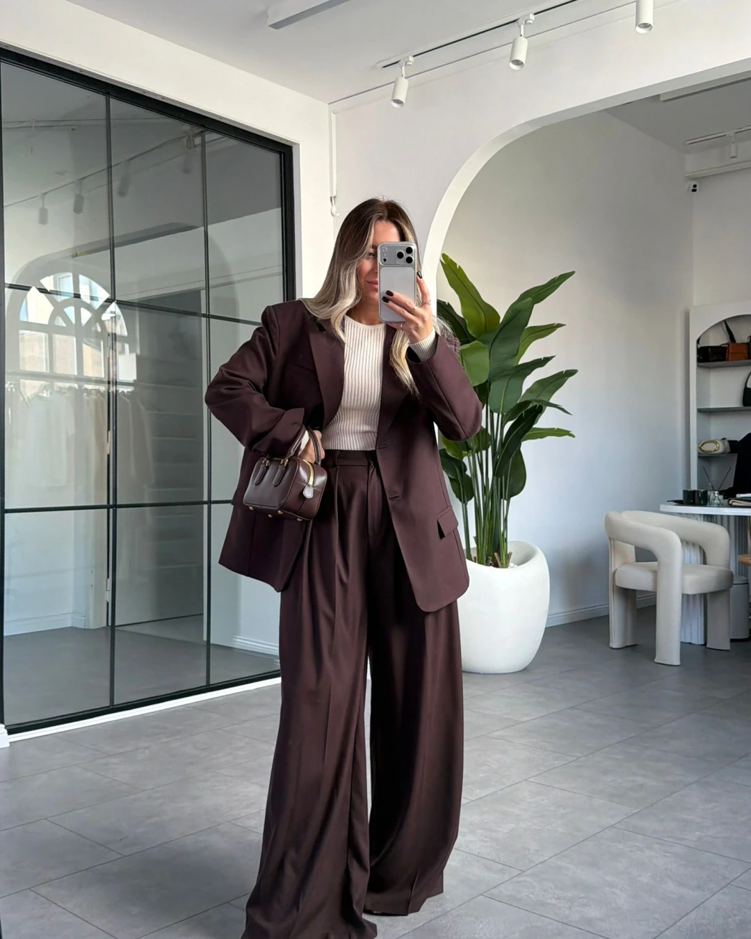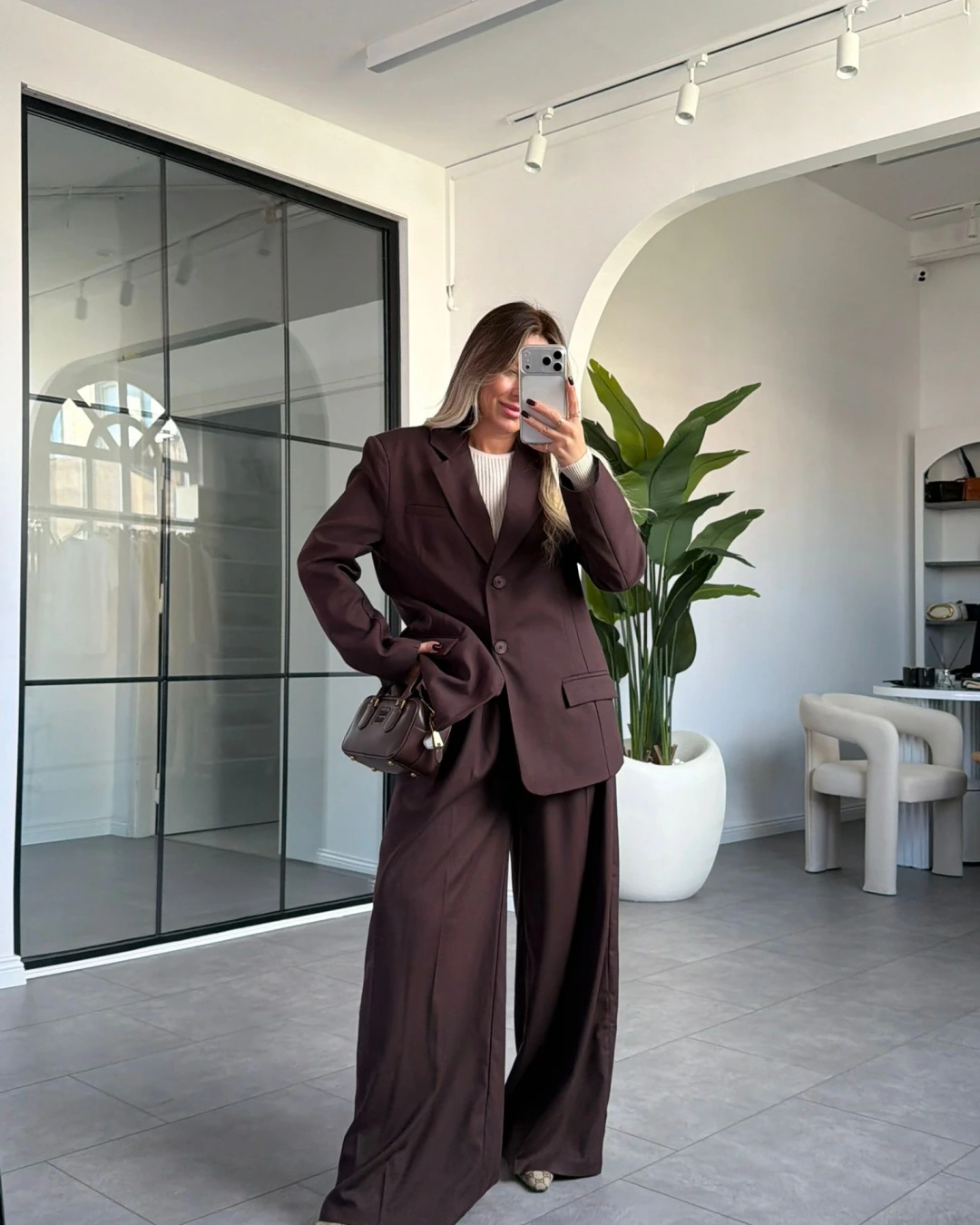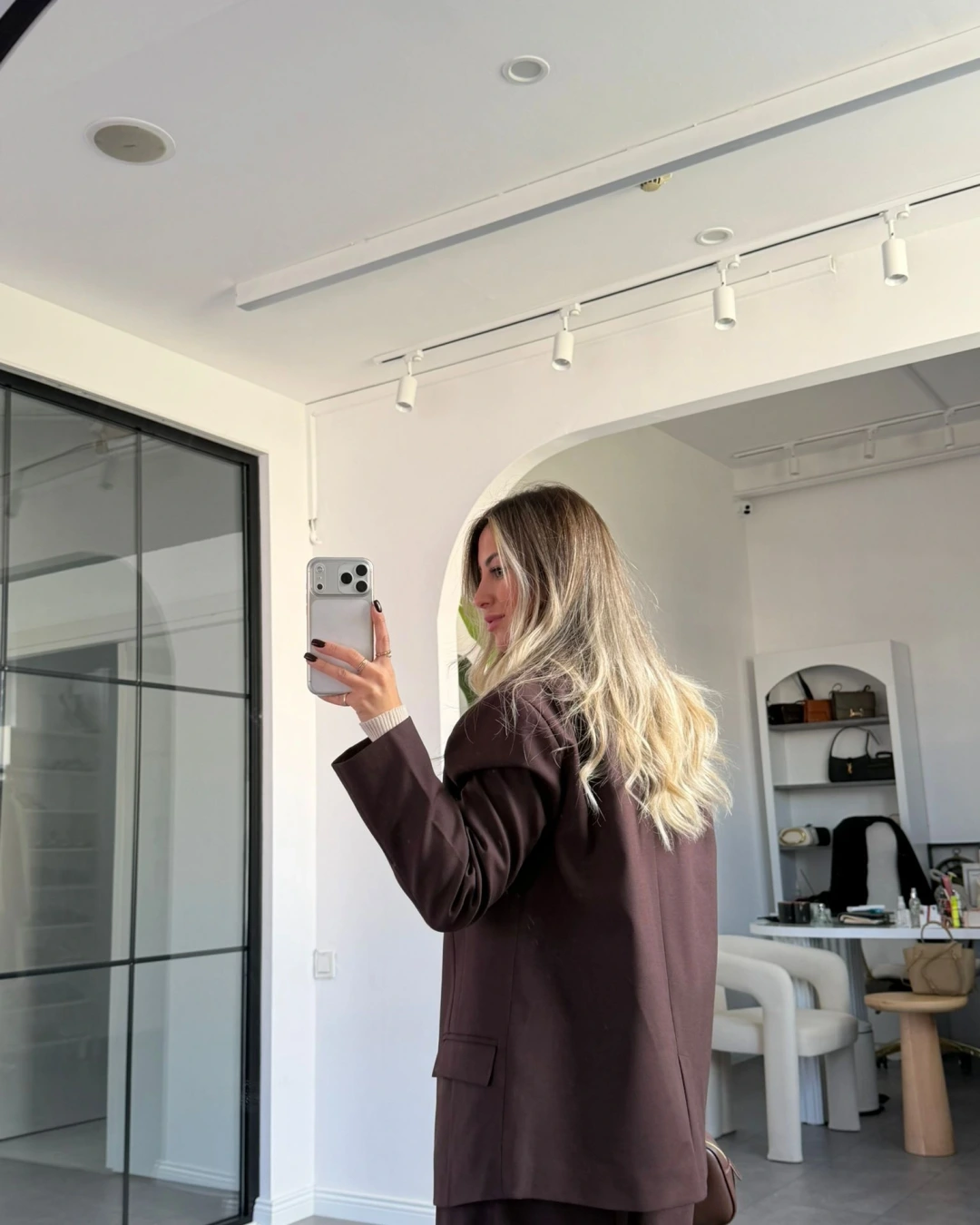 KAHVE ÇİFT CEPLİ KRUVAZE YAKA CEKET