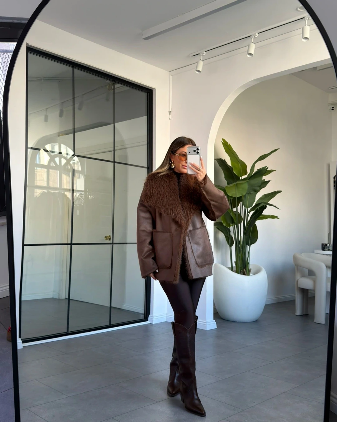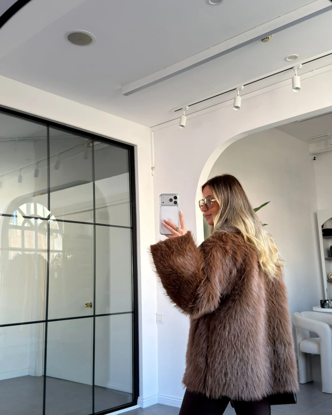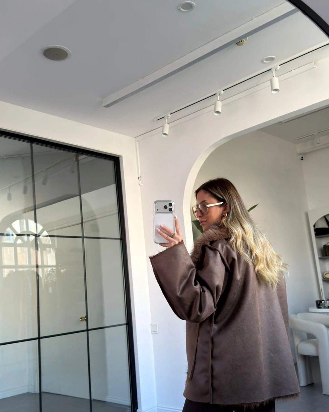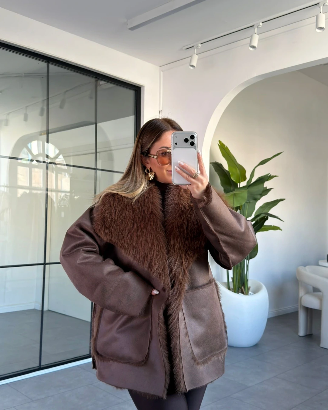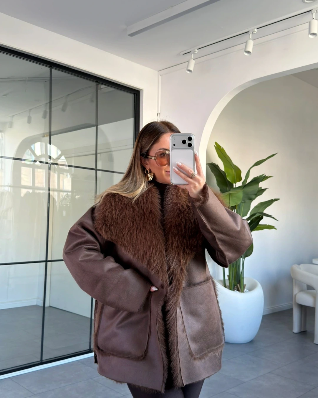 KAHVE ÇİFT TARAFLI TASARIM KÜRK MONT