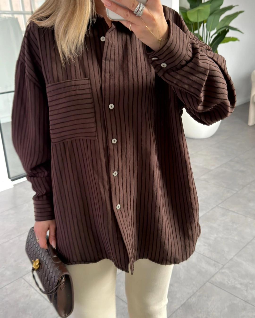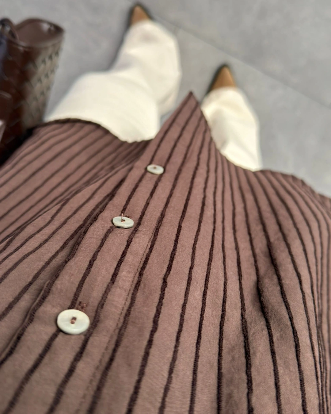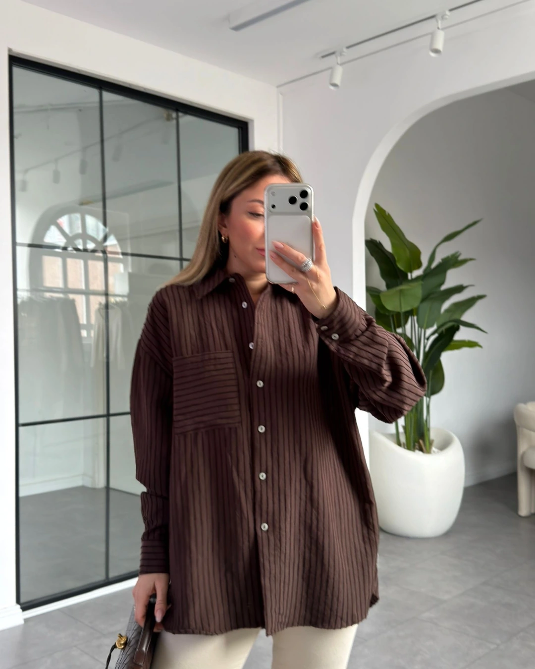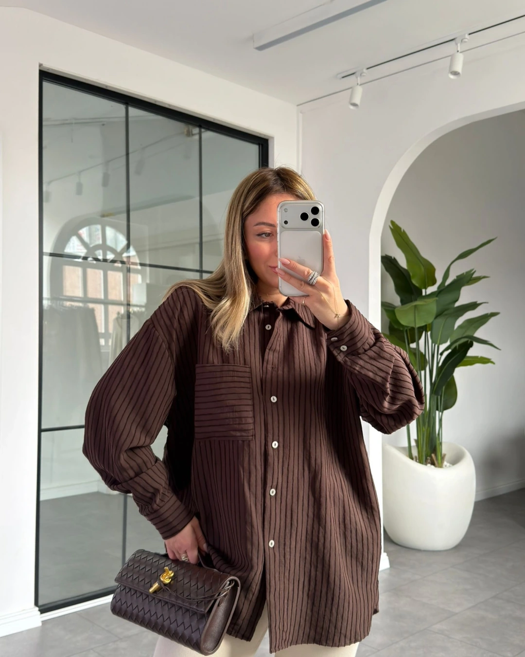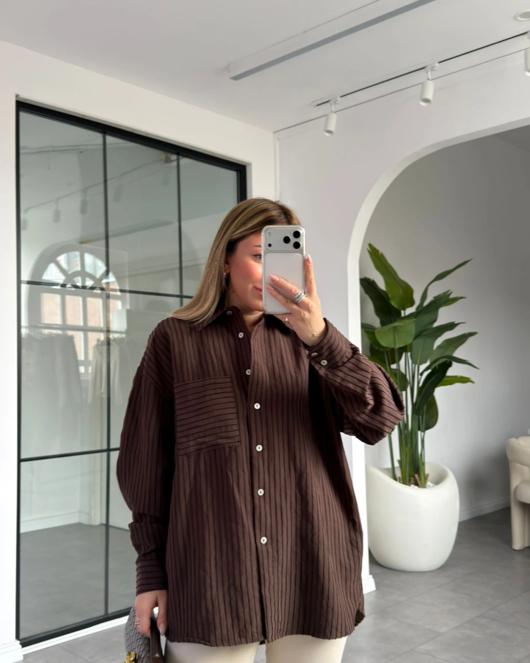 KAHVE ÇİZGİLİ DOKULU GÖMLEK