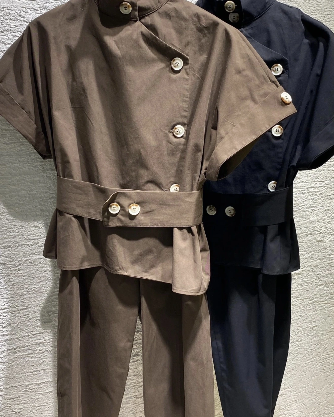 KAHVE DİK YAKA DÜĞMELİ BLUZ TAKIM