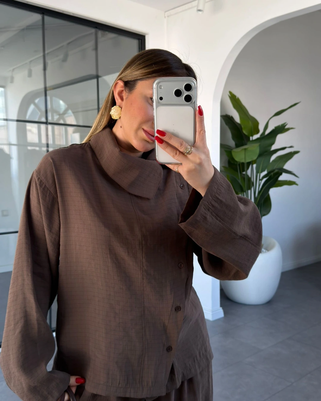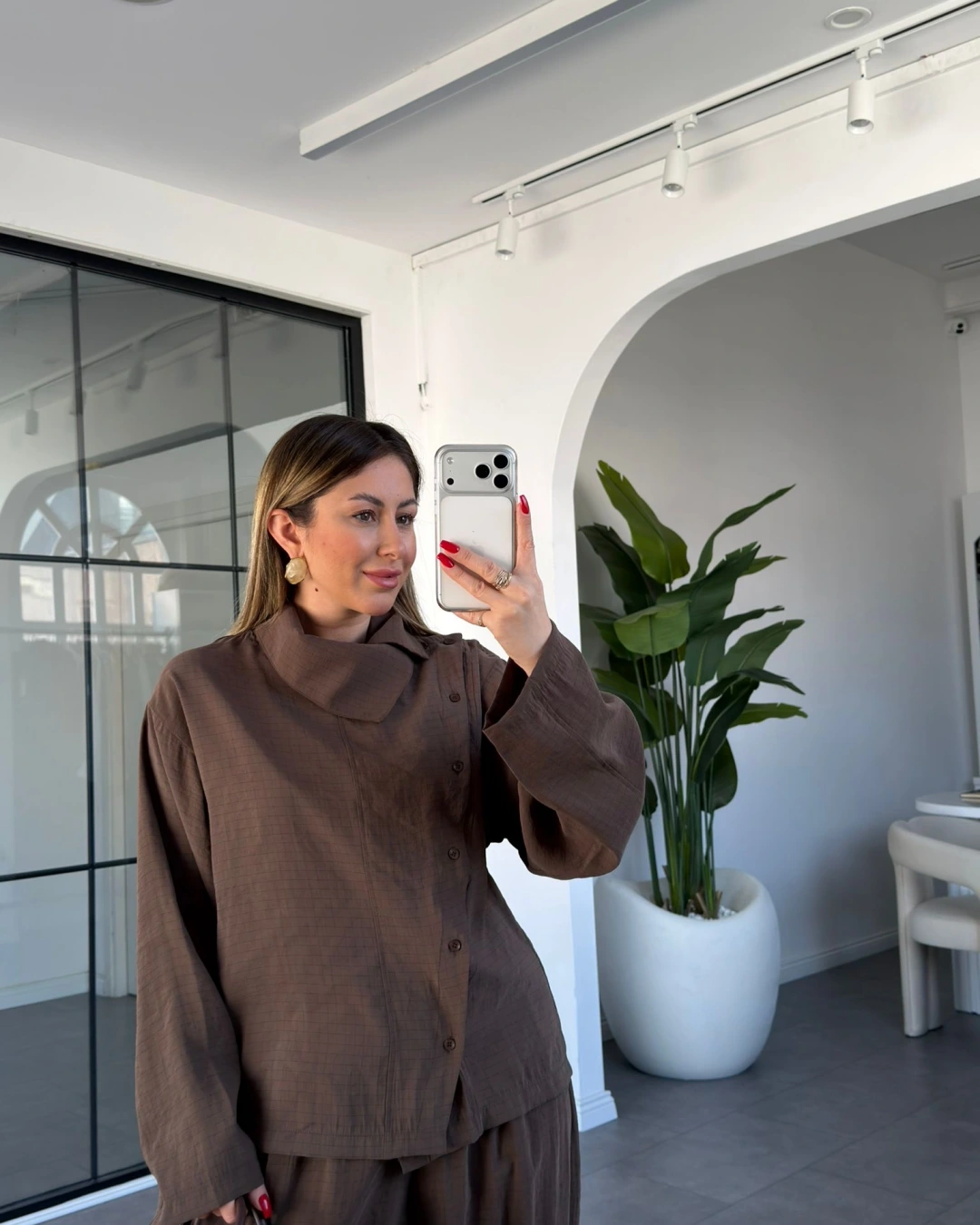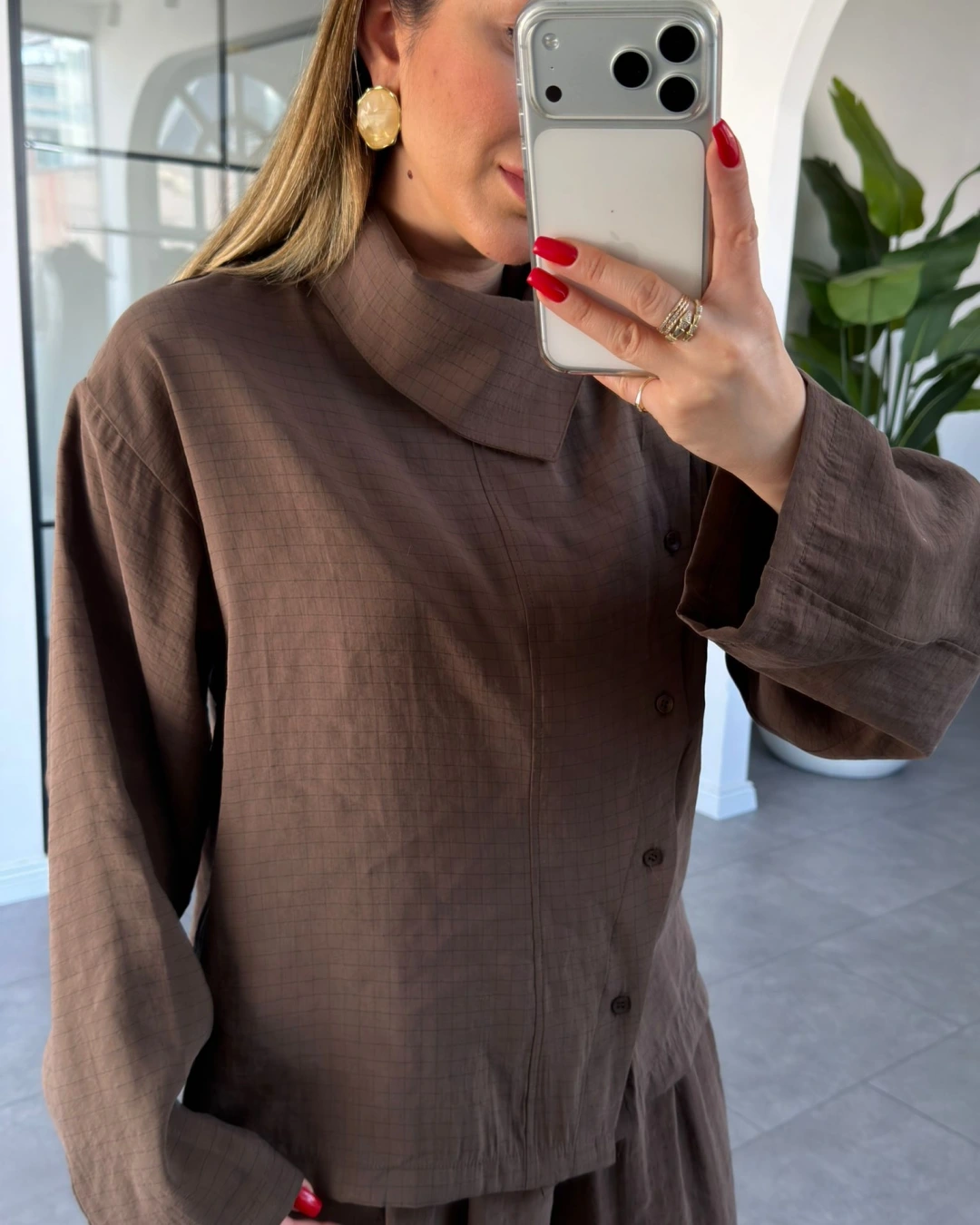 KAHVE DİK YAKA YUMUŞACIK DOKULU ŞALVAR TAKIM 51318