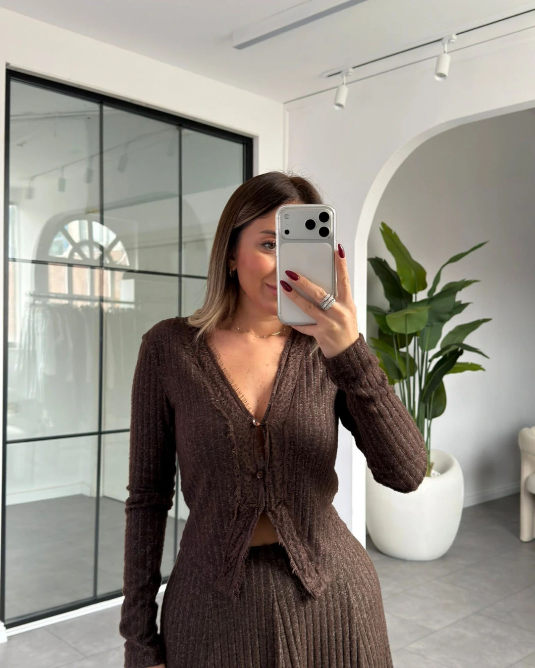 KAHVE ETEK UCU DANTEL DETAY TRİKO TAKIM
