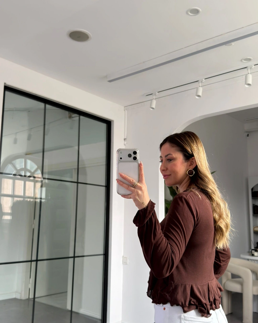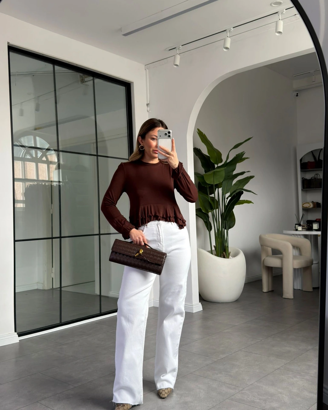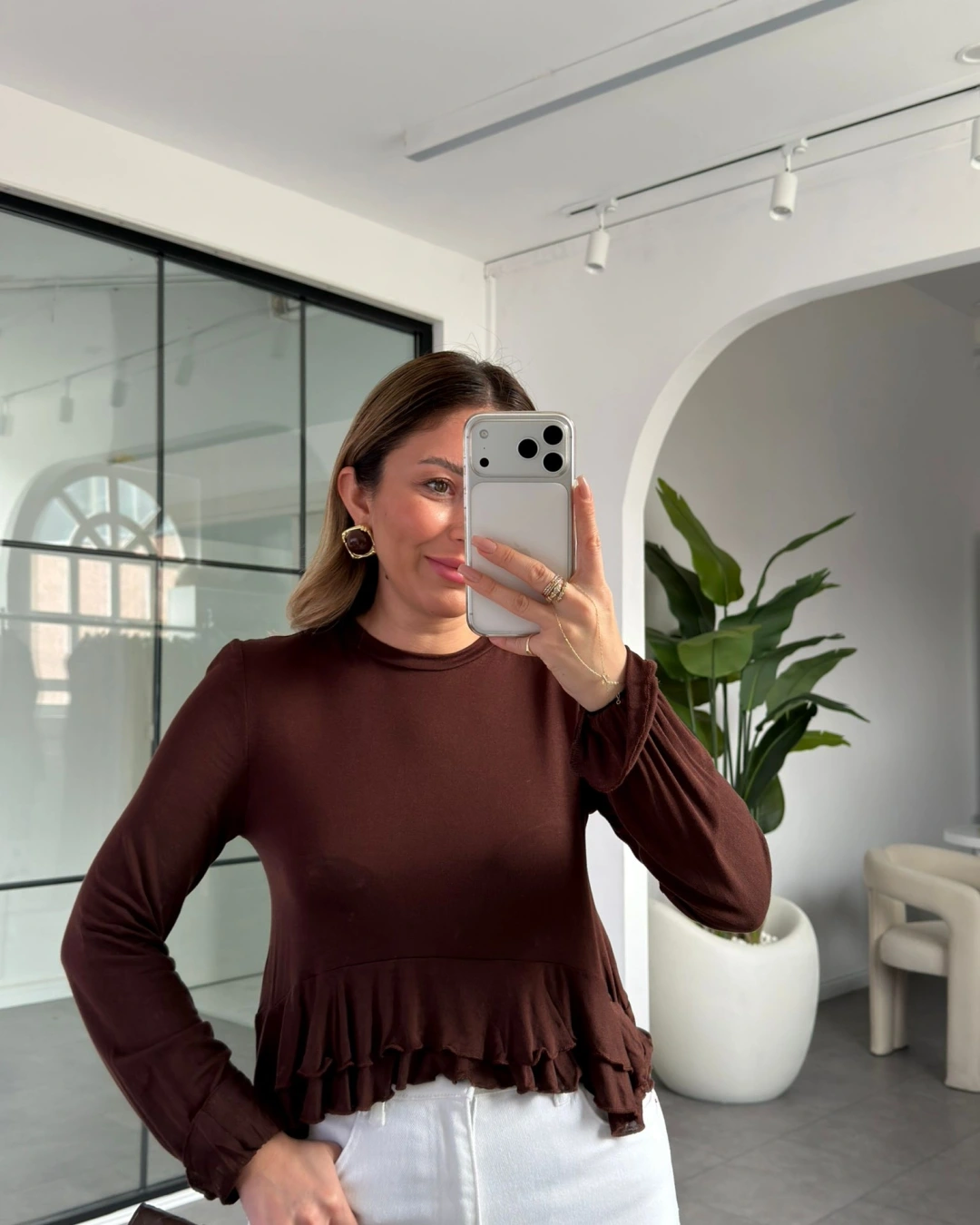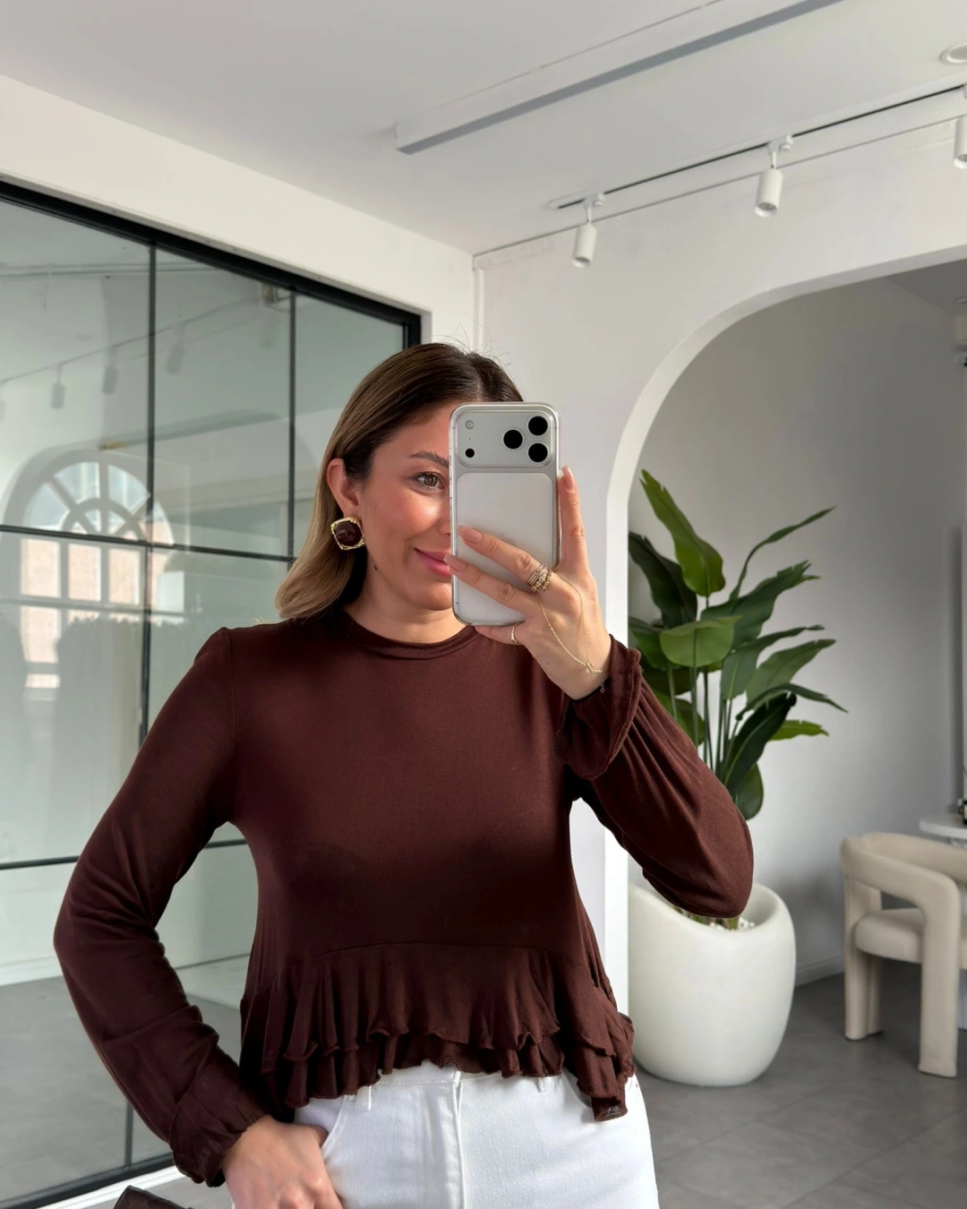 KAHVE ETEKLİ TRANSPARAN BLUZ 14385