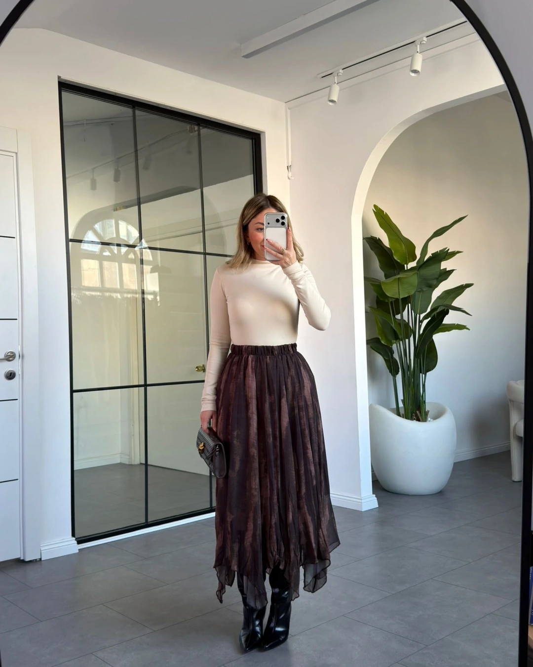 KAHVE HAKİ BATİK DESEN ETEK