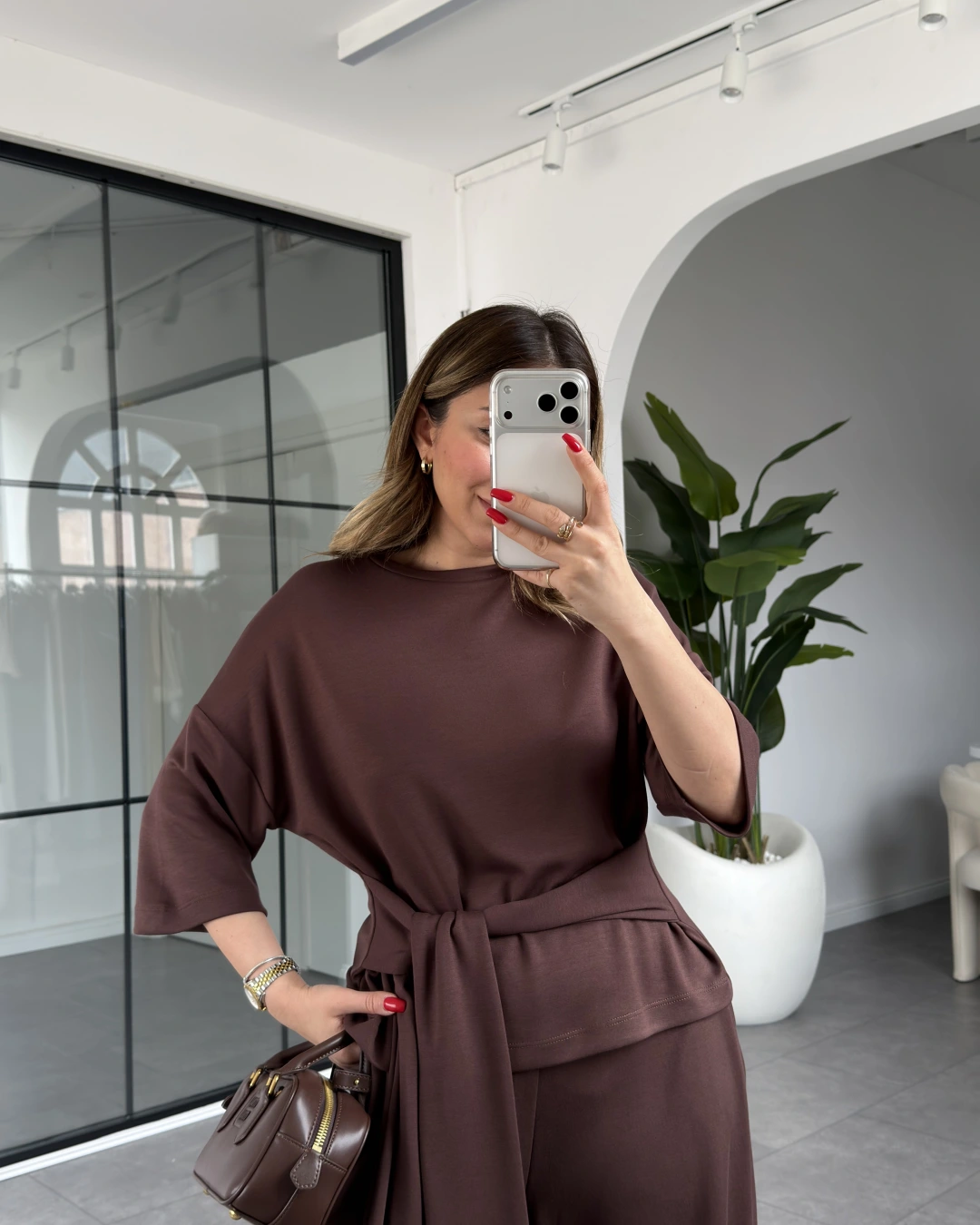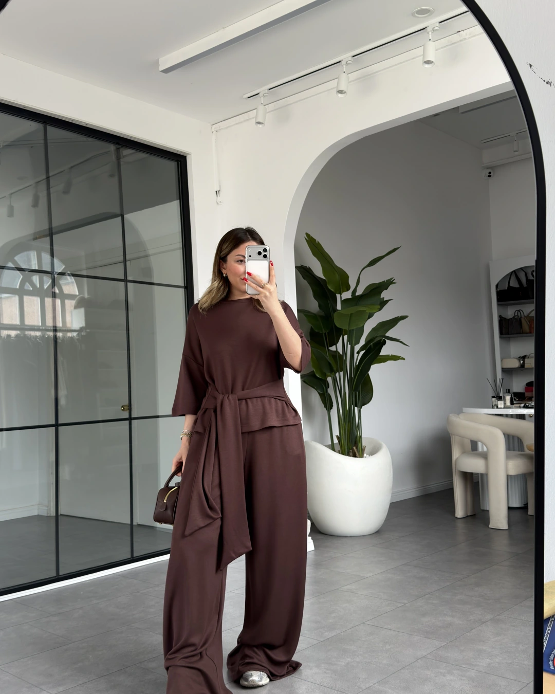 KAHVE KEMERLİ CROP TAKIM 4114
