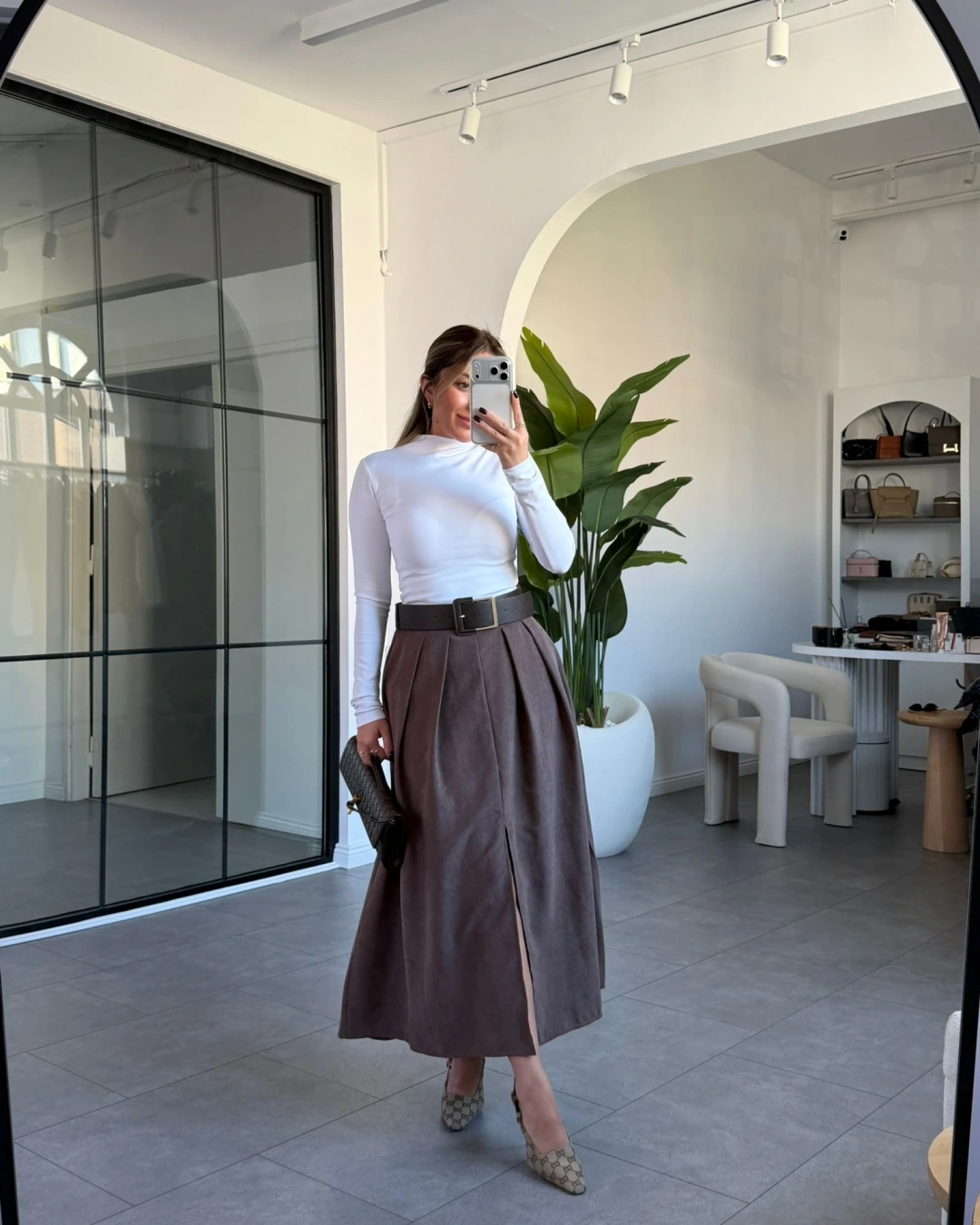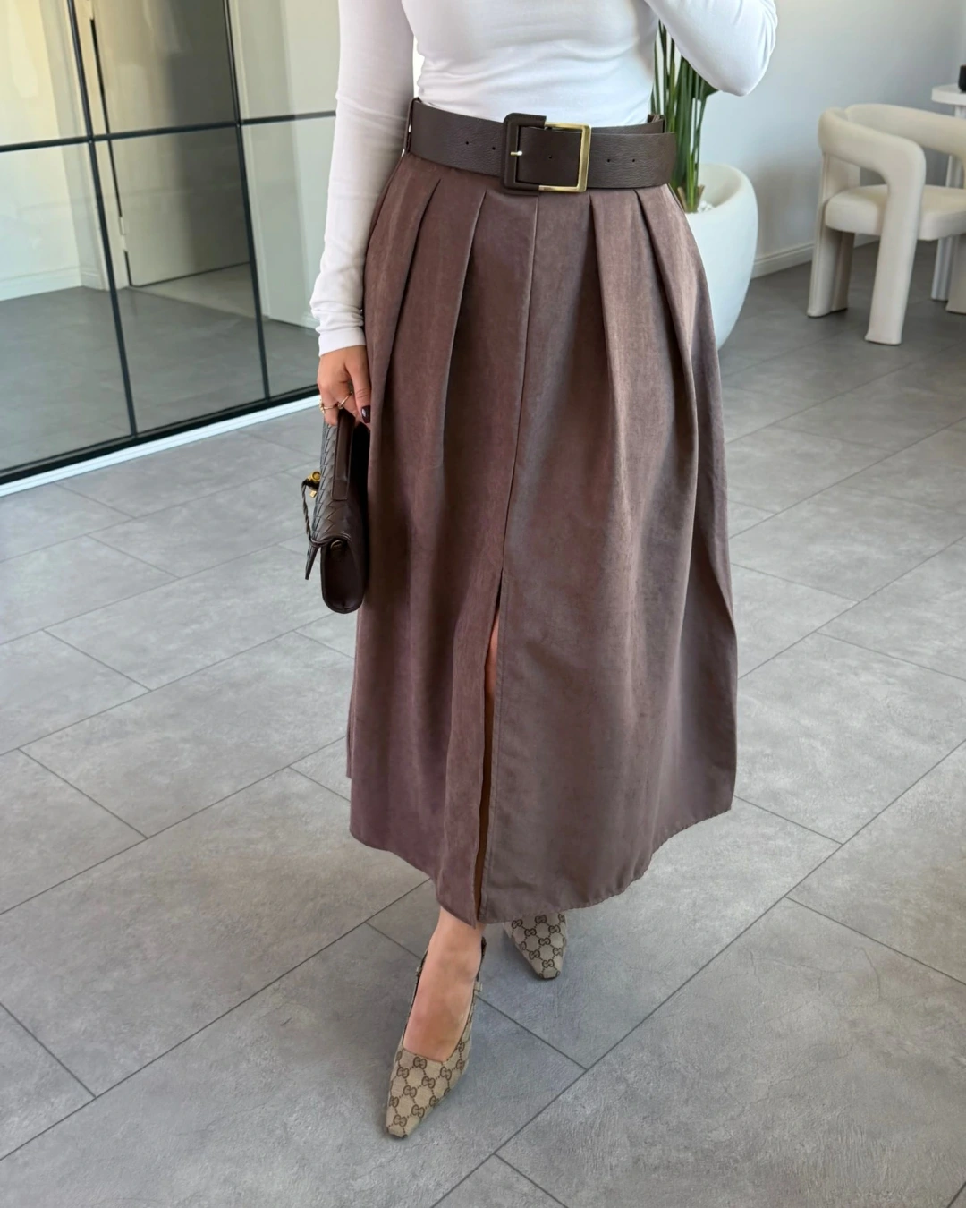 KAHVE KEMERLİ İNCE SÜET ETEK
