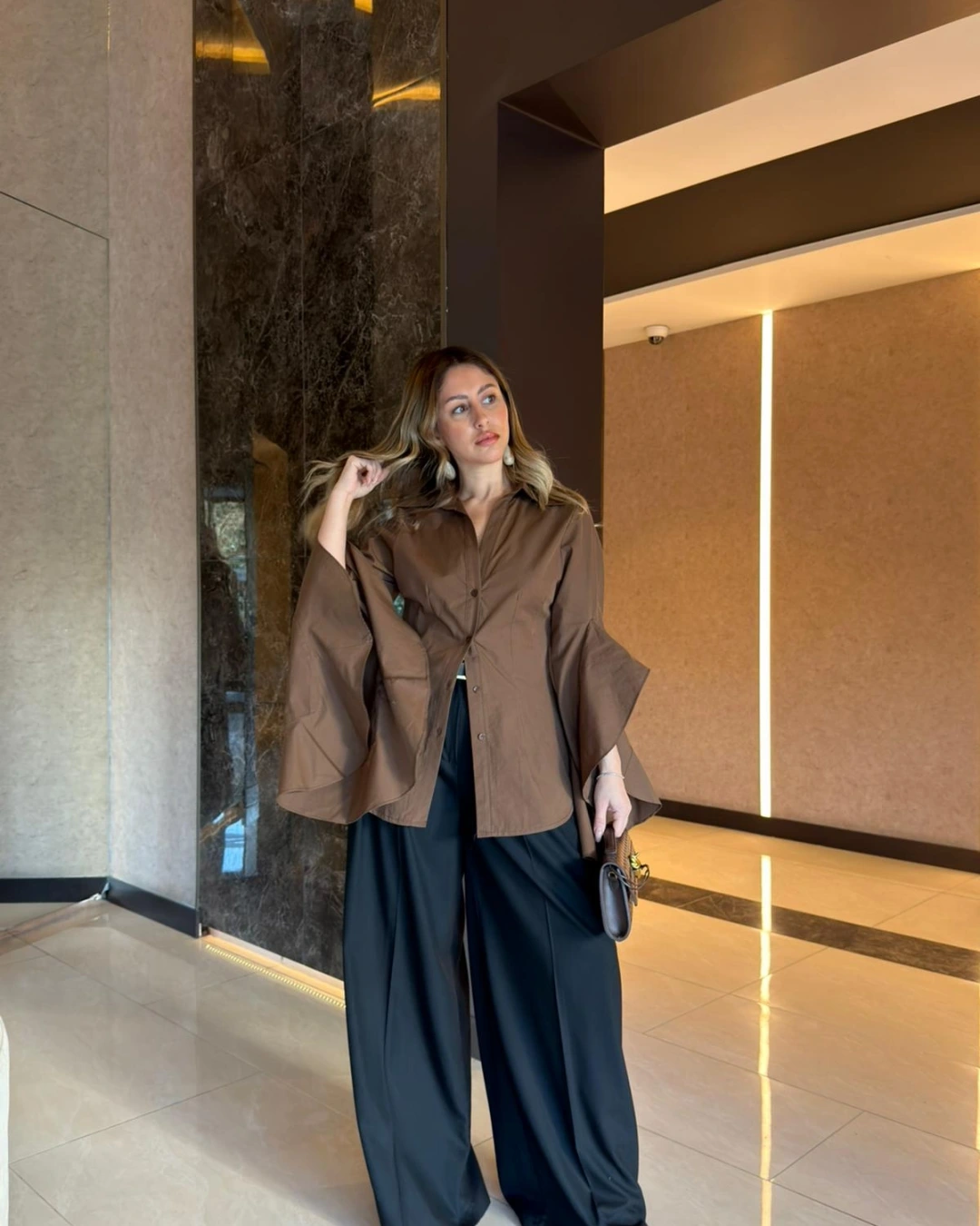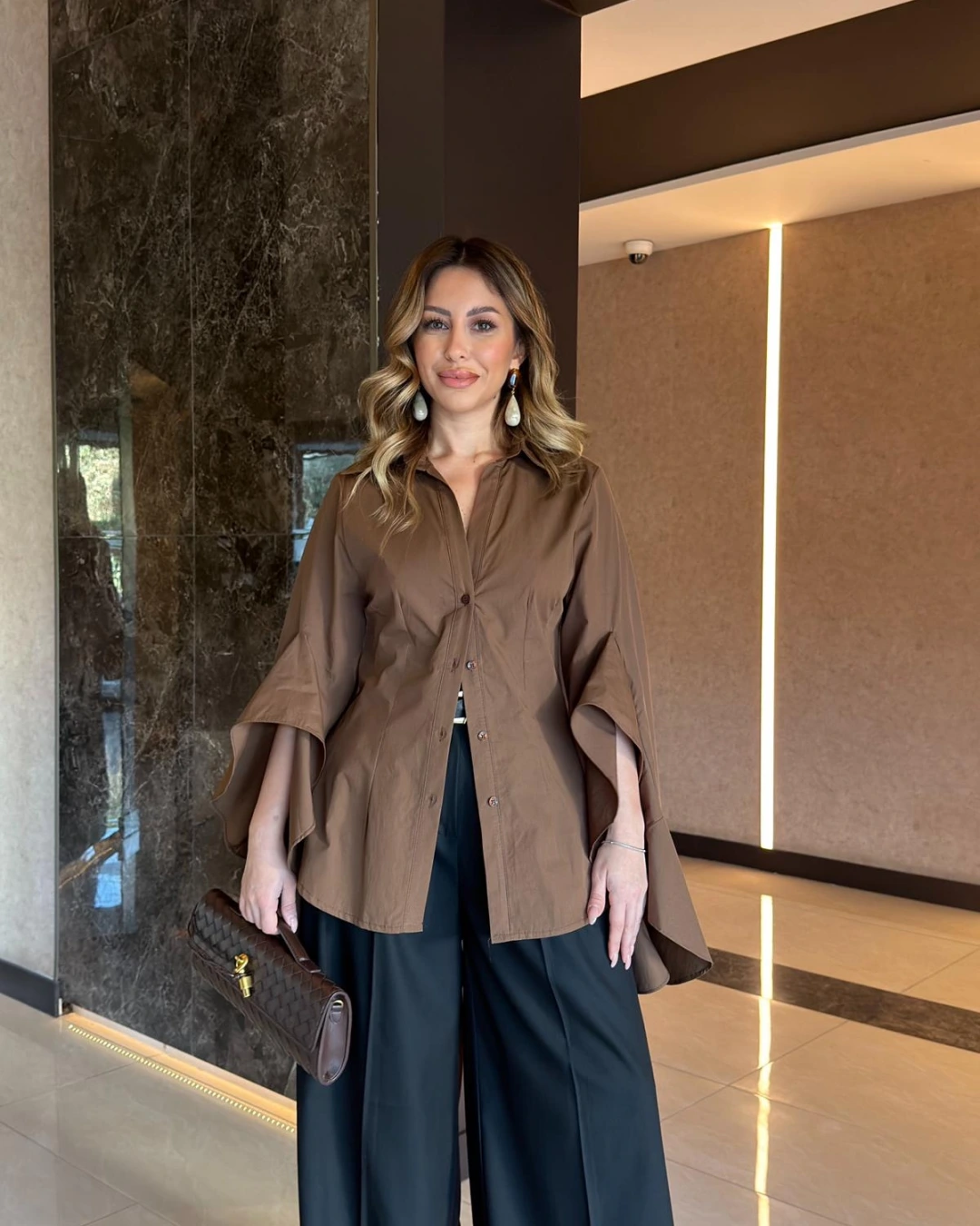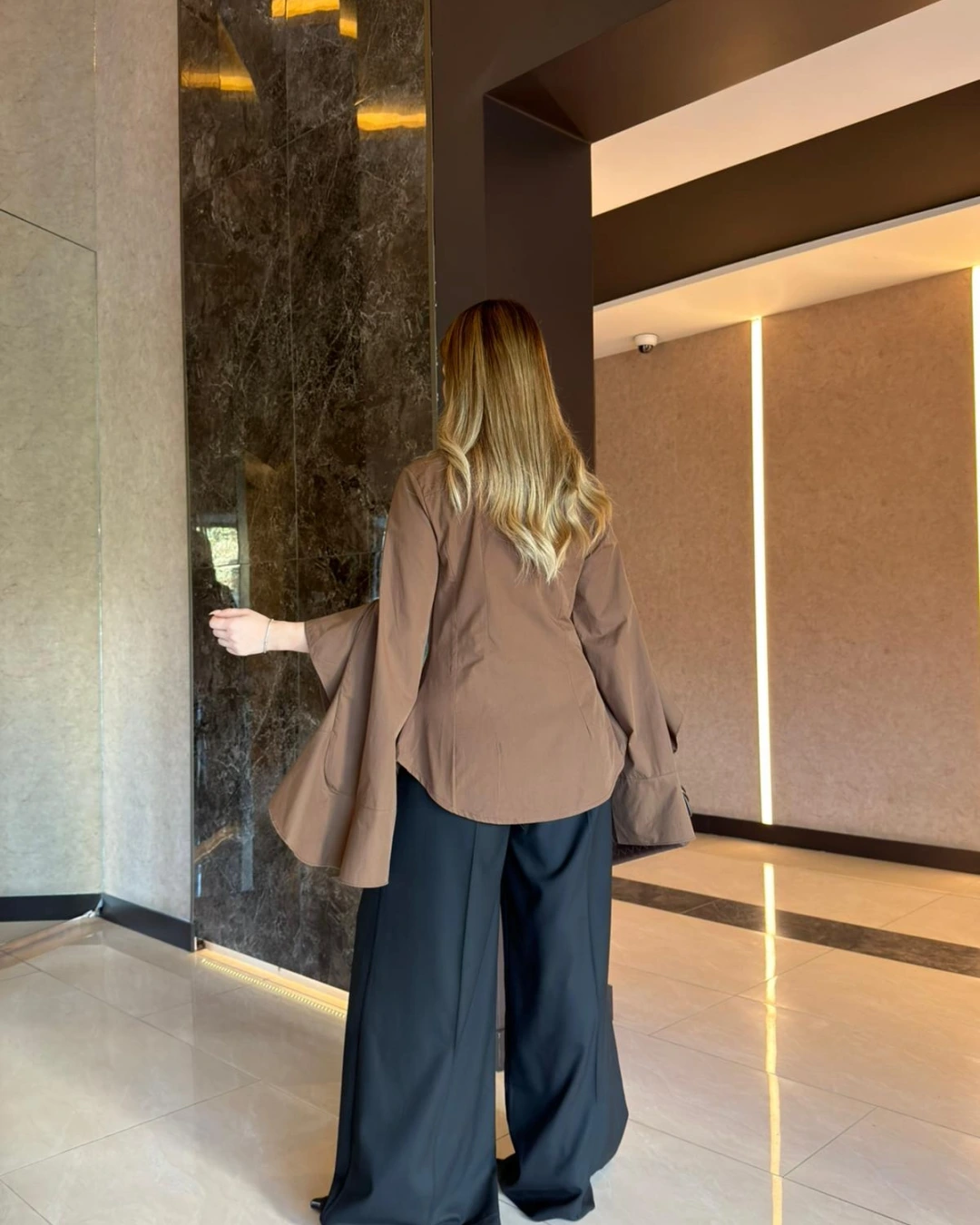 KAHVE KOLLARI VOLANLI GÖMLEK
