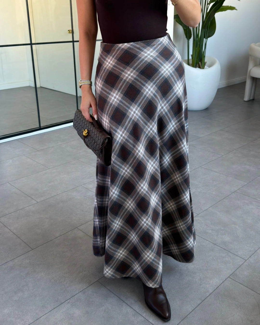 KAHVE KREM EKOSE DESEN ETEK