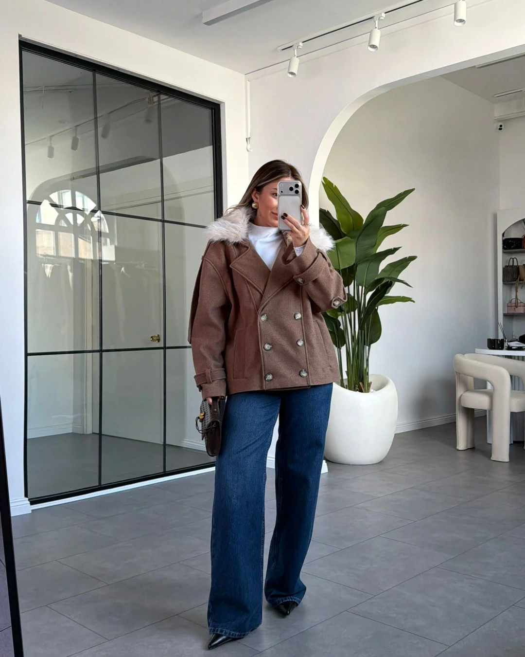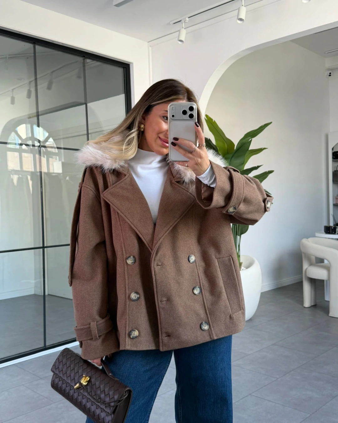KAHVE KÜRK YAKA KISA KAŞE KABAN