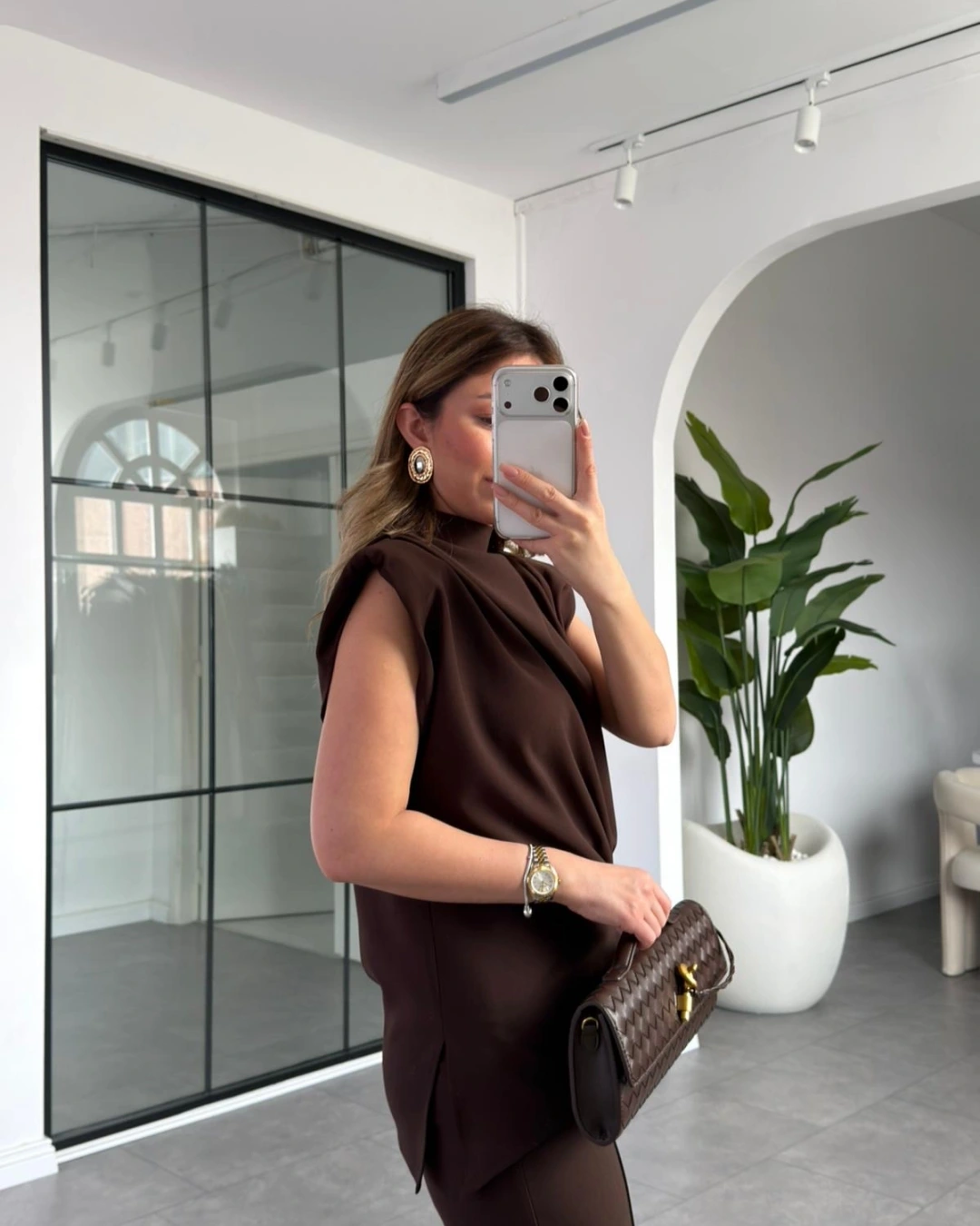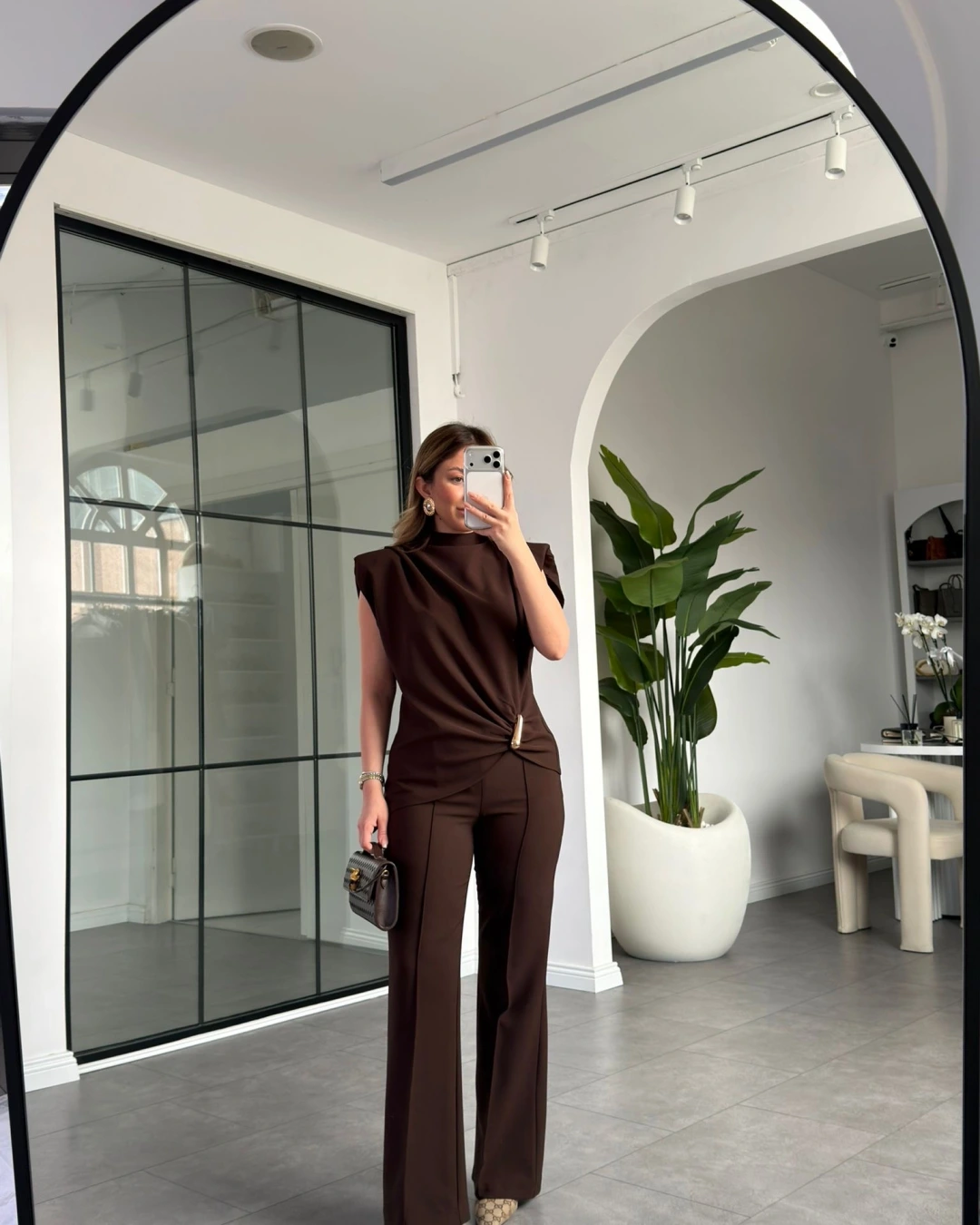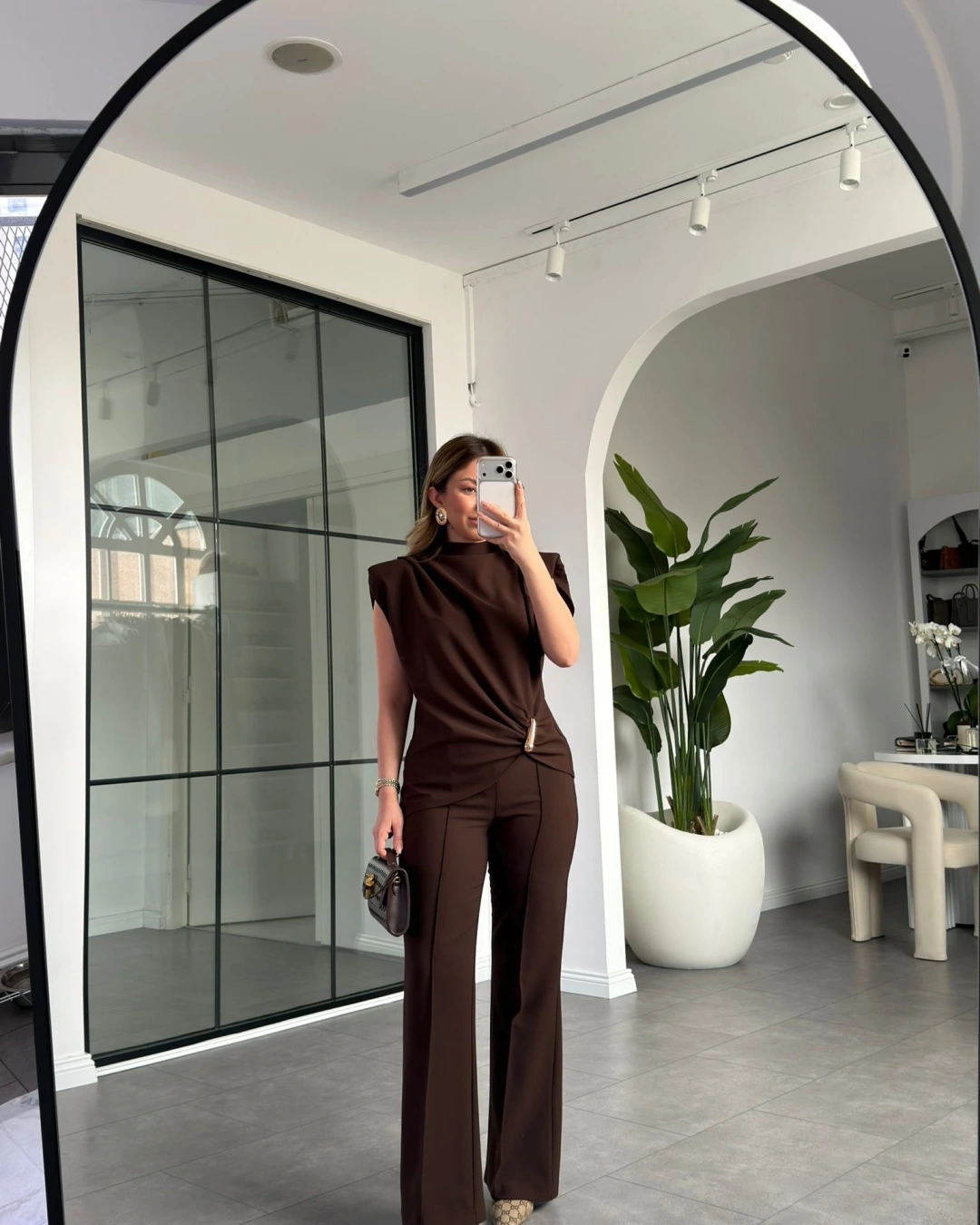KAHVE OMZU VATKALI BROŞLU TAKIM