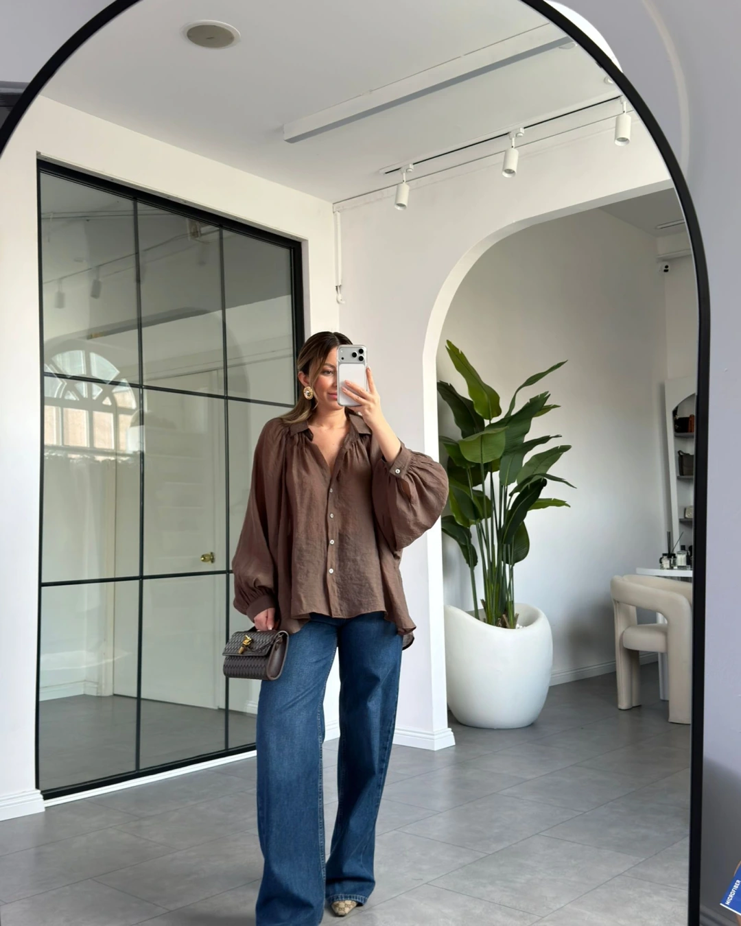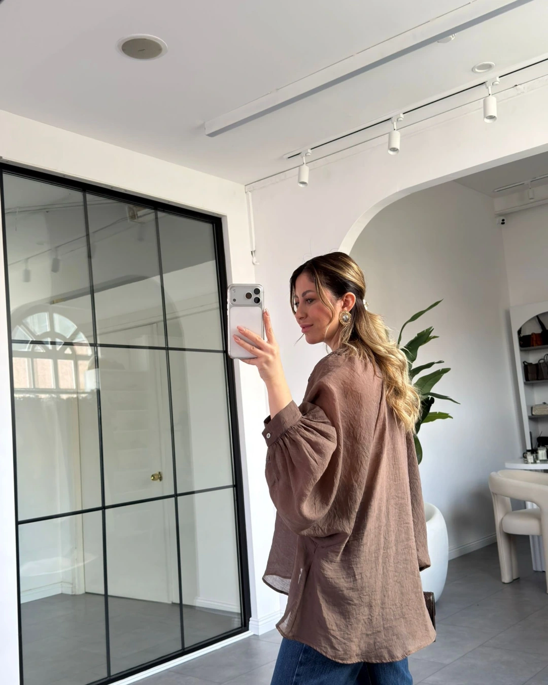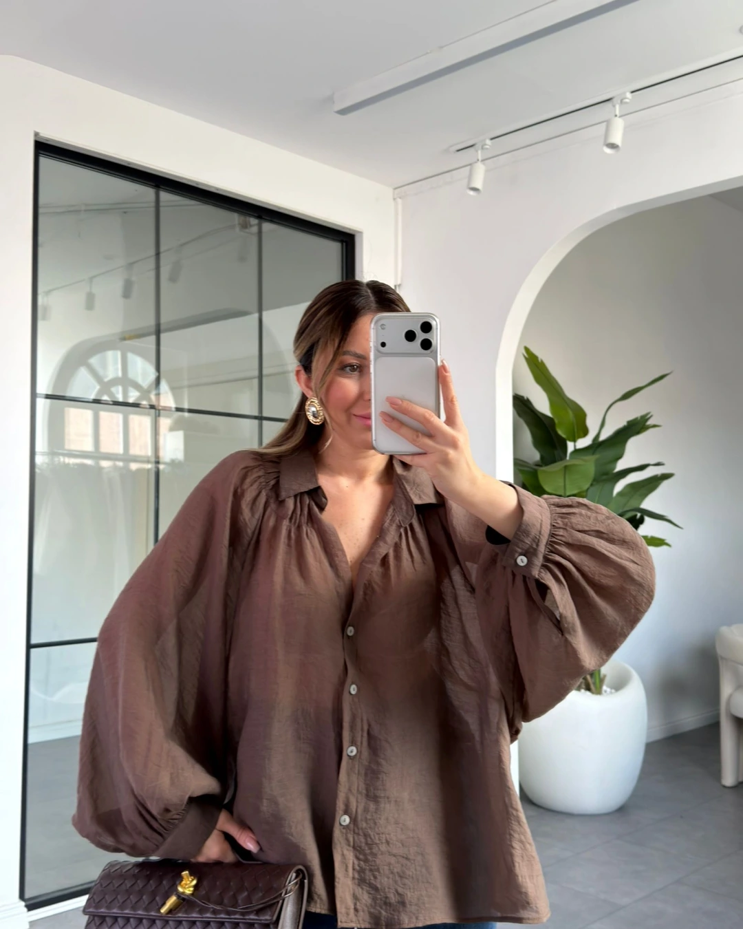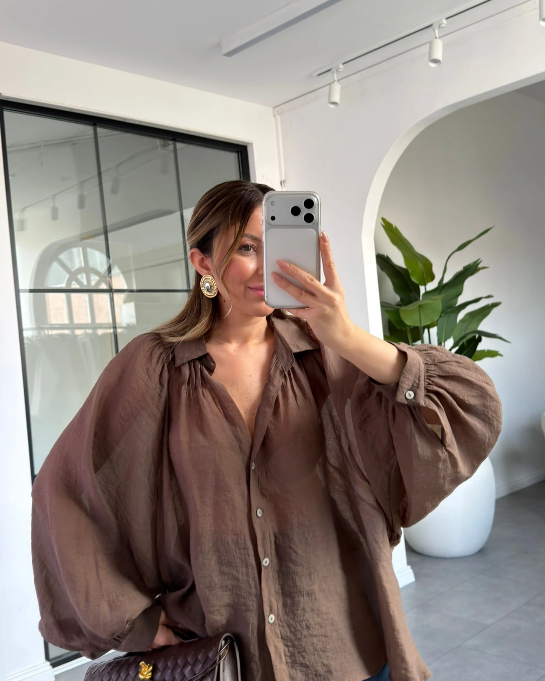 KAHVE OVERSİZE TRANSPARAN GÖMLEK