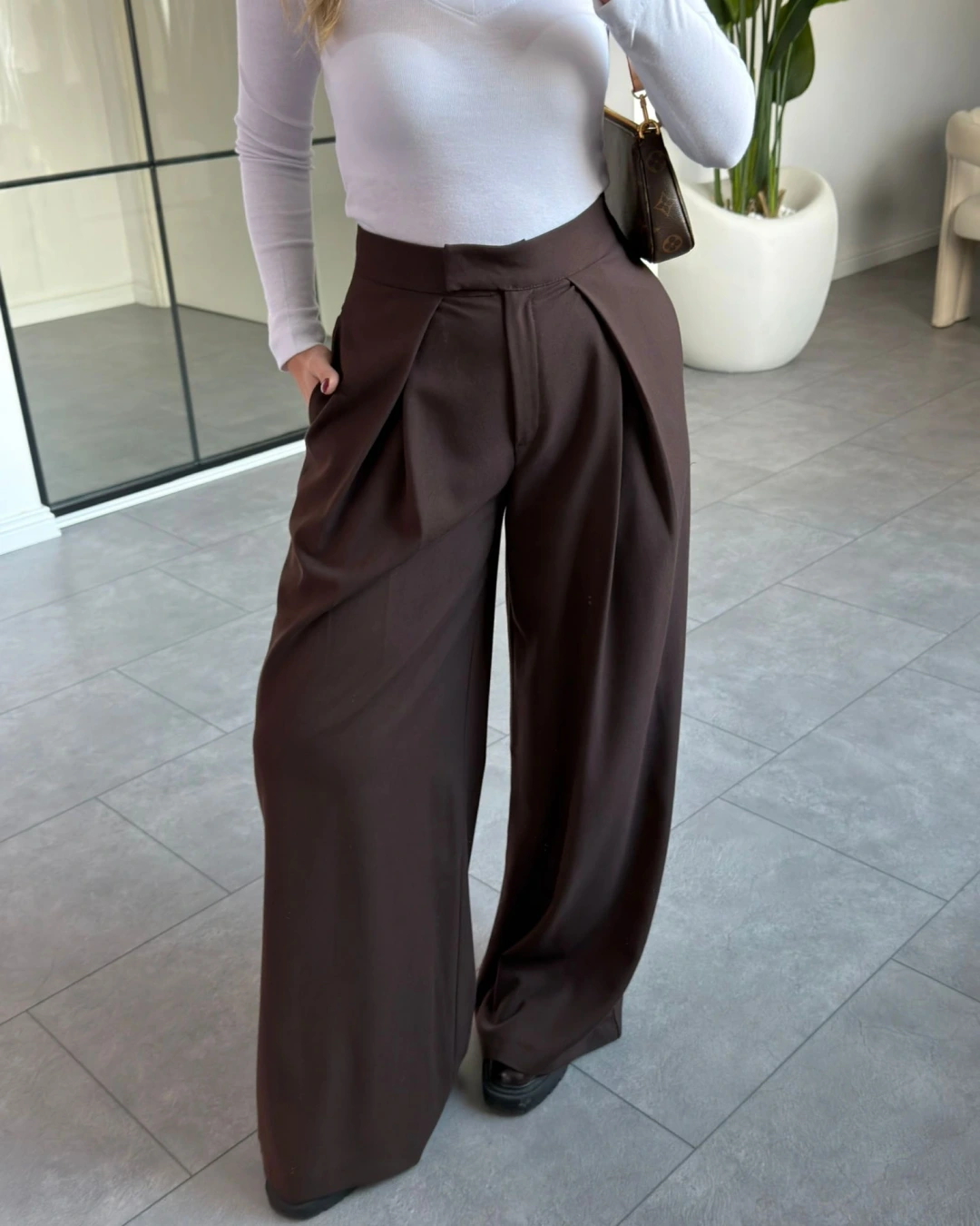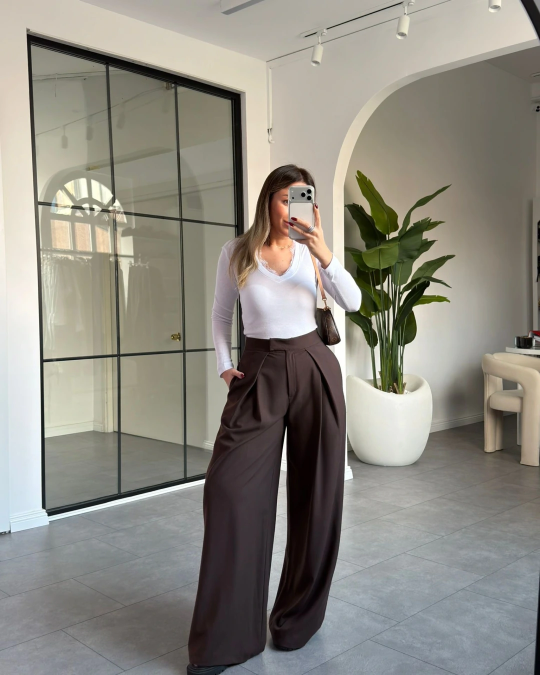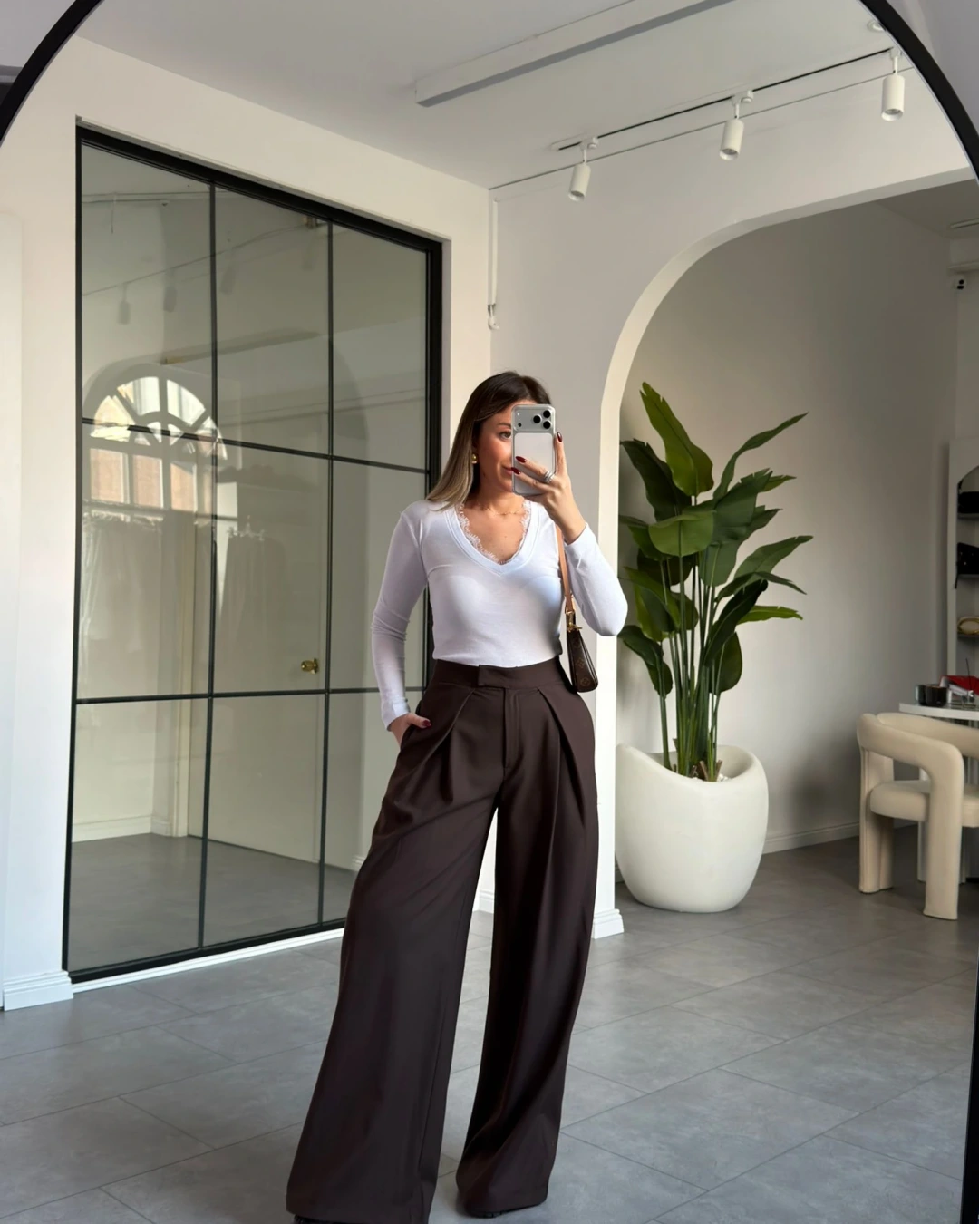 KAHVE PENSLİ DÖKÜMLÜ PALAZZO PANTOLON
