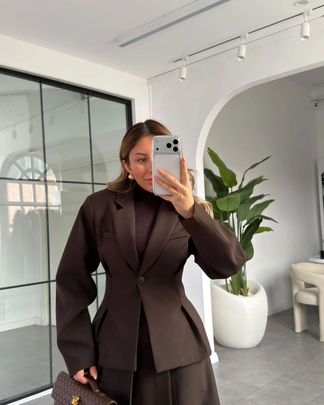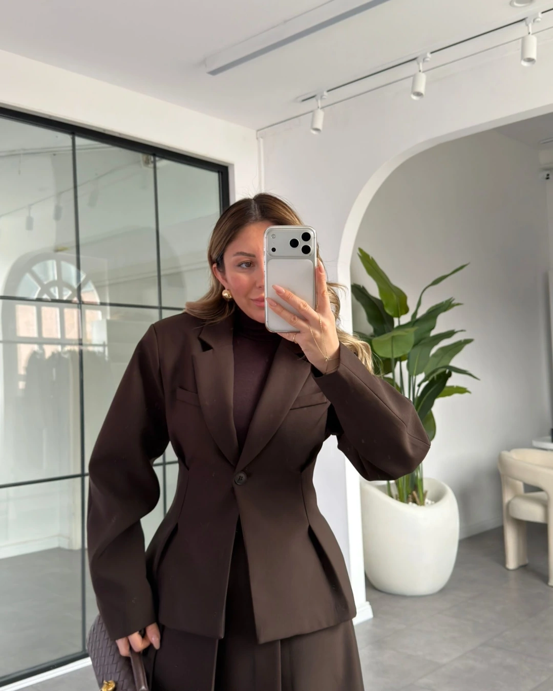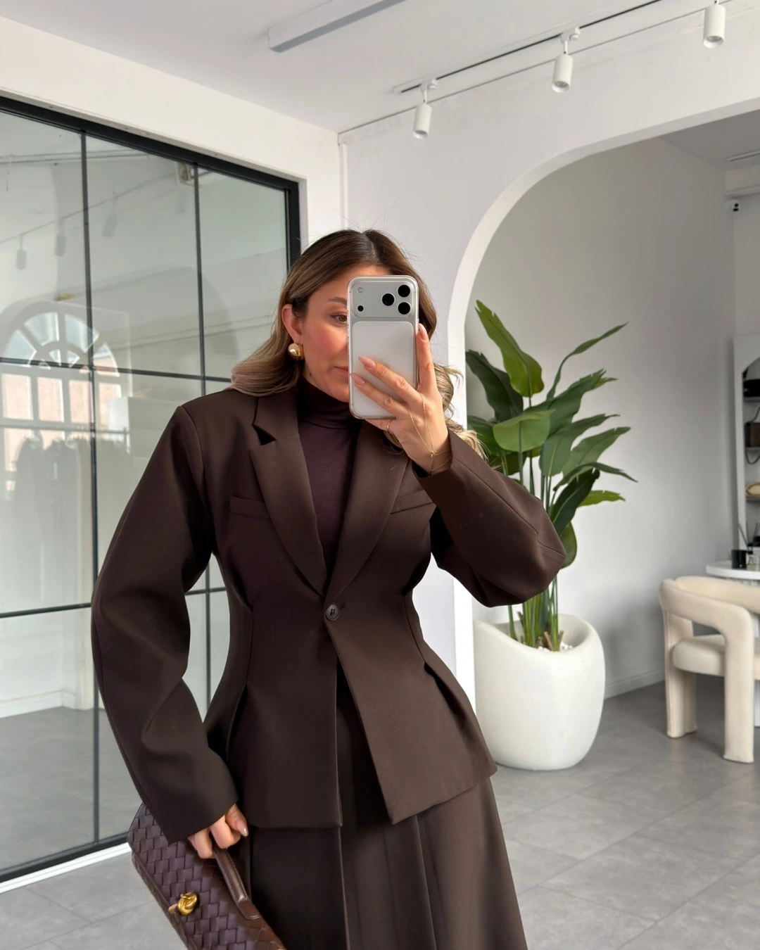 KAHVE PİLE DETAY ETEK CEKET TAKIM