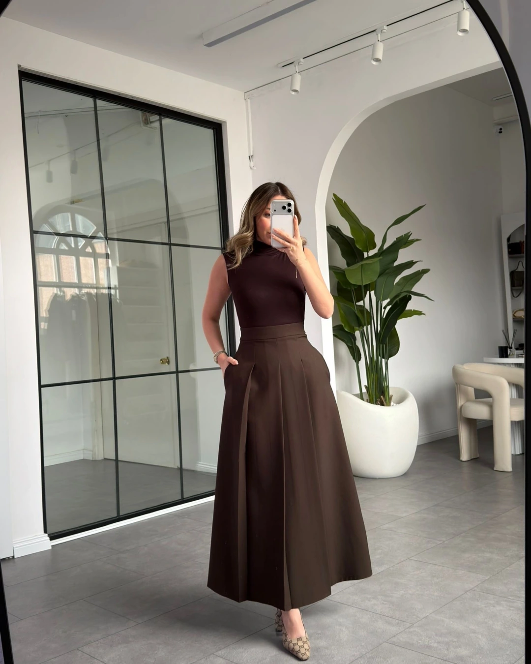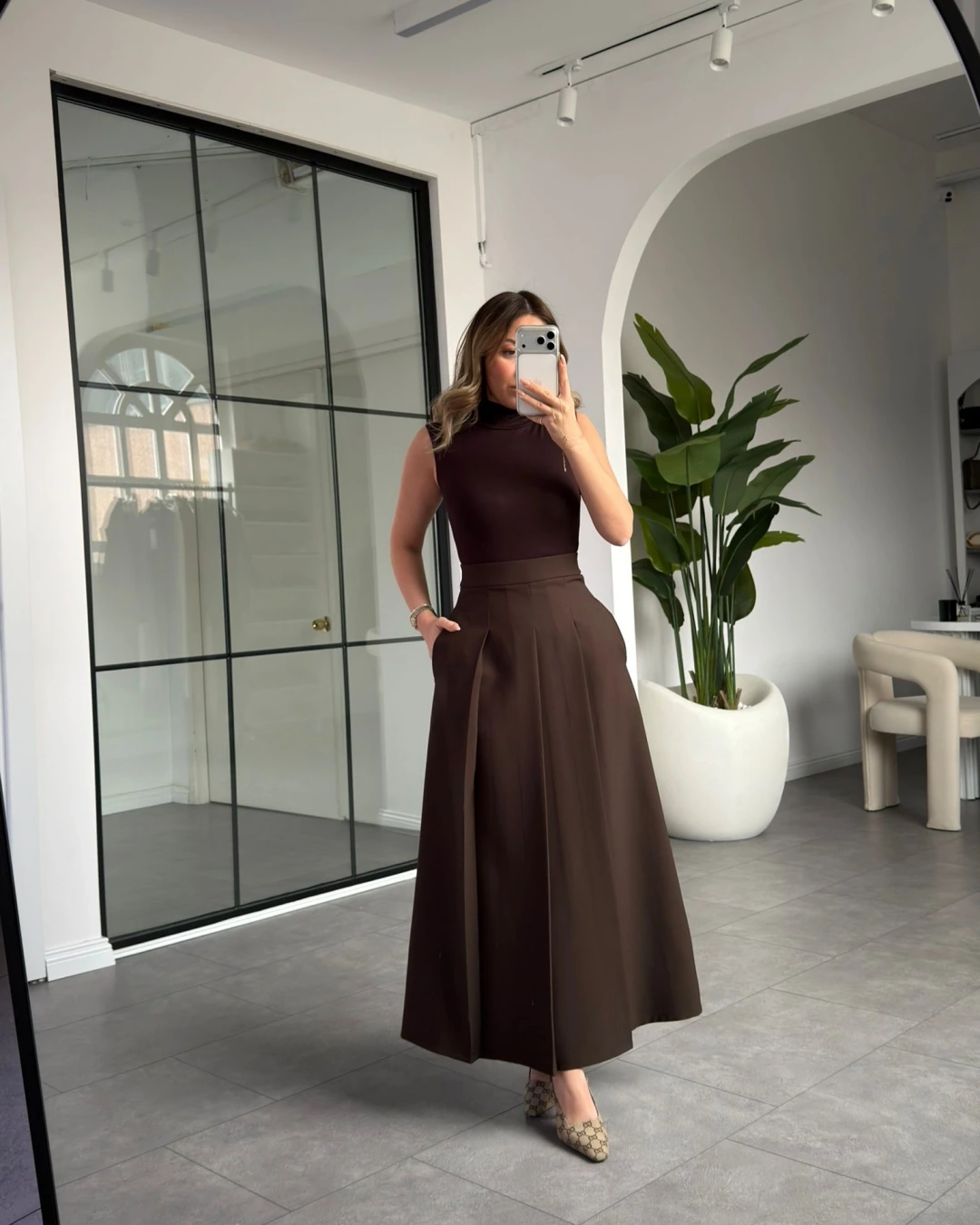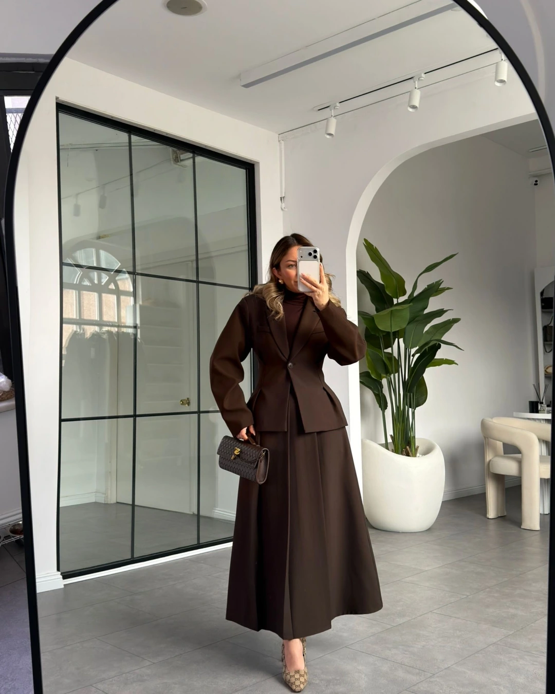 KAHVE PİLE DETAY ETEK CEKET TAKIM