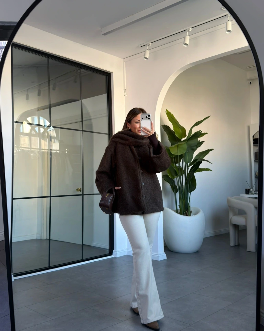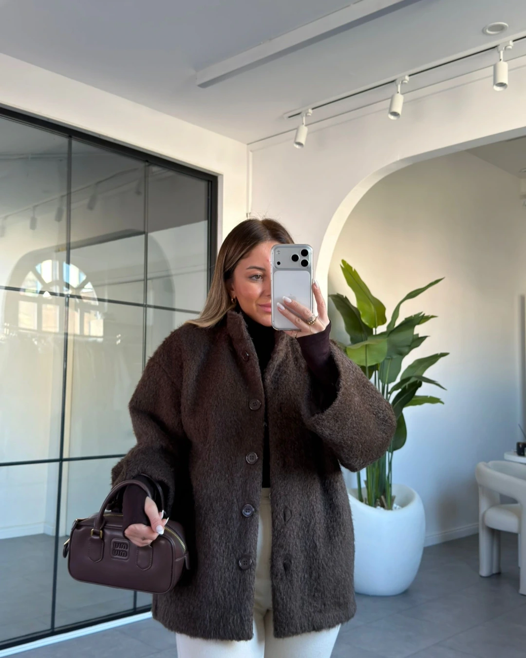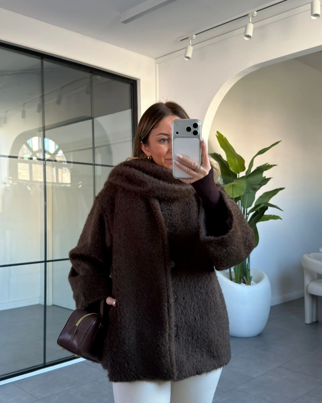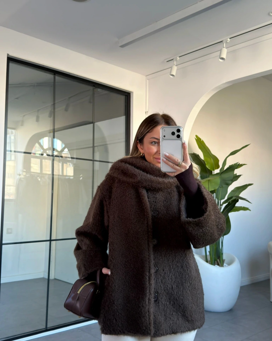 KAHVE ŞAL AKSESUARLI SAKALLI CEKET
