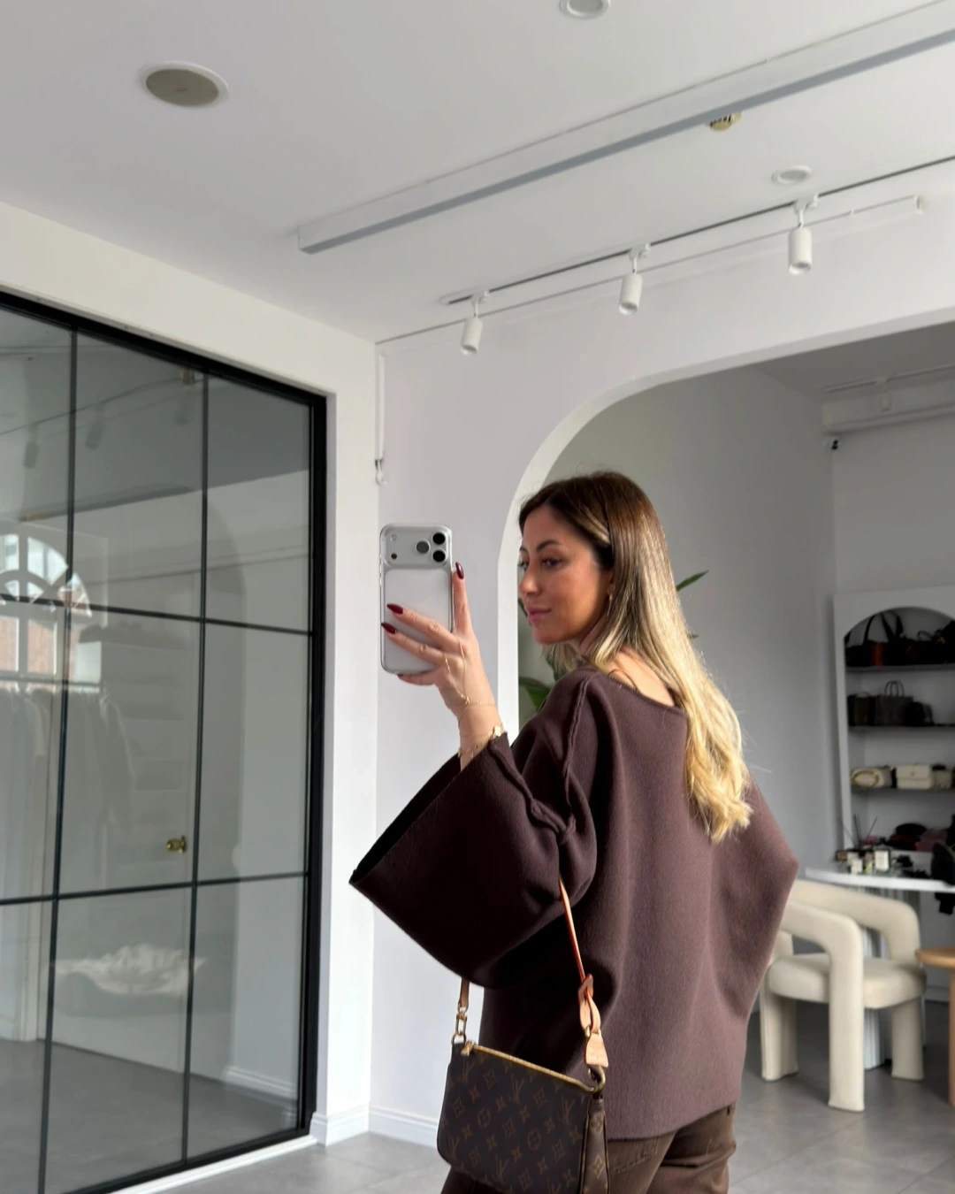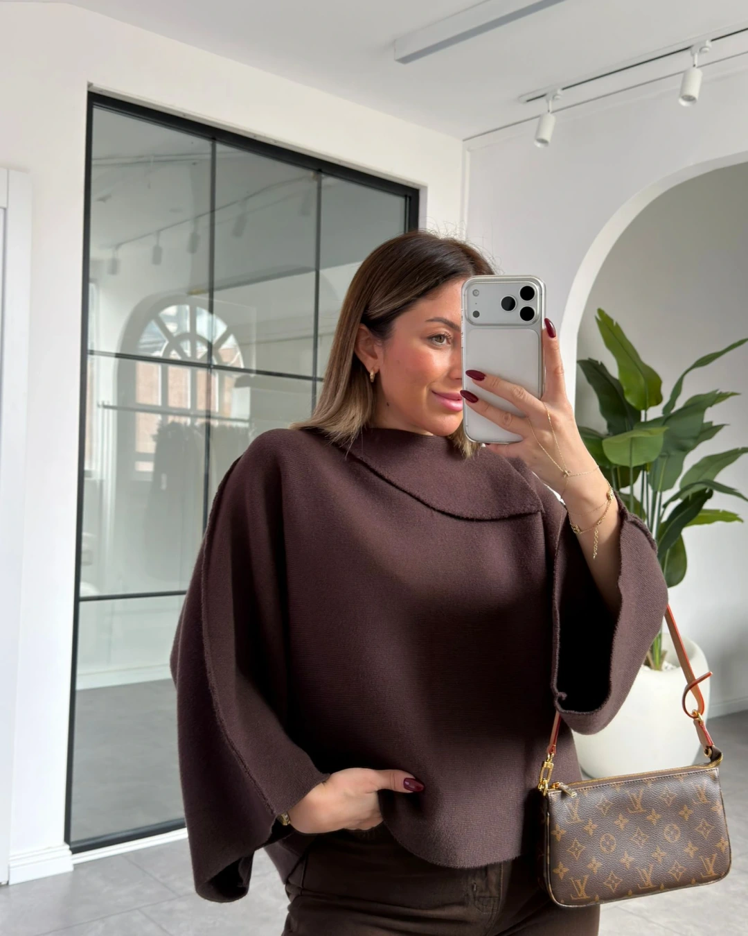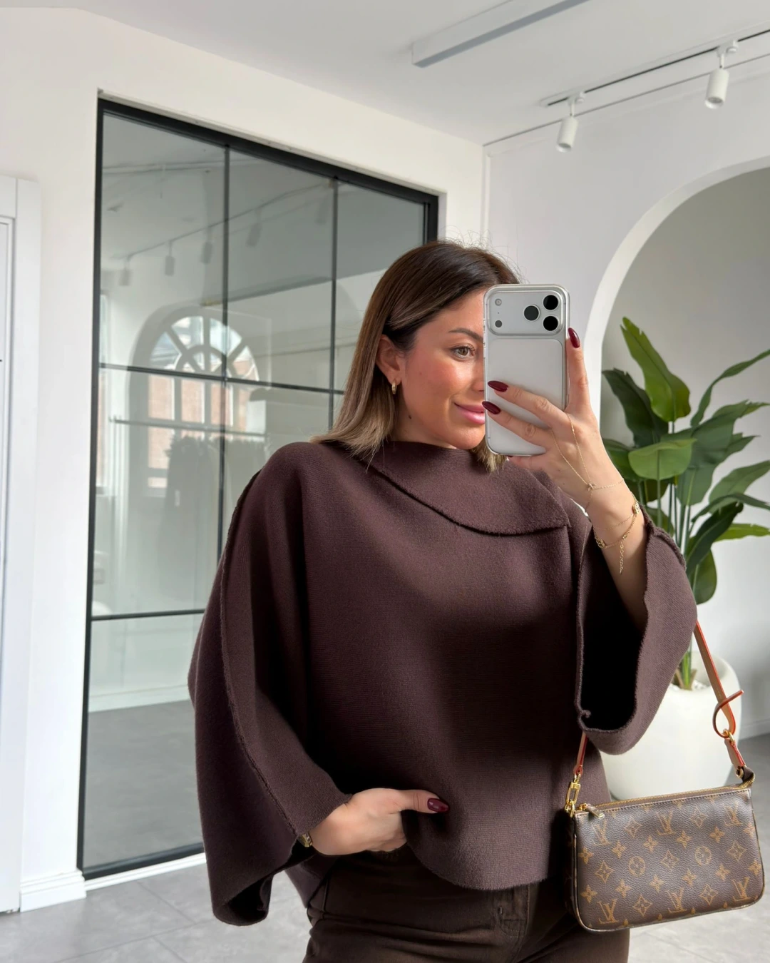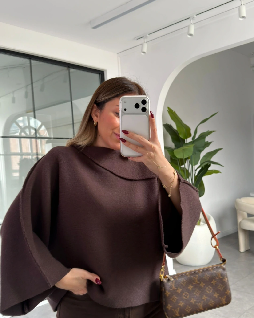 KAHVE ŞAL YAKA YARASA KOL TRİKO KAZAK