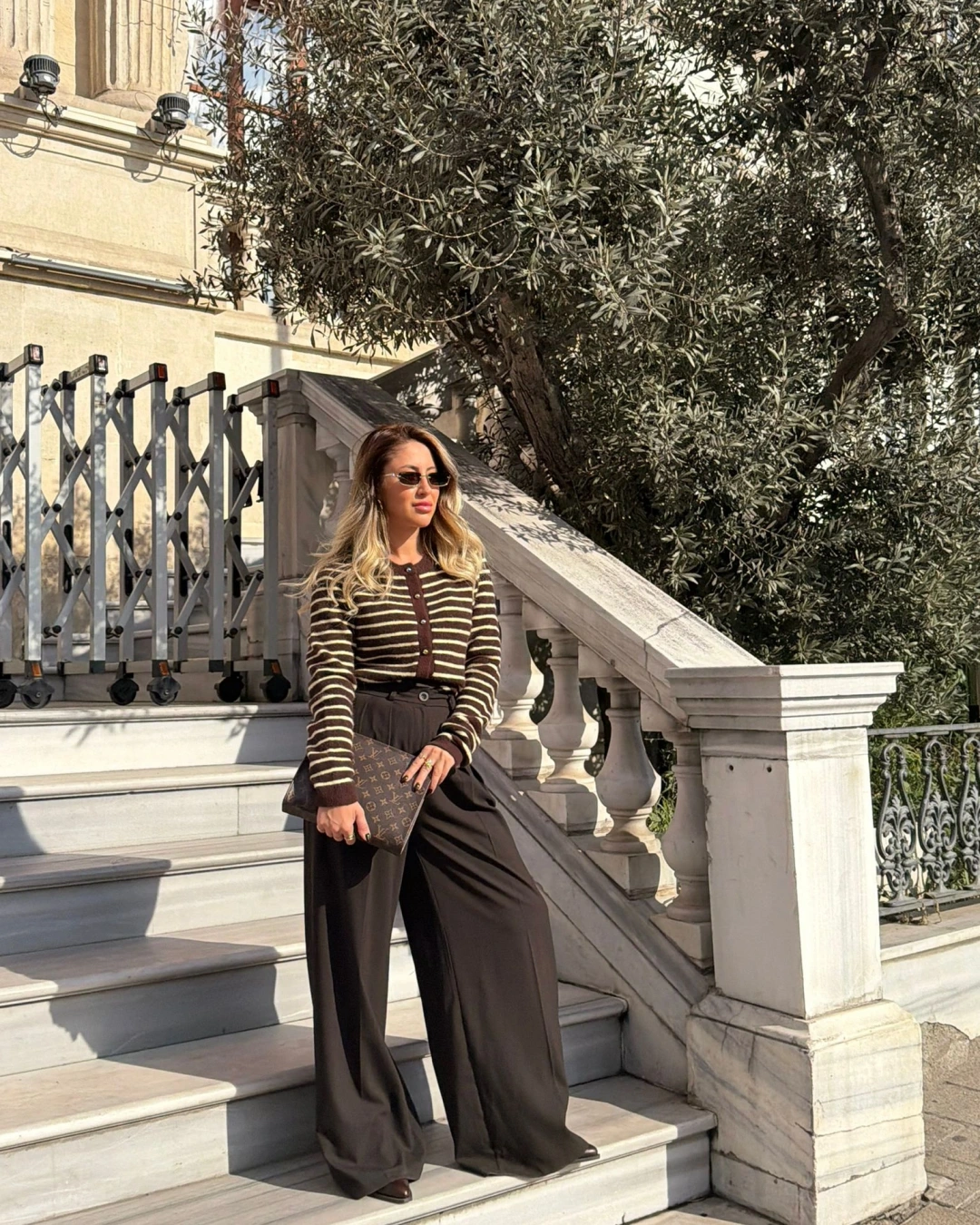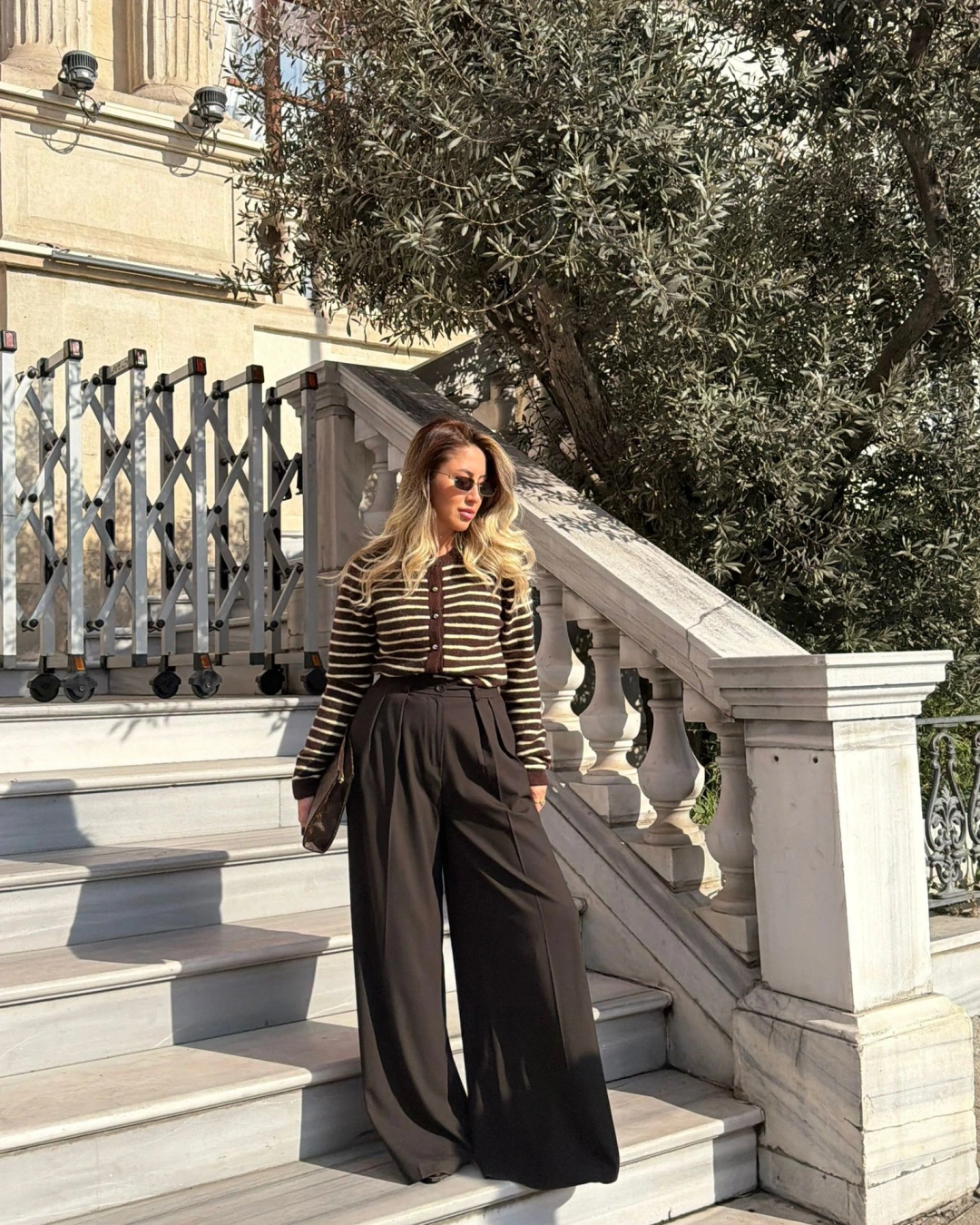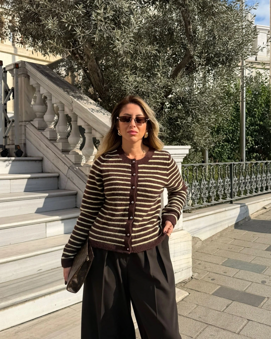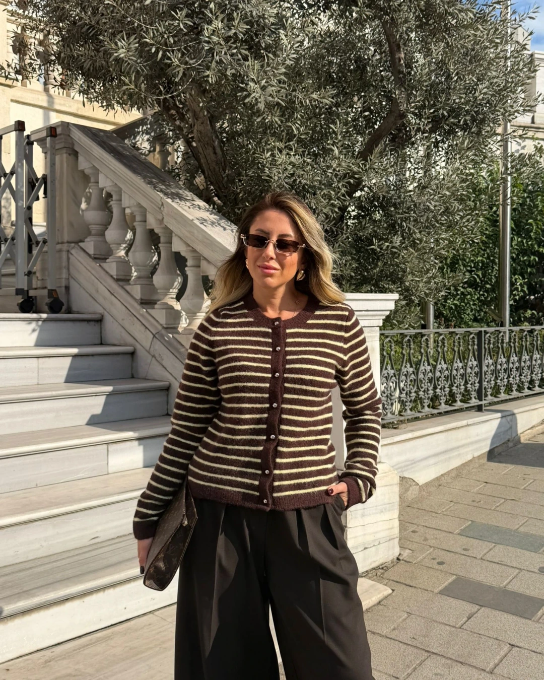 KAHVE SARI ÇİZGİLİ TRİKO HIRKA
