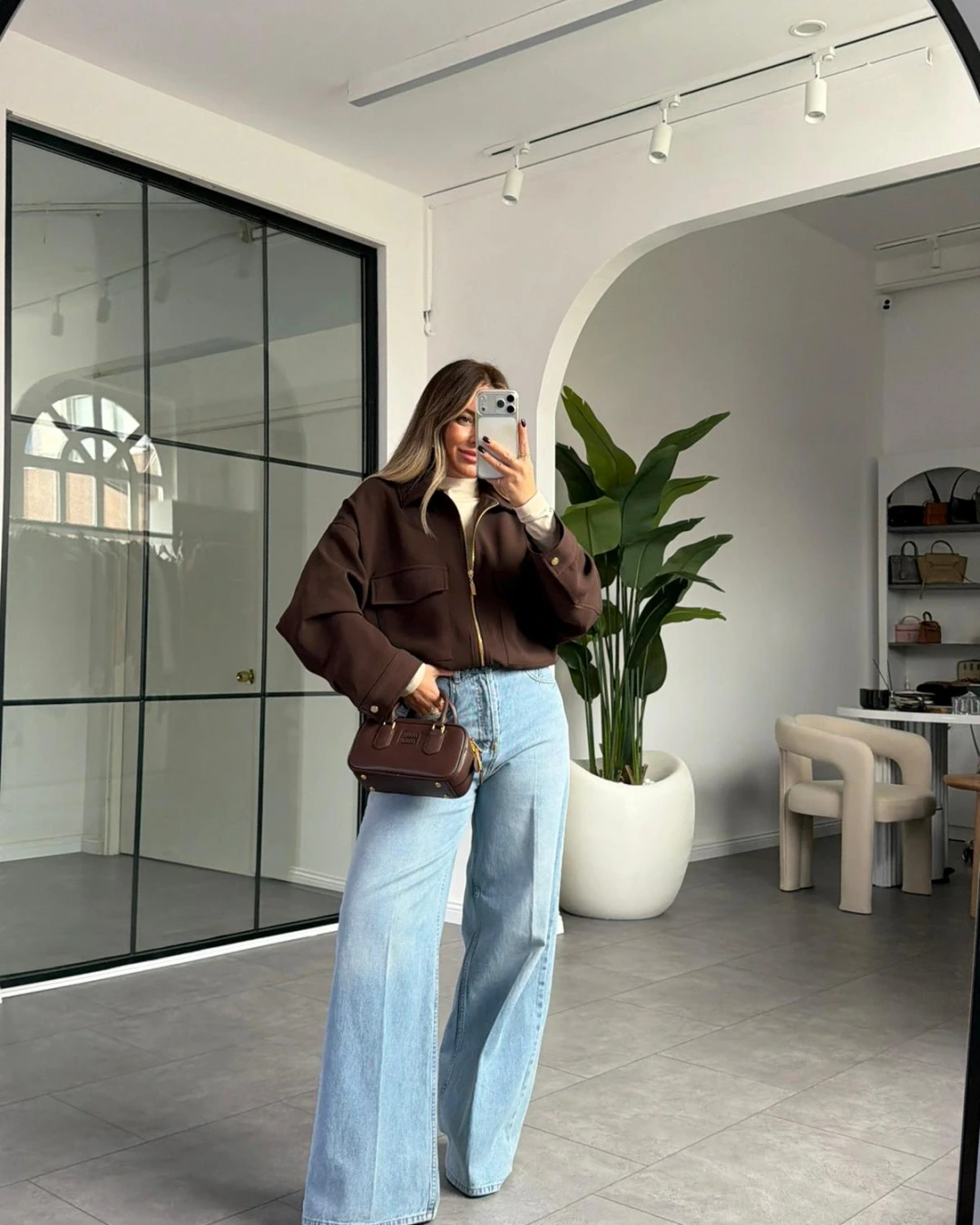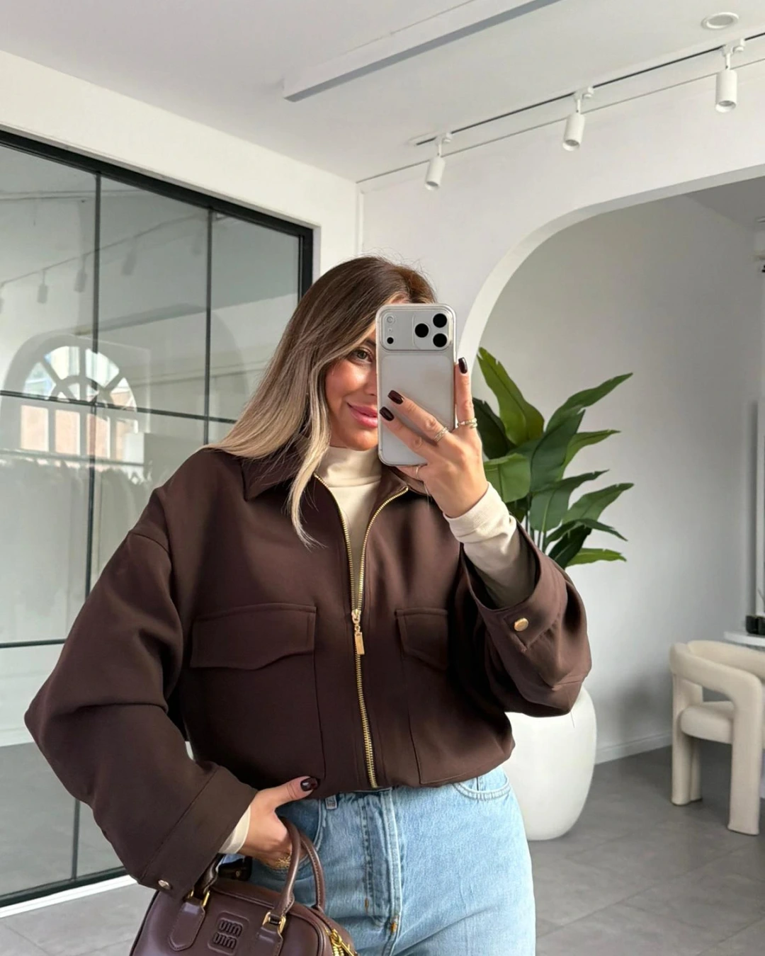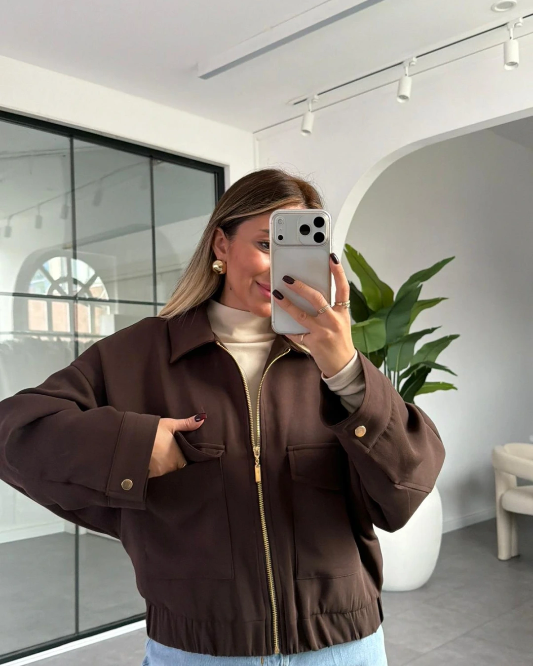 KAHVE TORBA CEPLİ BOMBER CEKET