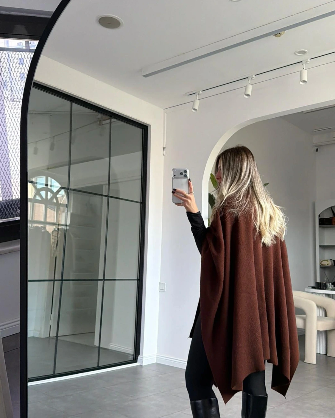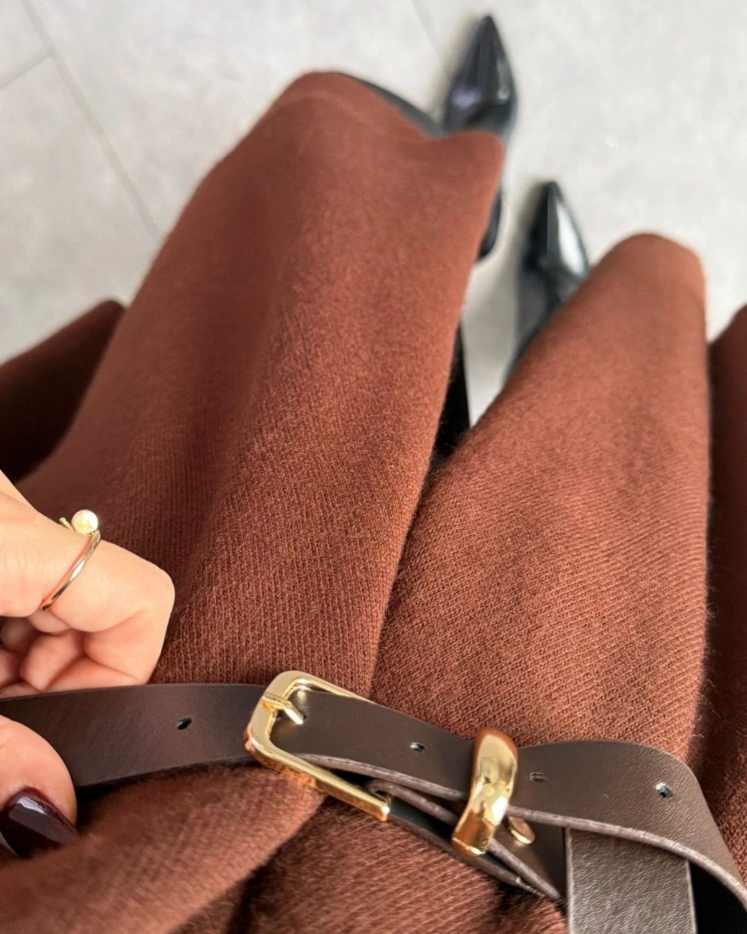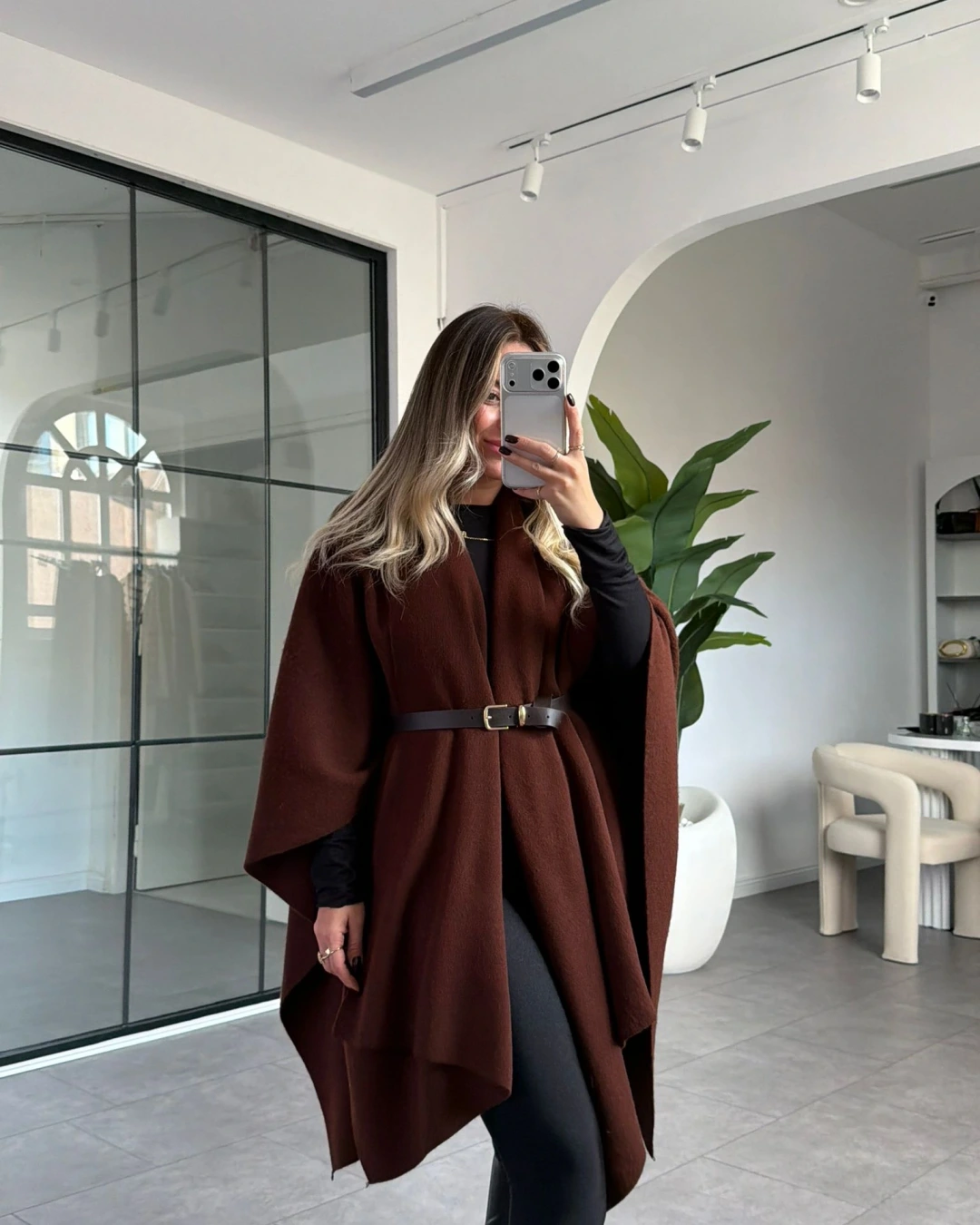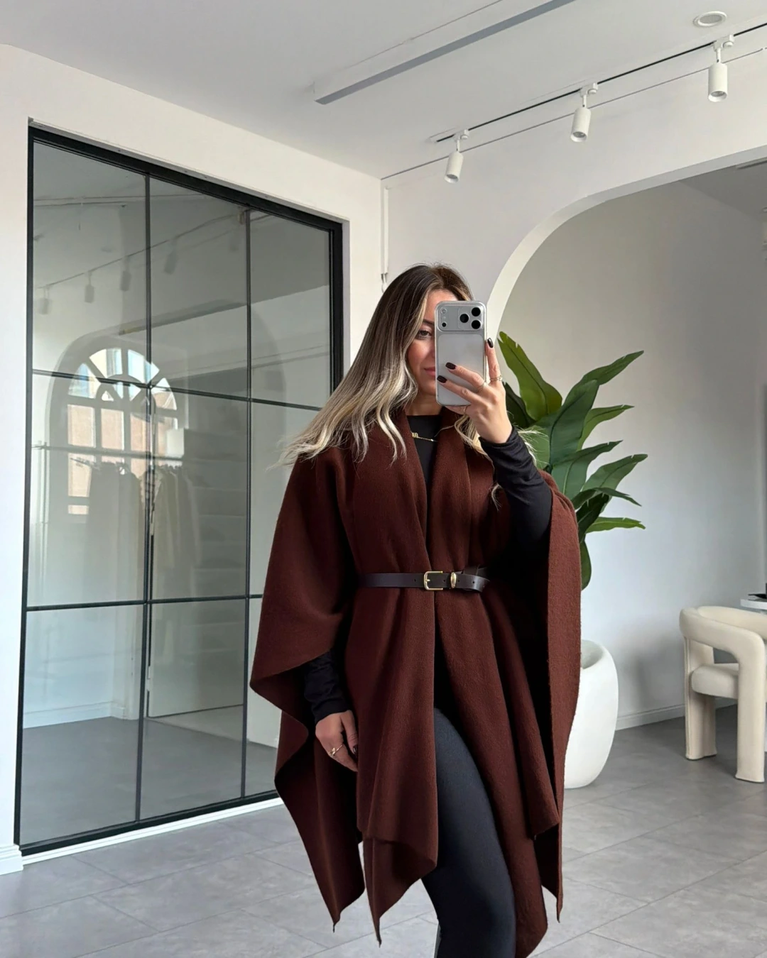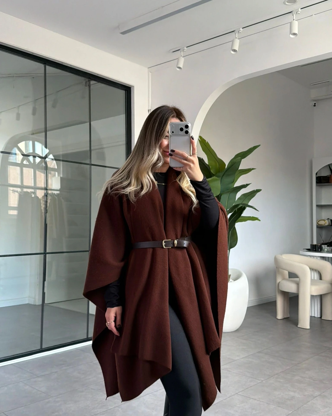 KAHVE TRİKO KEMERLİ ŞAL PANÇO