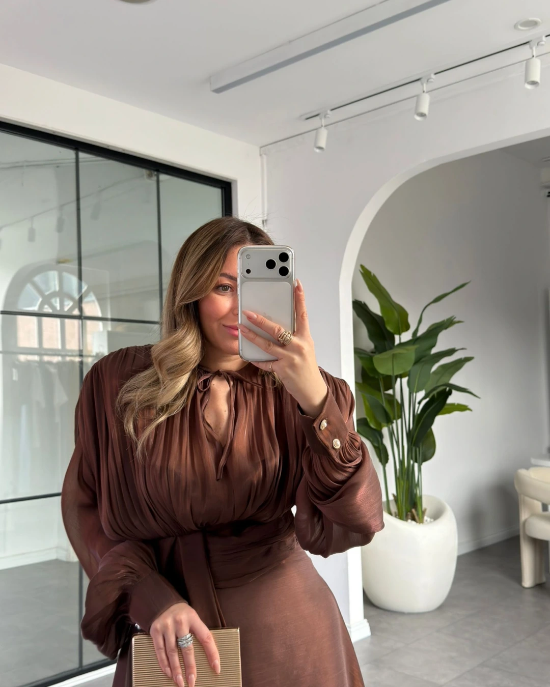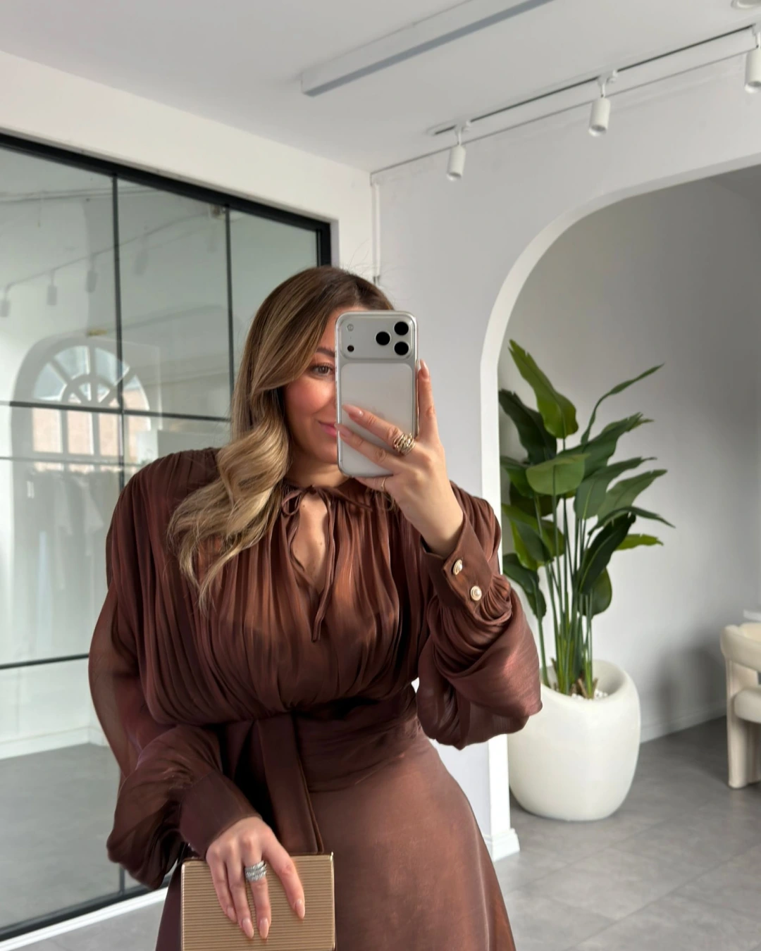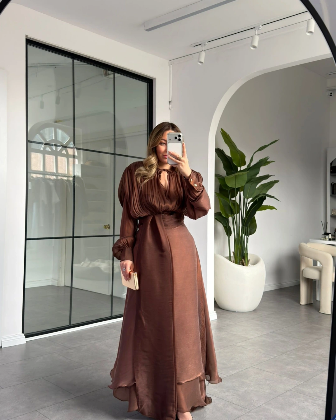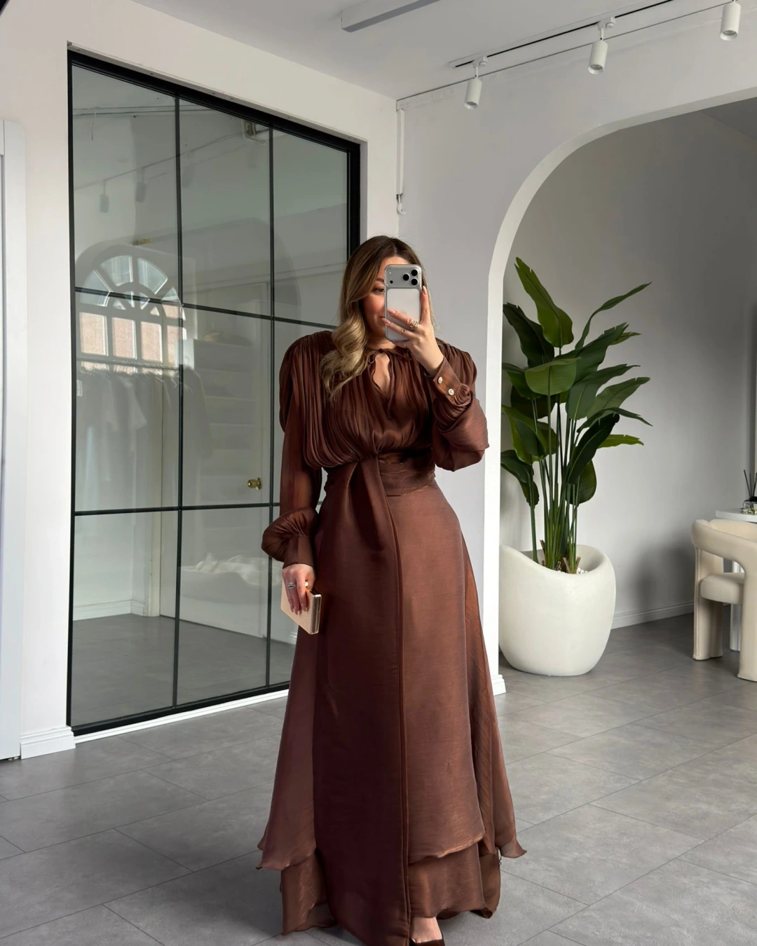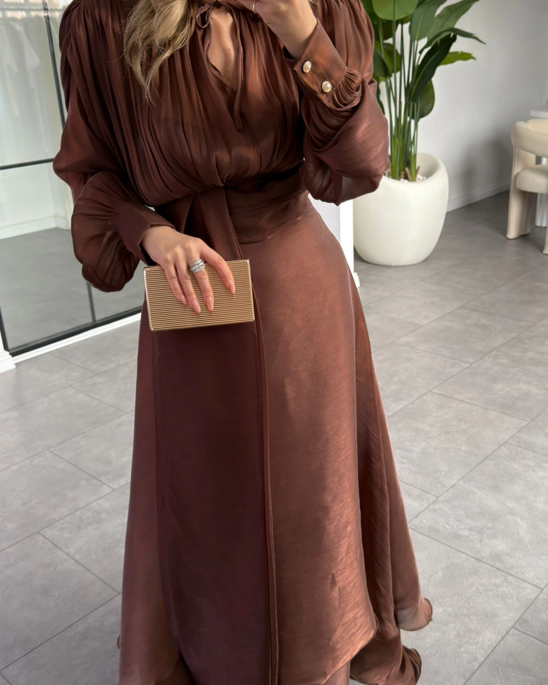 KAHVE VATKALI DRAPELİ UZUN EBİSE 1074