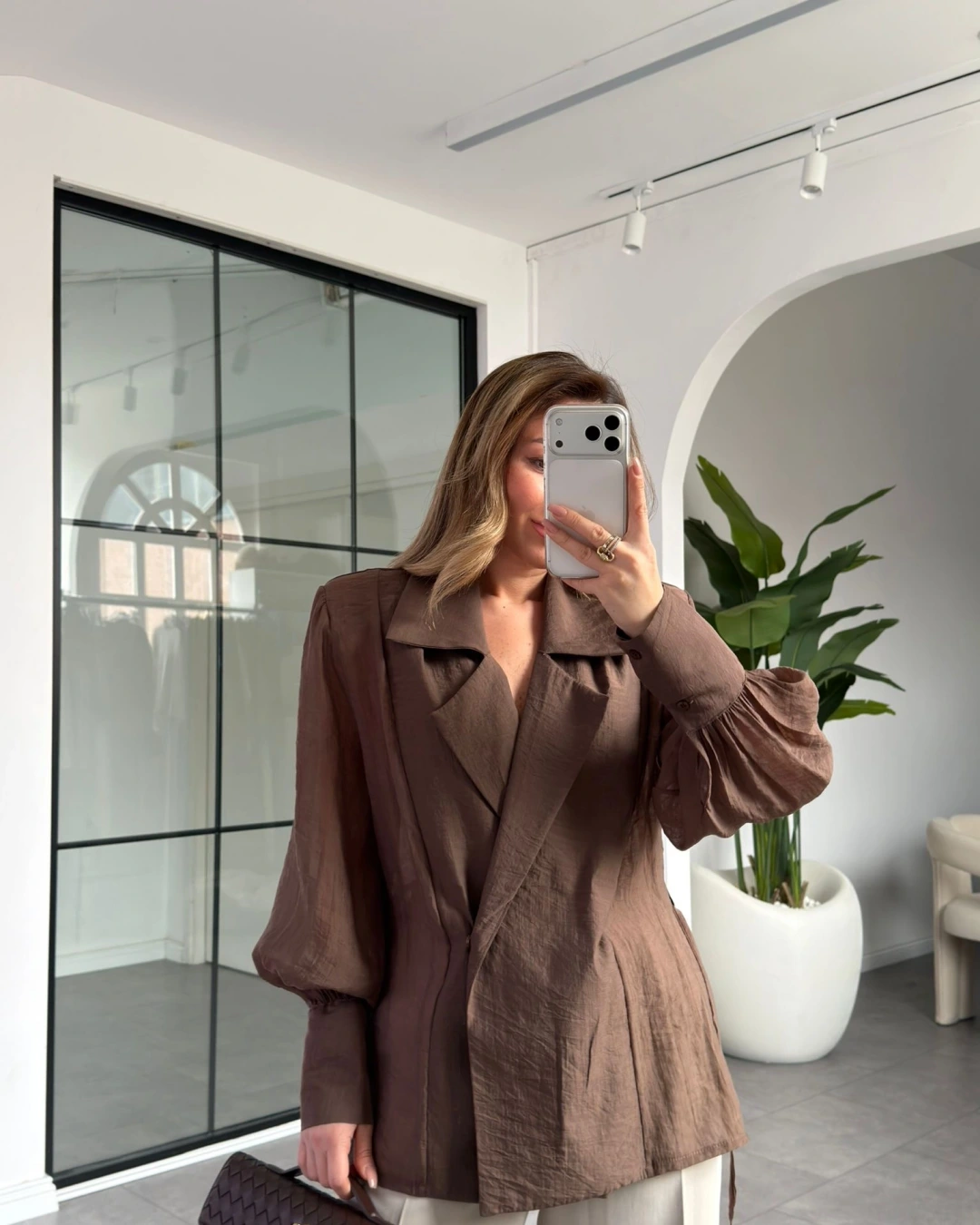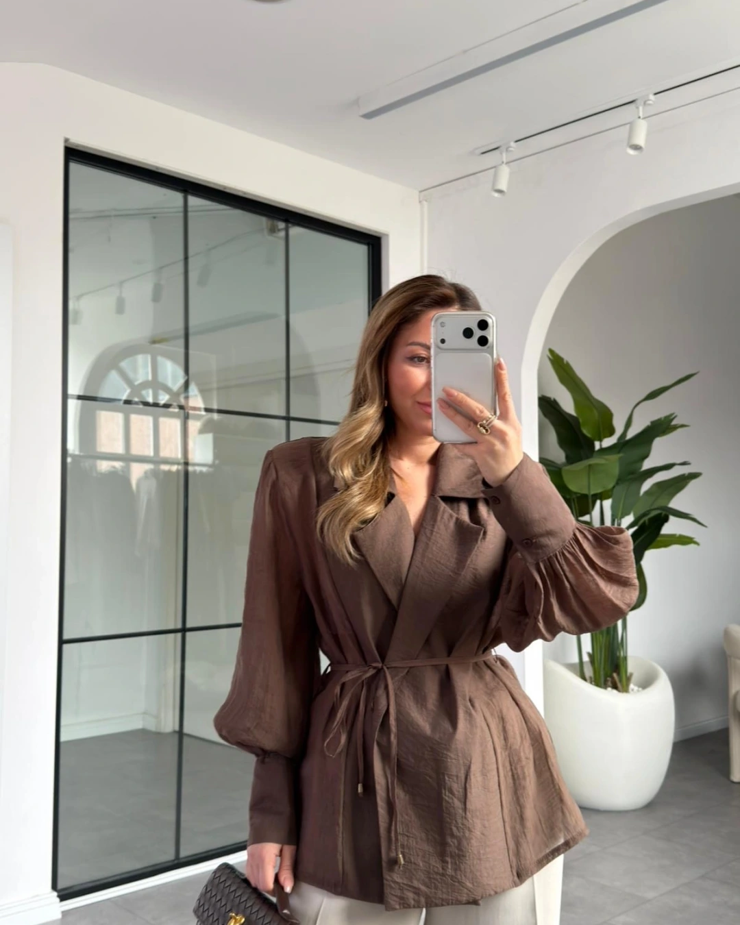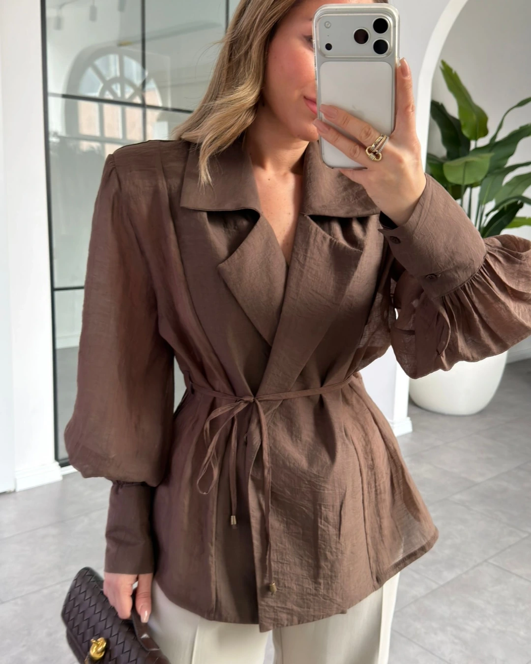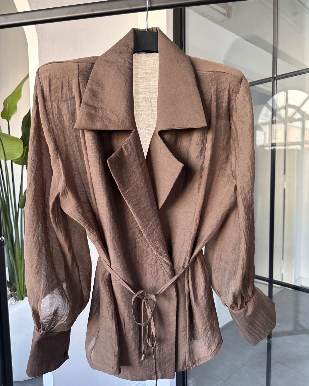 KAHVE VATKALI KİMONO GÖMLEK 5029