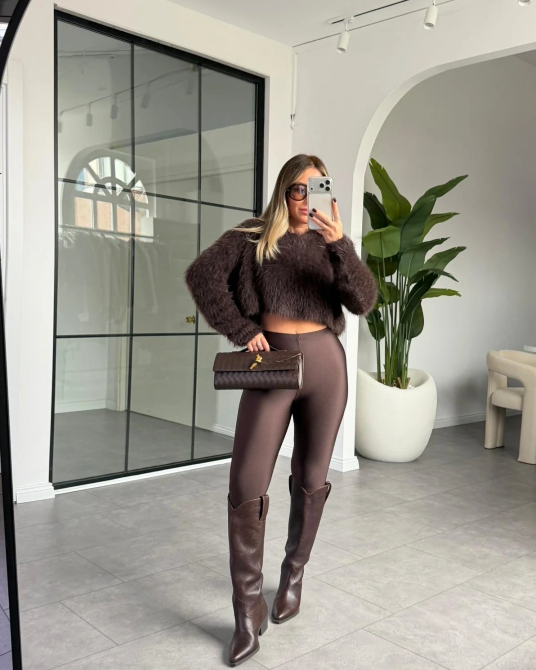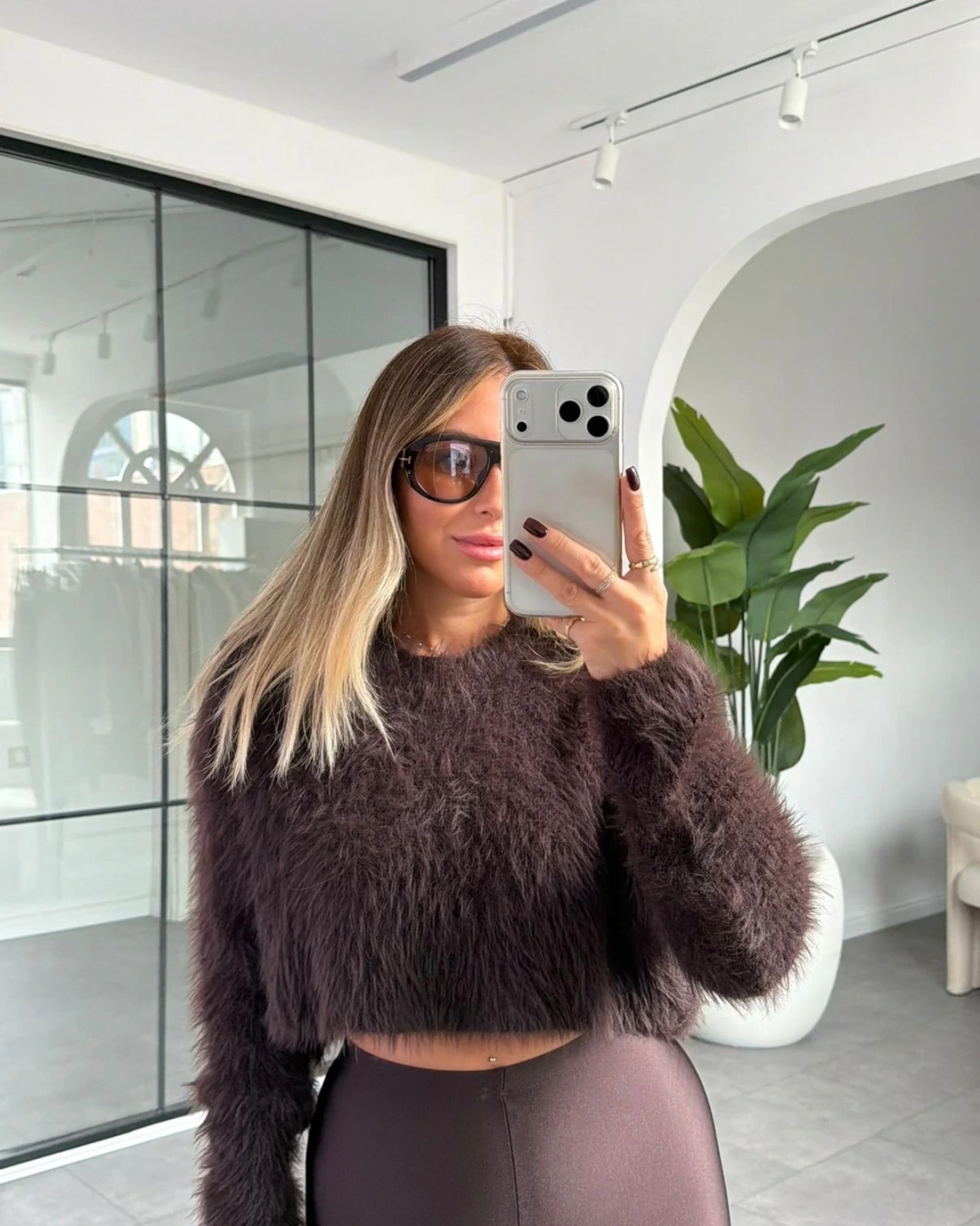 KAHVE YUMUŞACIK DOKULU CROP KAZAK