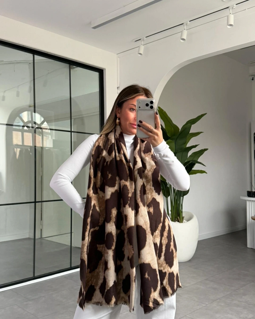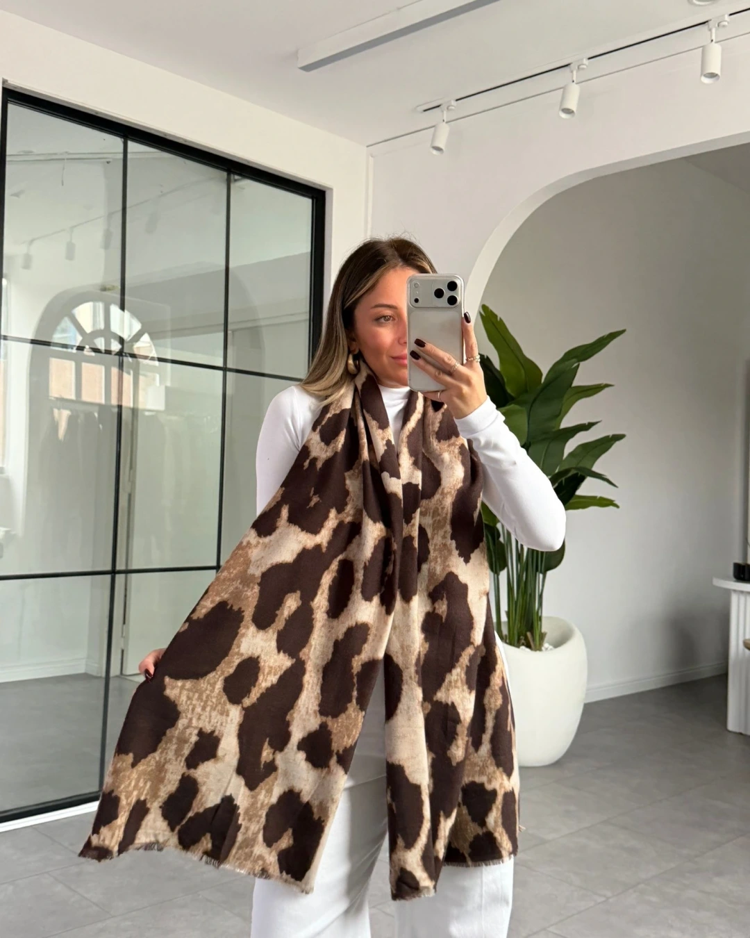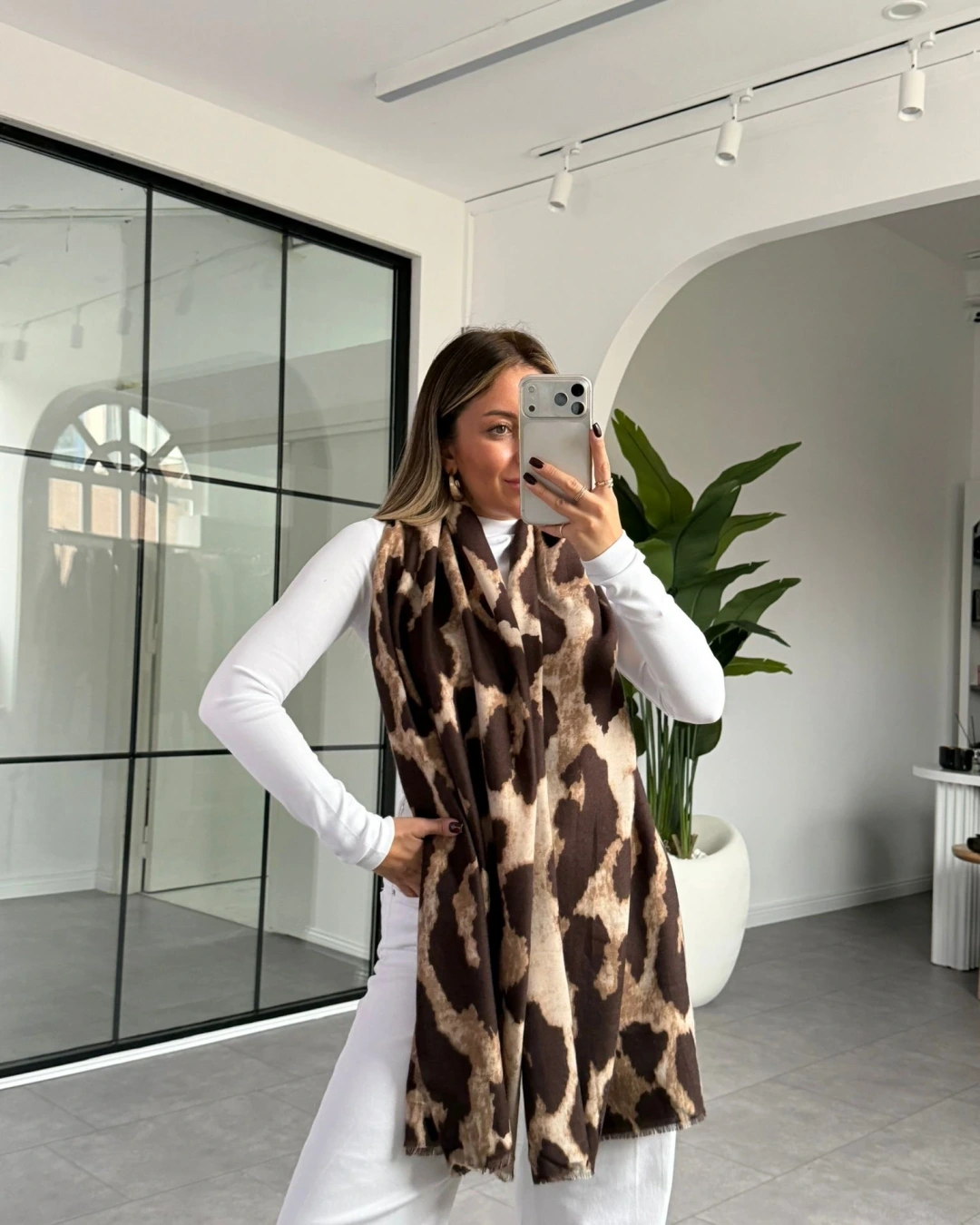KAHVE YUMUŞACIK DOKULU LEOPAR ŞAL