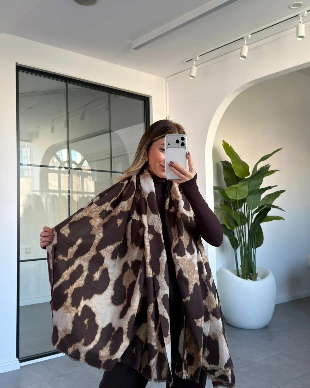 KAHVE YUMUŞACIK DOKULU LEOPAR ŞAL