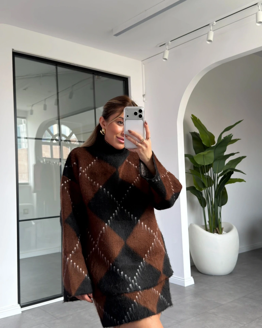 KAHVERENGİ BAKLAVA DESEN ETEK TAKIM