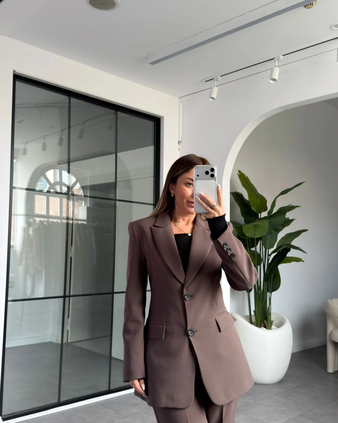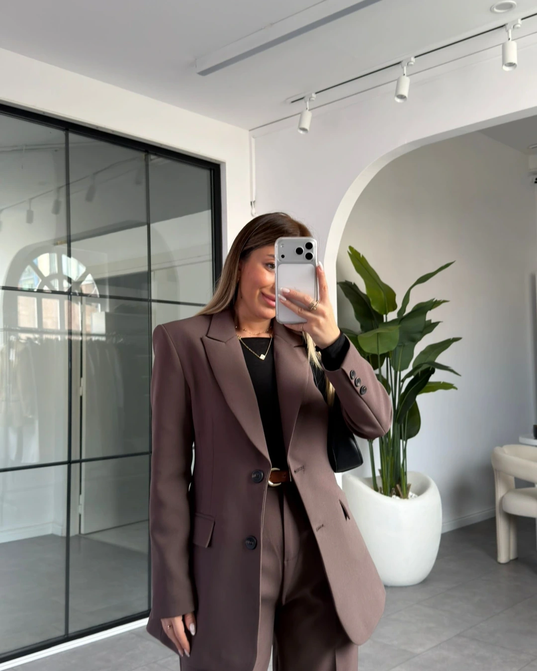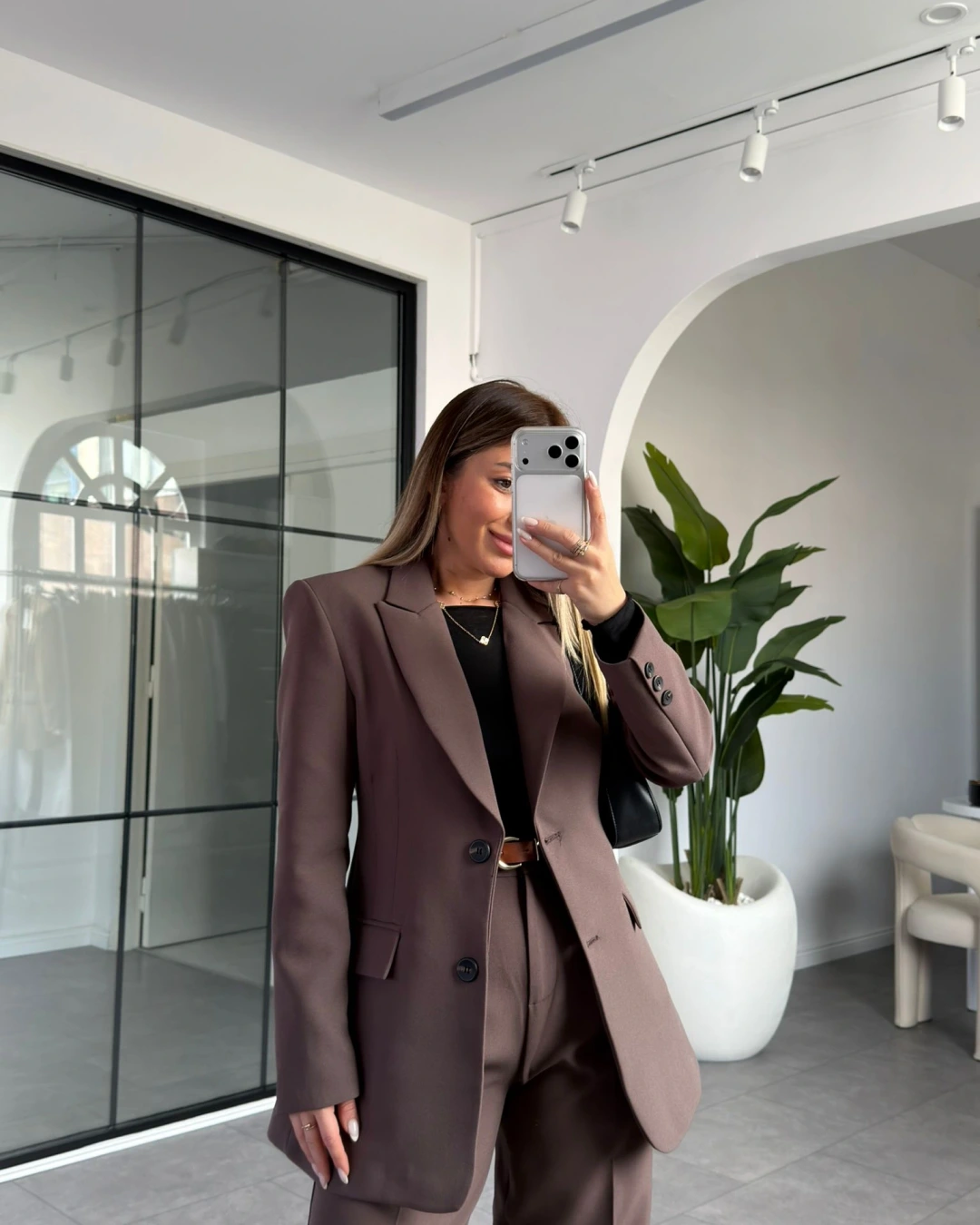 KAHVERENGİ BELDEN OTURTMALI BLAZER CEKET