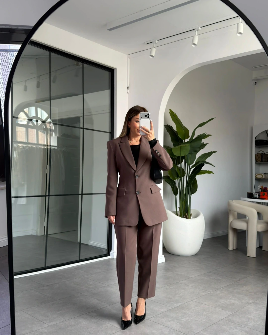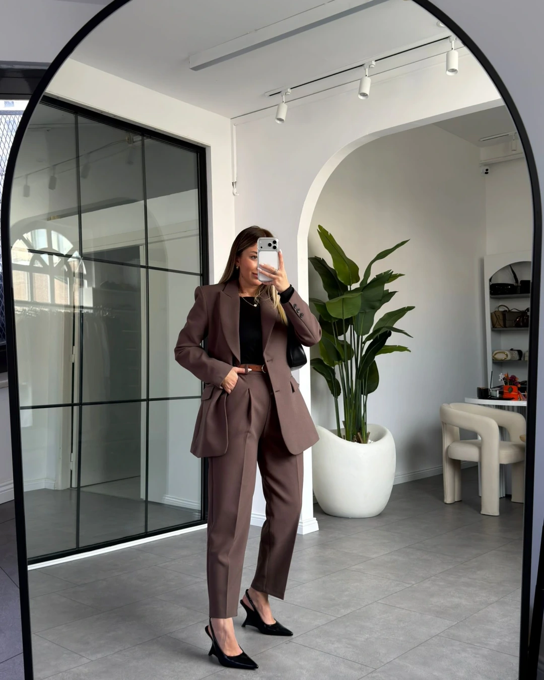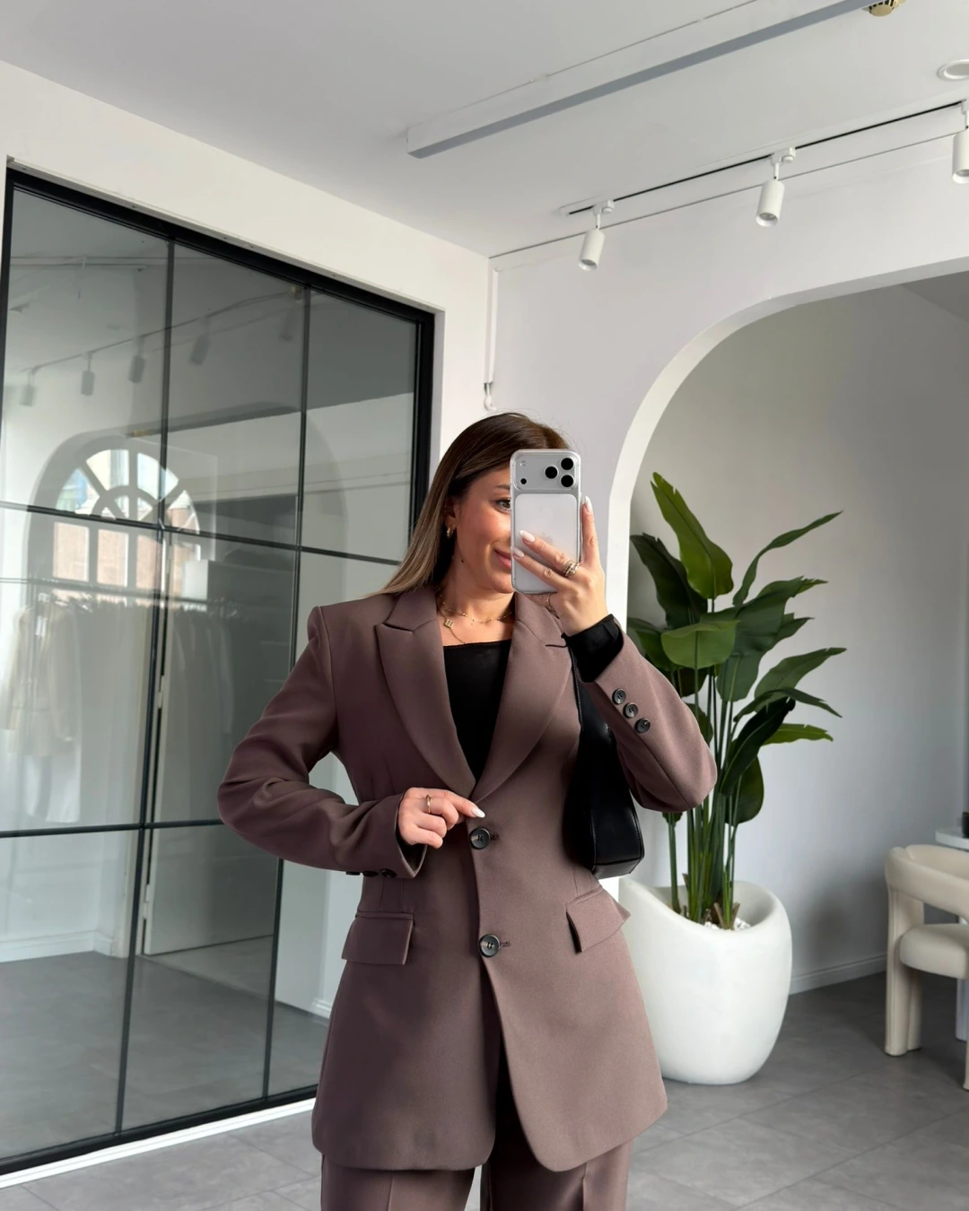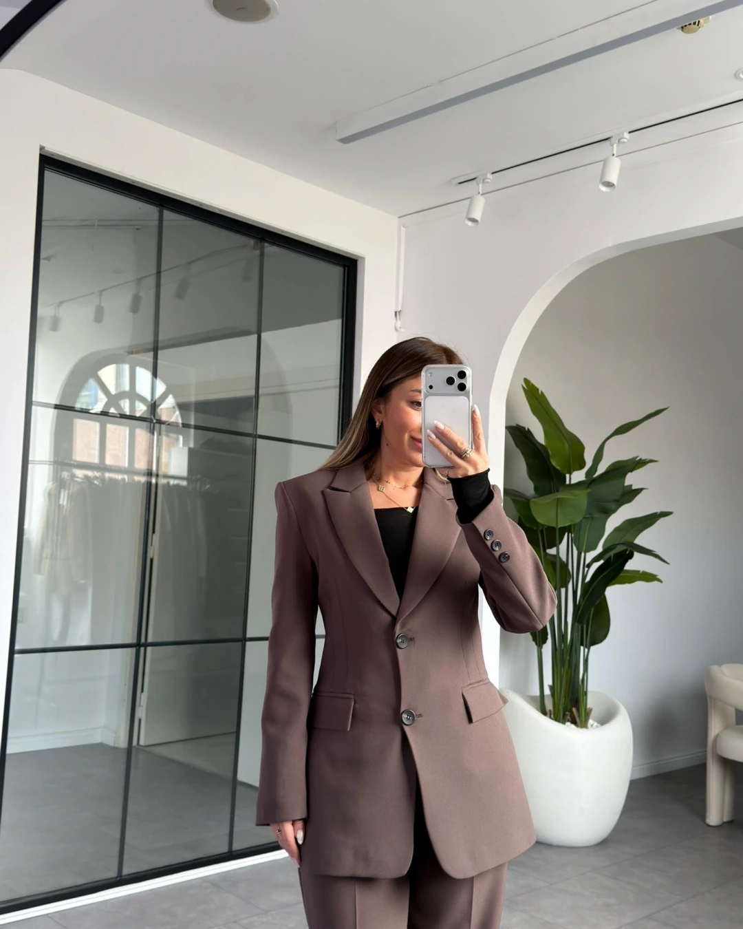 KAHVERENGİ BELDEN OTURTMALI BLAZER CEKET