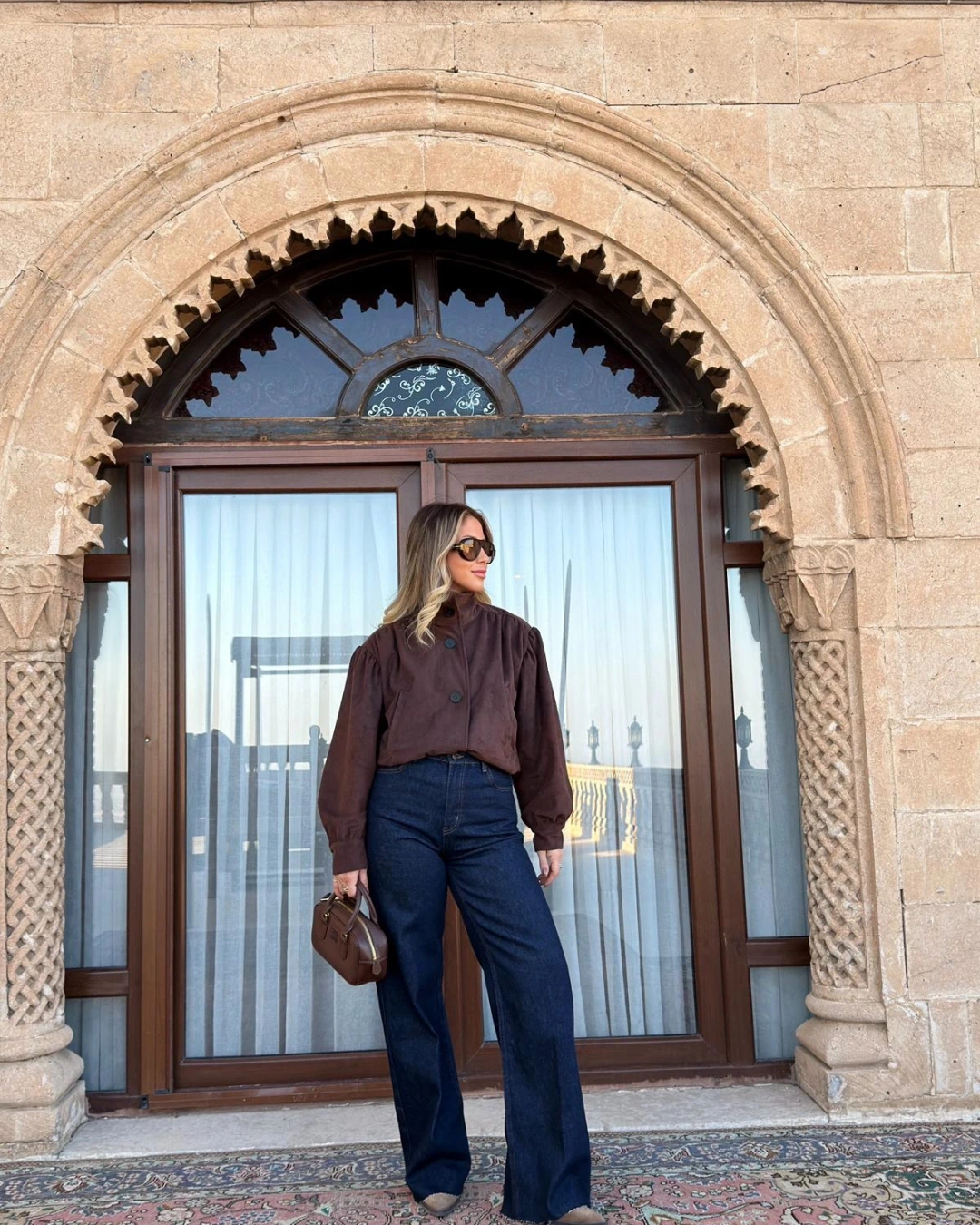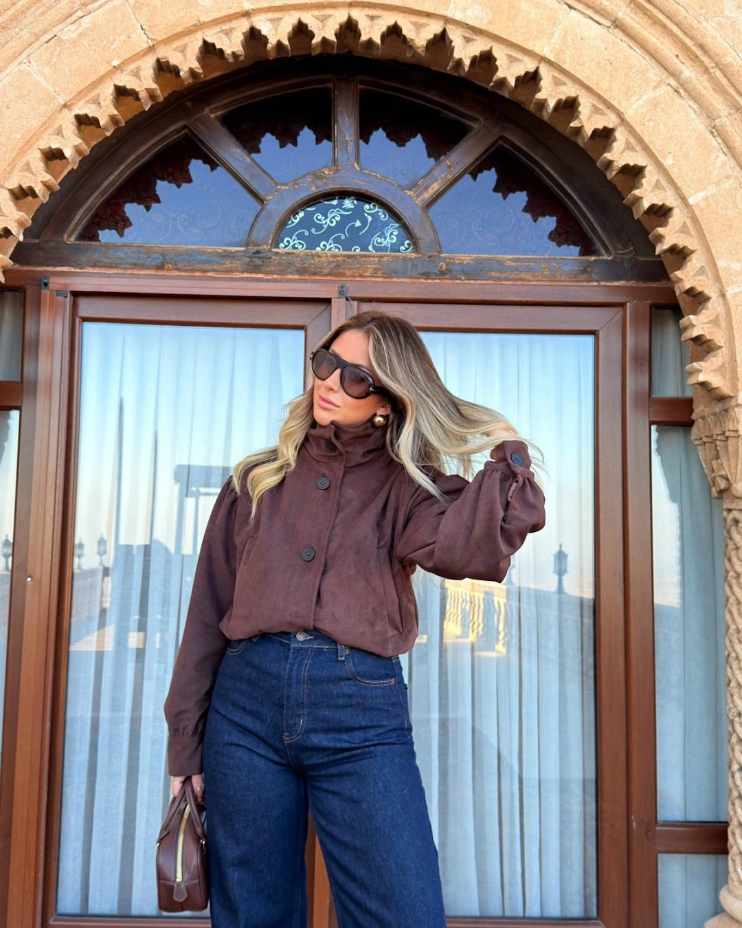 KAHVERENGİ DİK YAKA NUBUK MONT