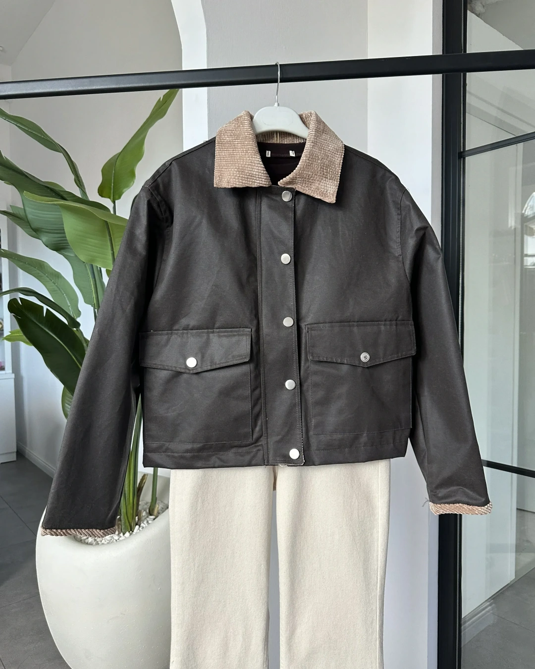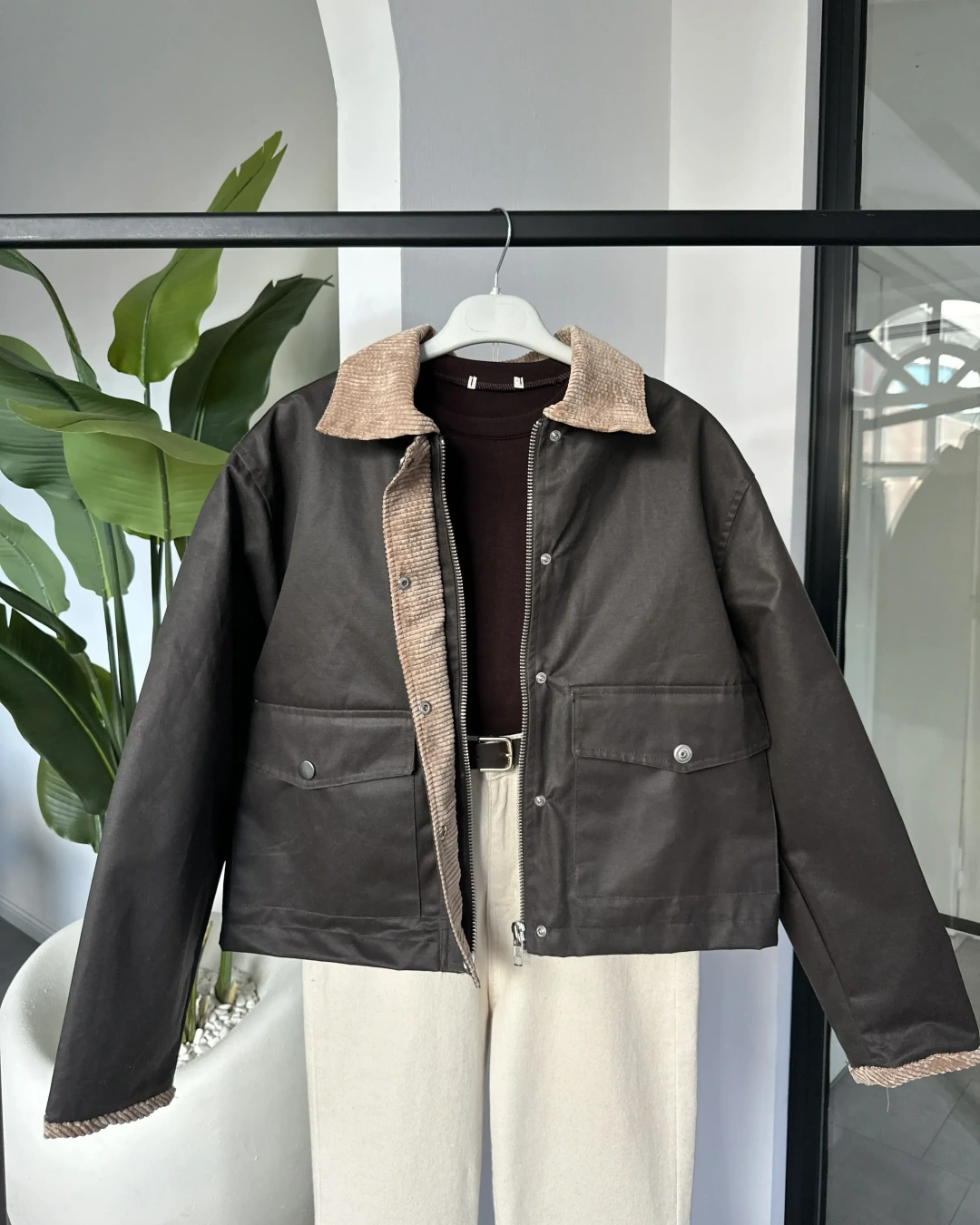 KAHVERENGİ MUMLU KISA TRENÇ