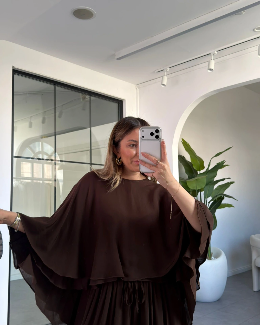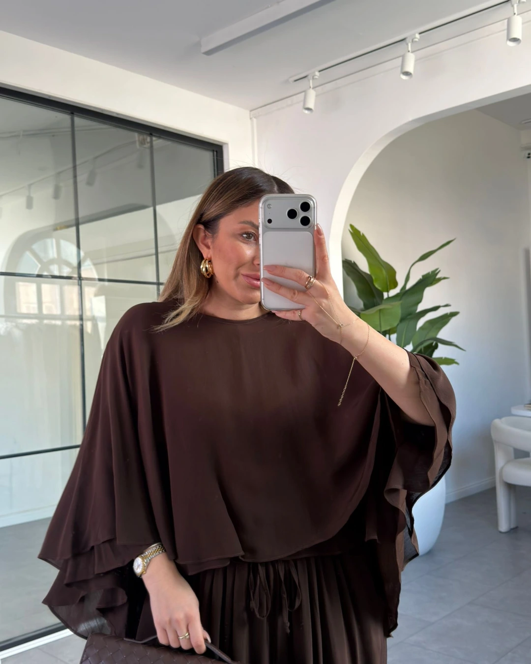 KAHVERENGİ PELERİN BLUZ 5044