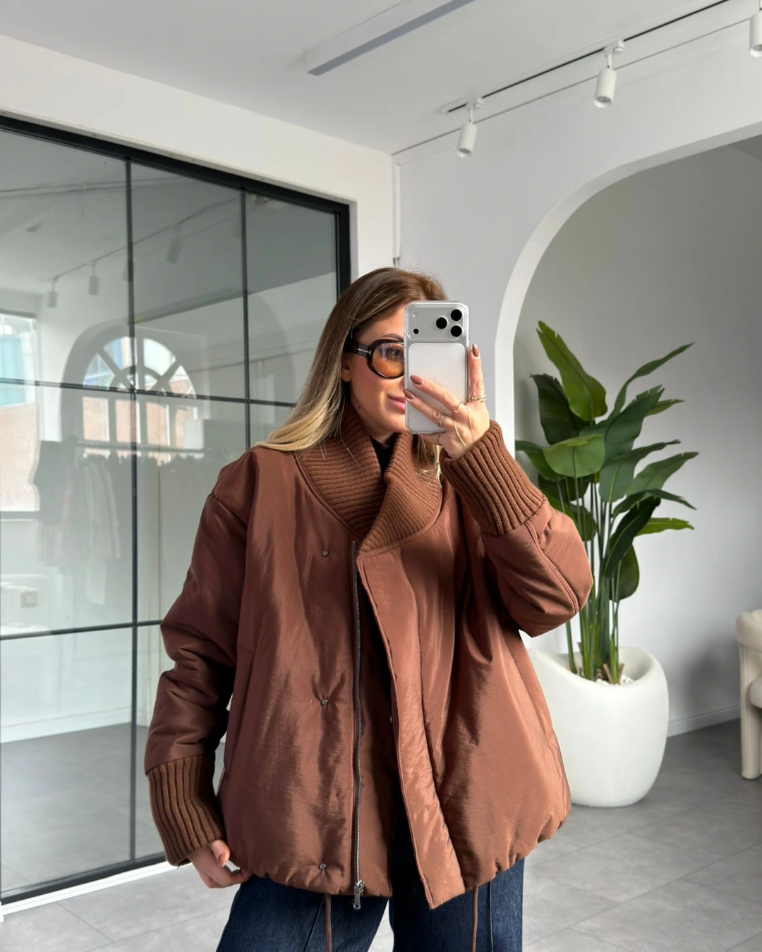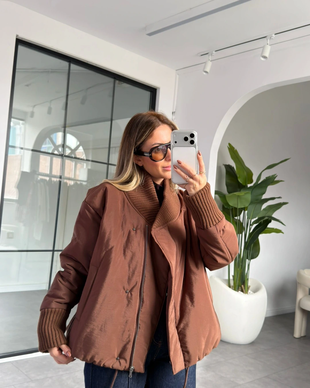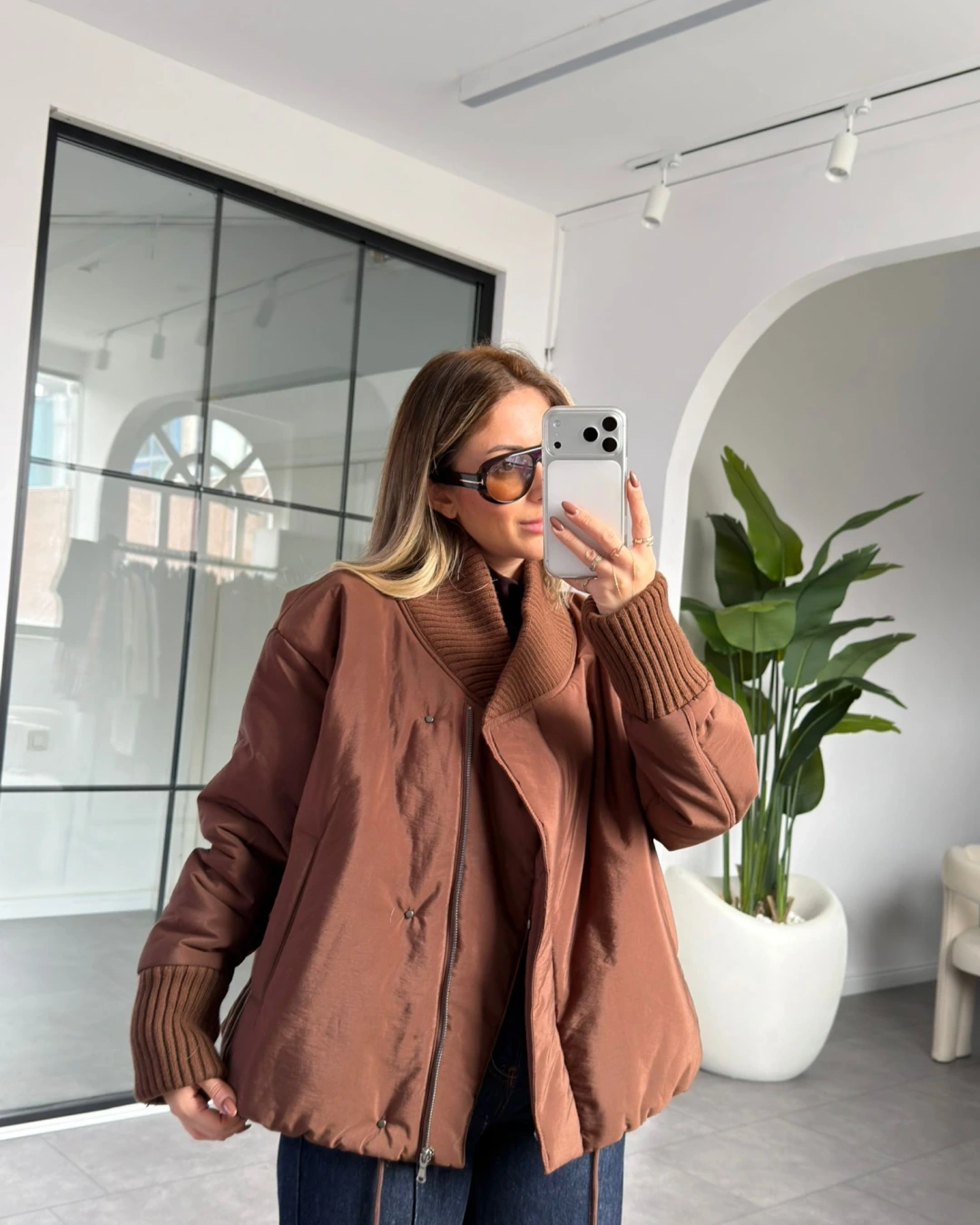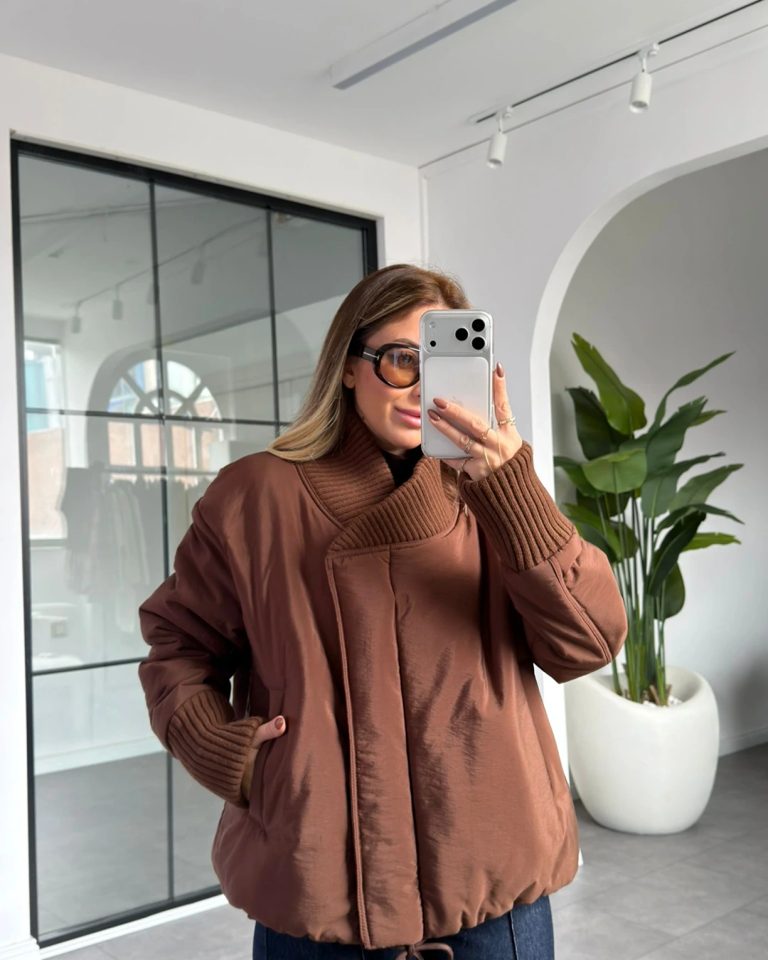 KAHVERENGİ TRİKO DETAYLI PREMİUM MONT